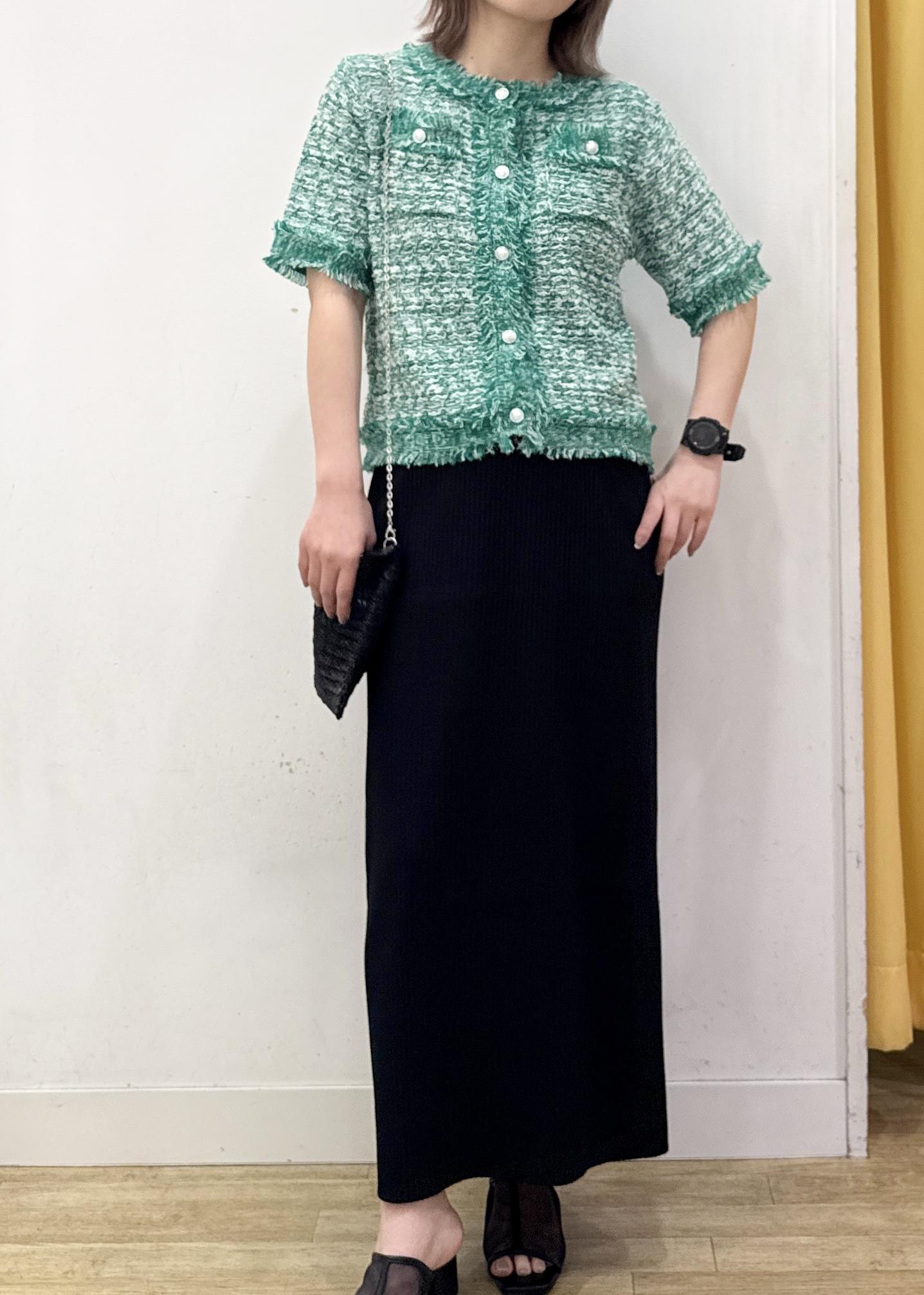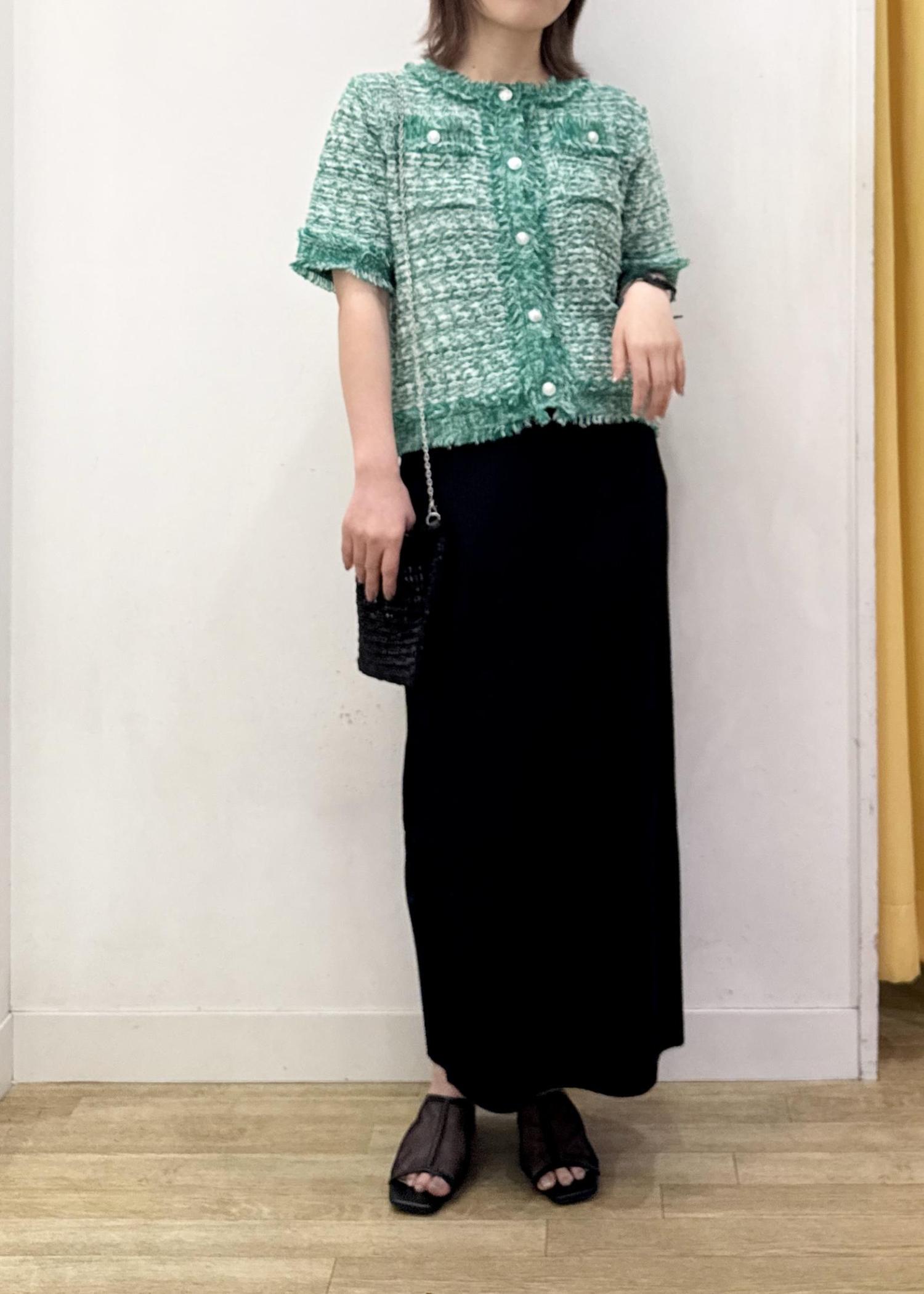 サマーツイードのハーフスリーブカーディガンをトップスに!