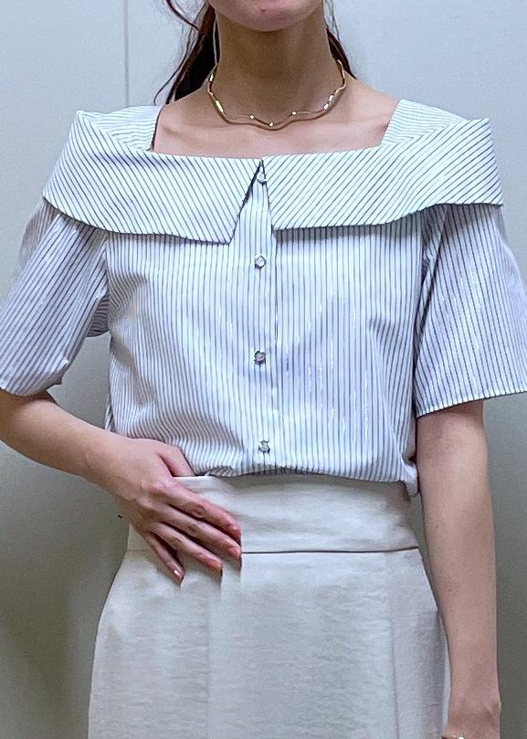 VIS【新色追加】【防シワ】ラメミックスオフショルダー風ストライプシャツホワイト系 / F¥5,489レビュー肩の部分にマチが付いているのでオフショルのズレ落ちやインナーも気にせず着用できました。