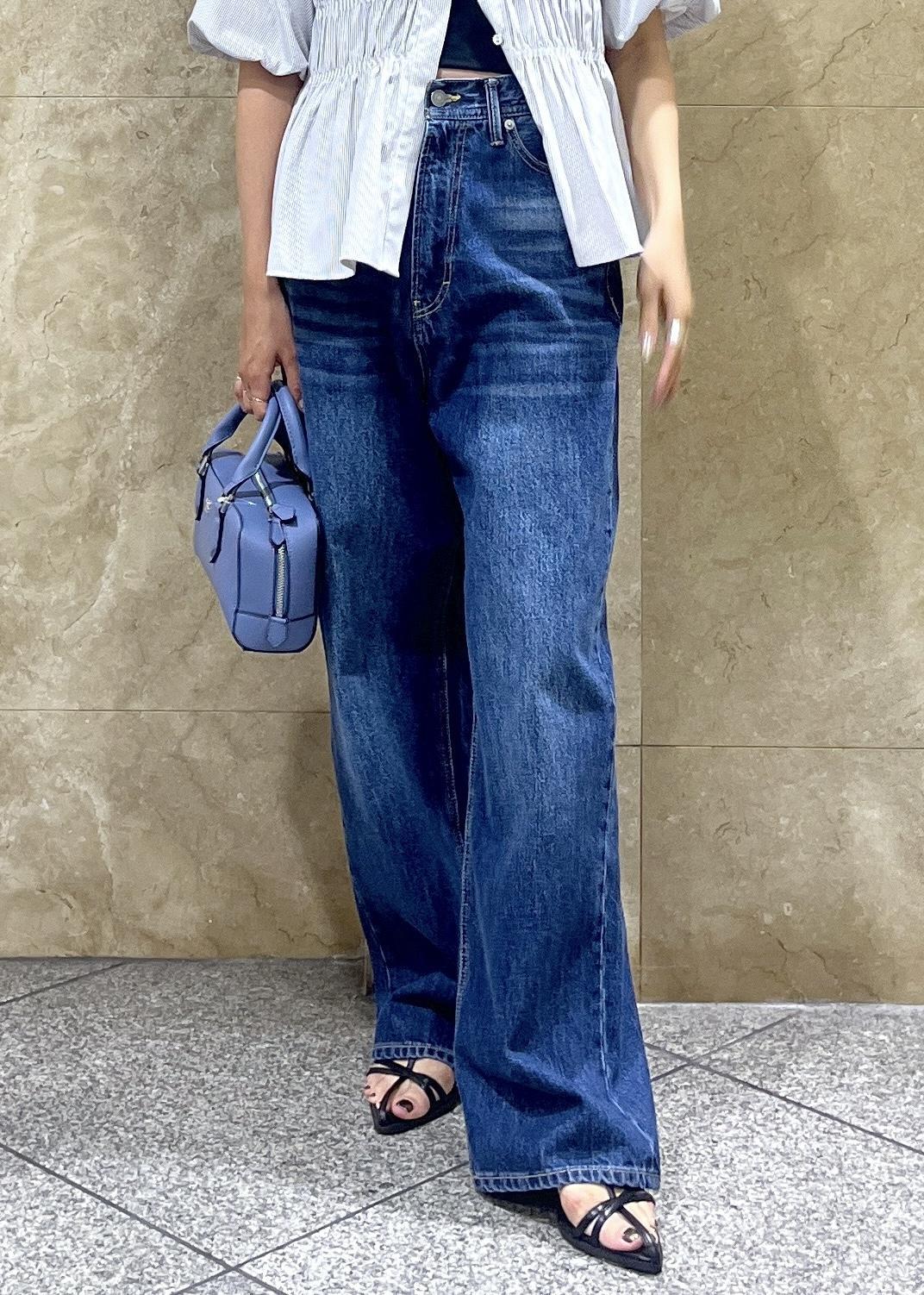 着丈は素足で少し床につくぐらい、ルーズなシルエットがとても可愛いデニムなので、着丈もゆるっと長めに穿けてちょうど良い!