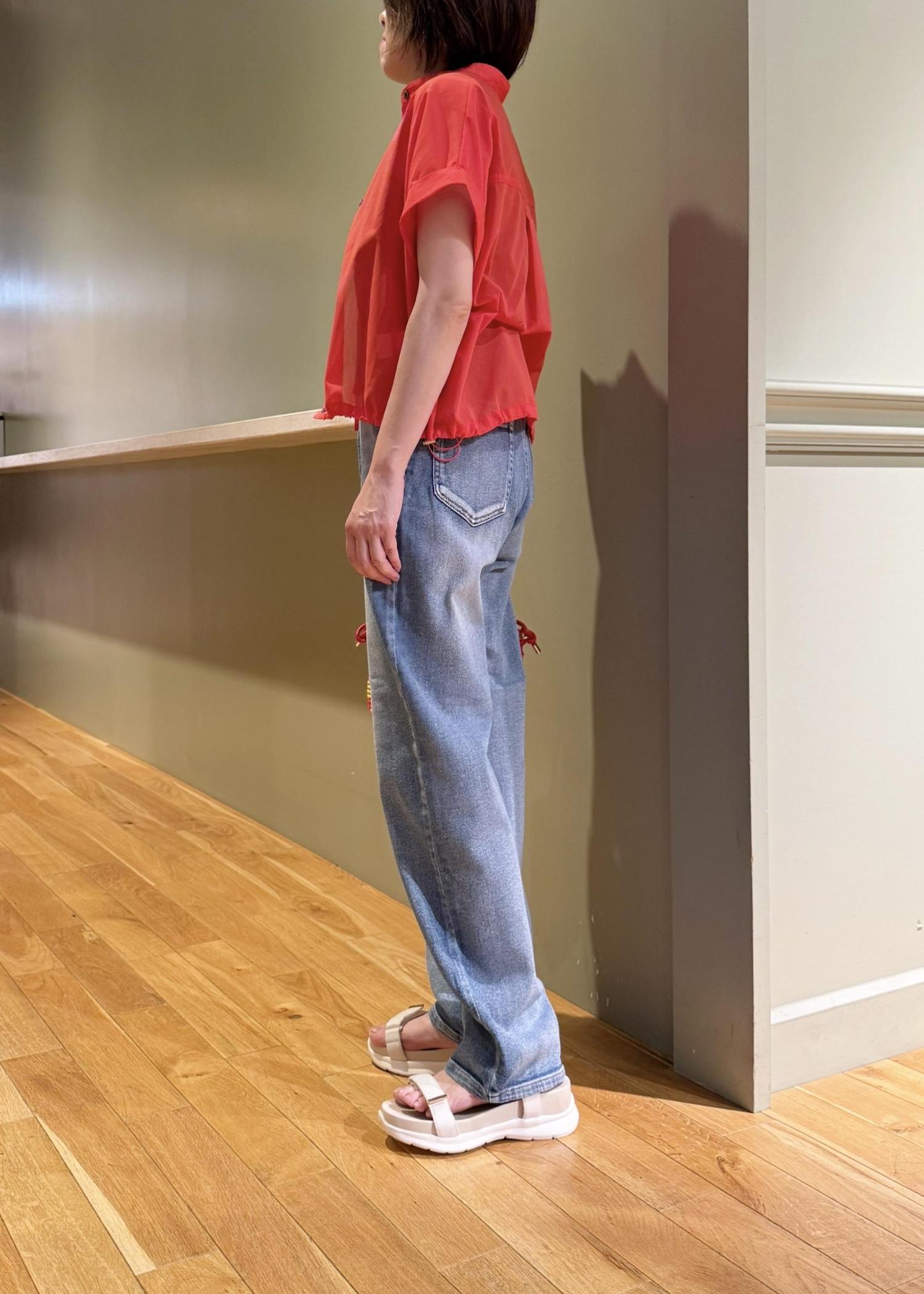 裾がドロスト仕様で絞ると柔らかい印象になりワンピースやスカートでも合わせて頂けます。 -