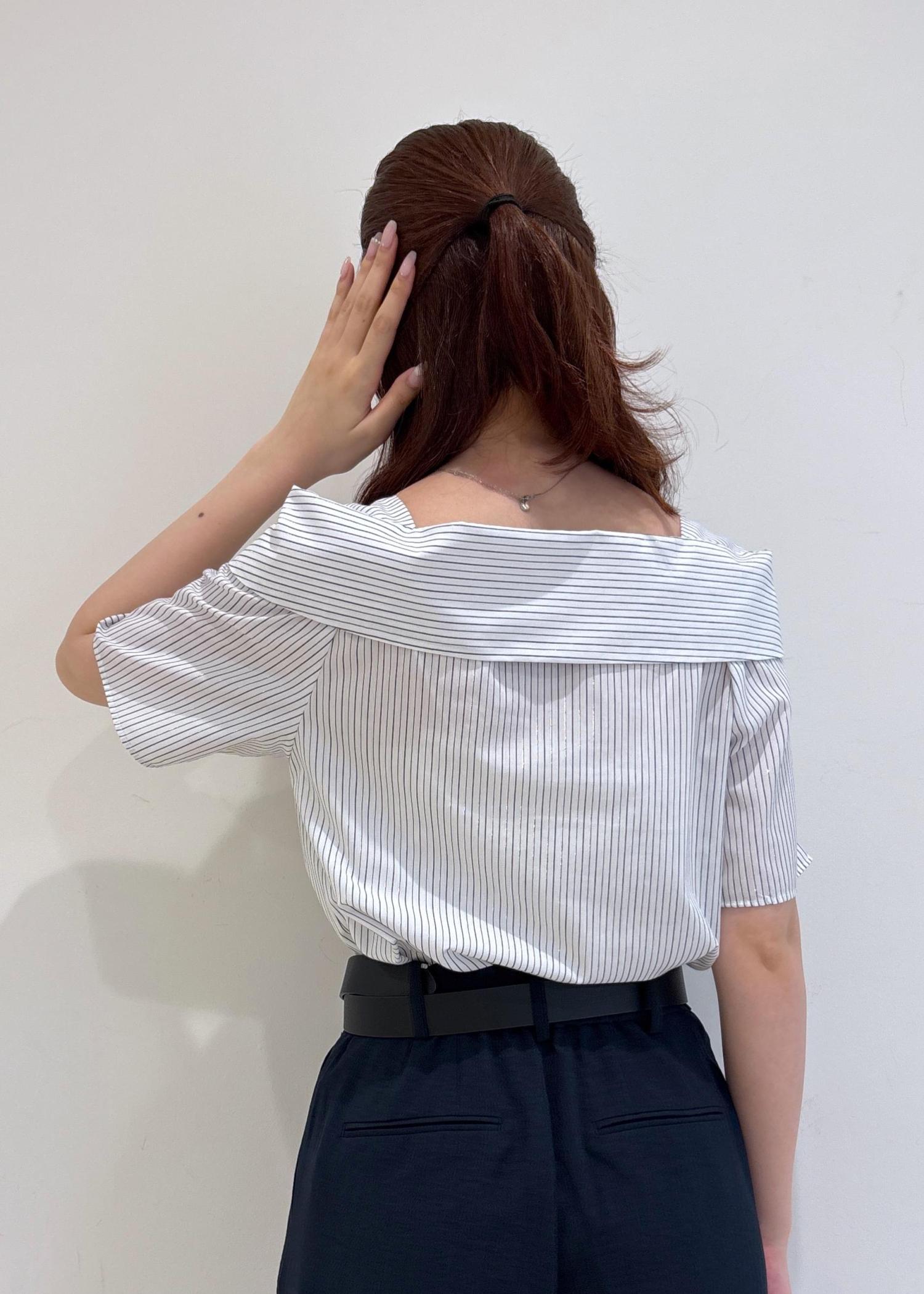 オフショル風ブラウスを使ってオフィスコーデを組みました。