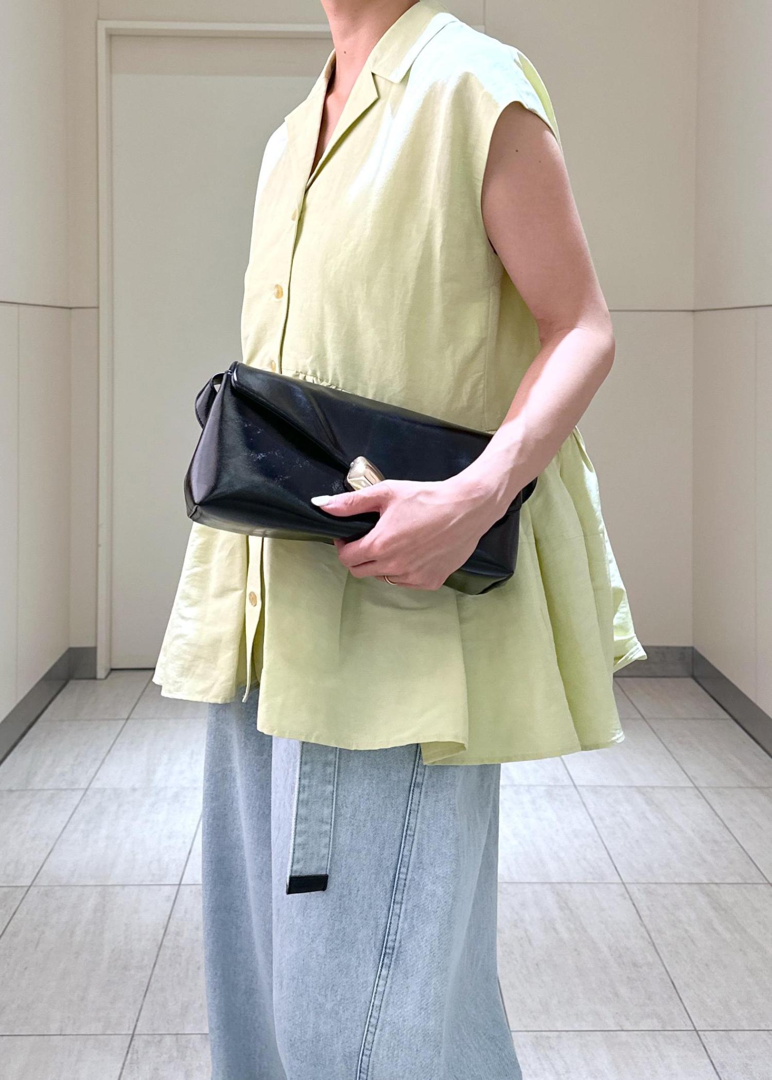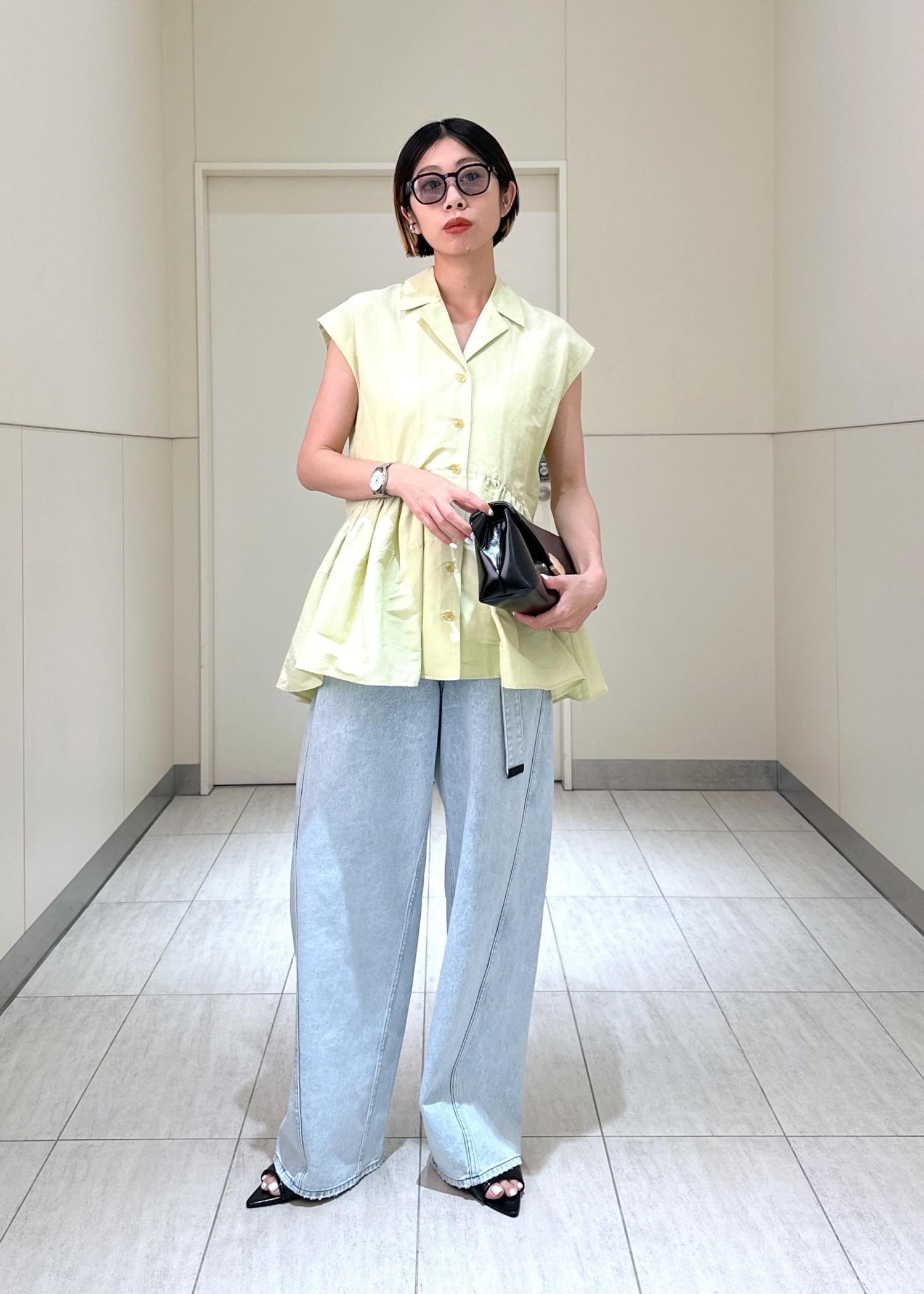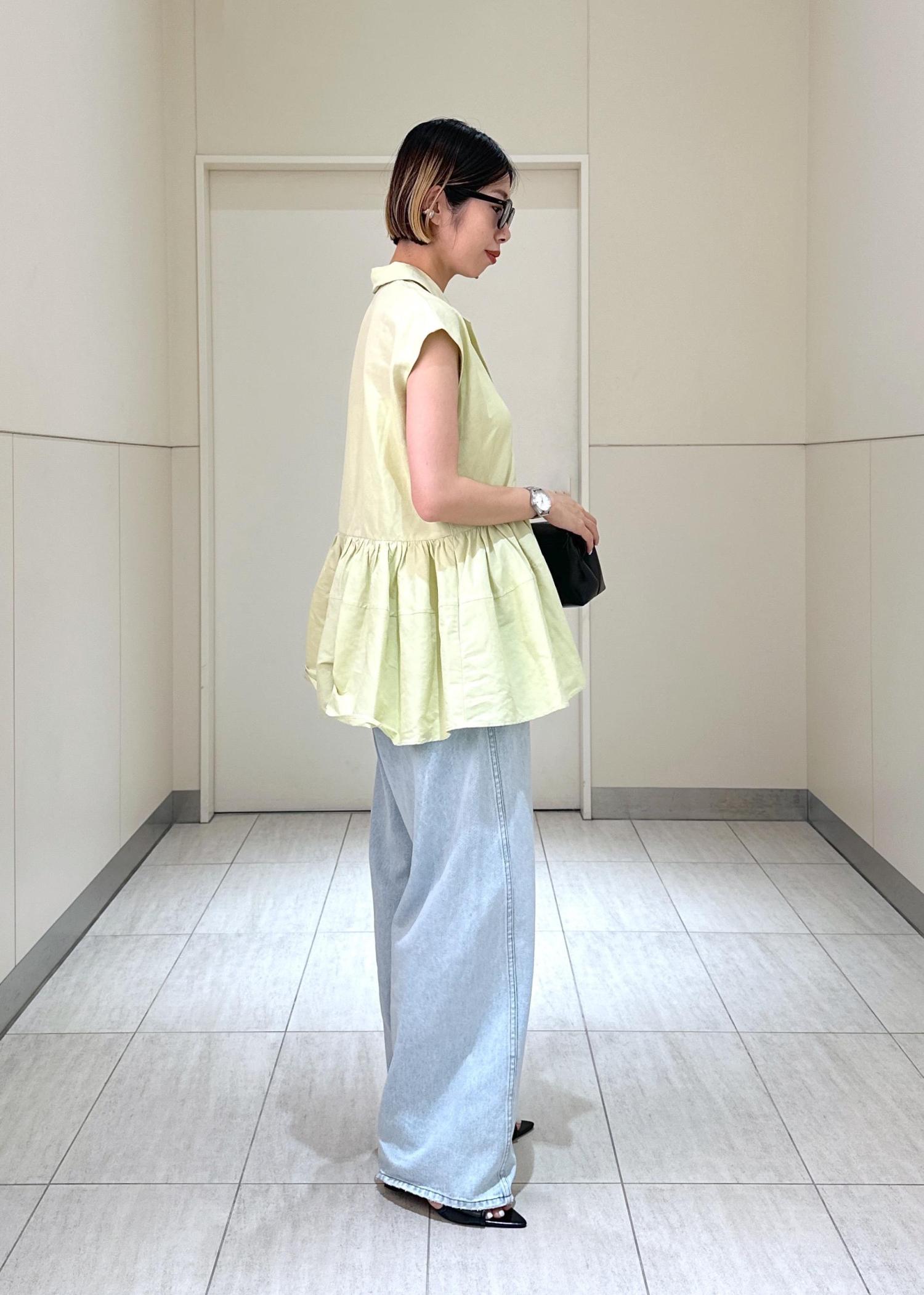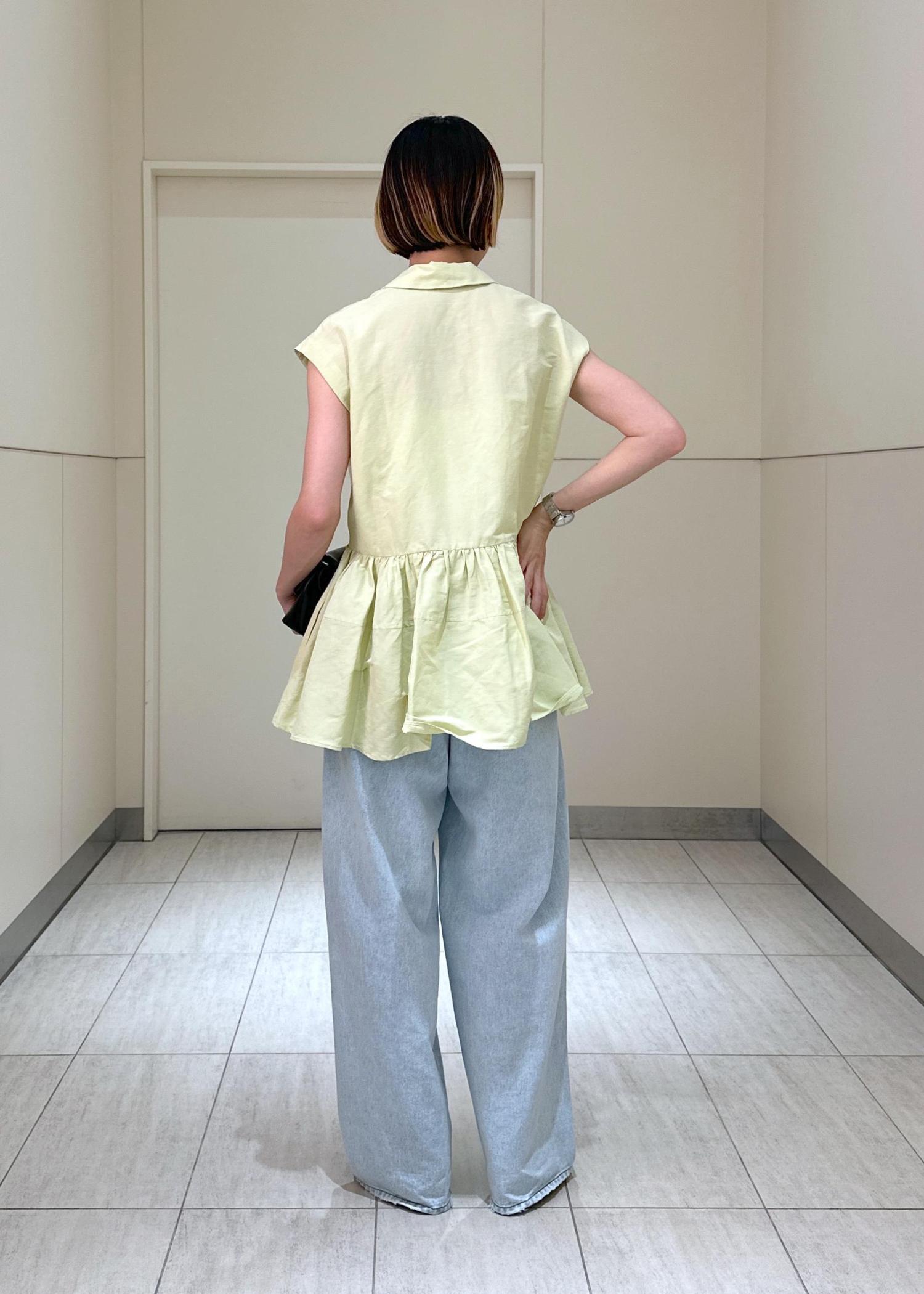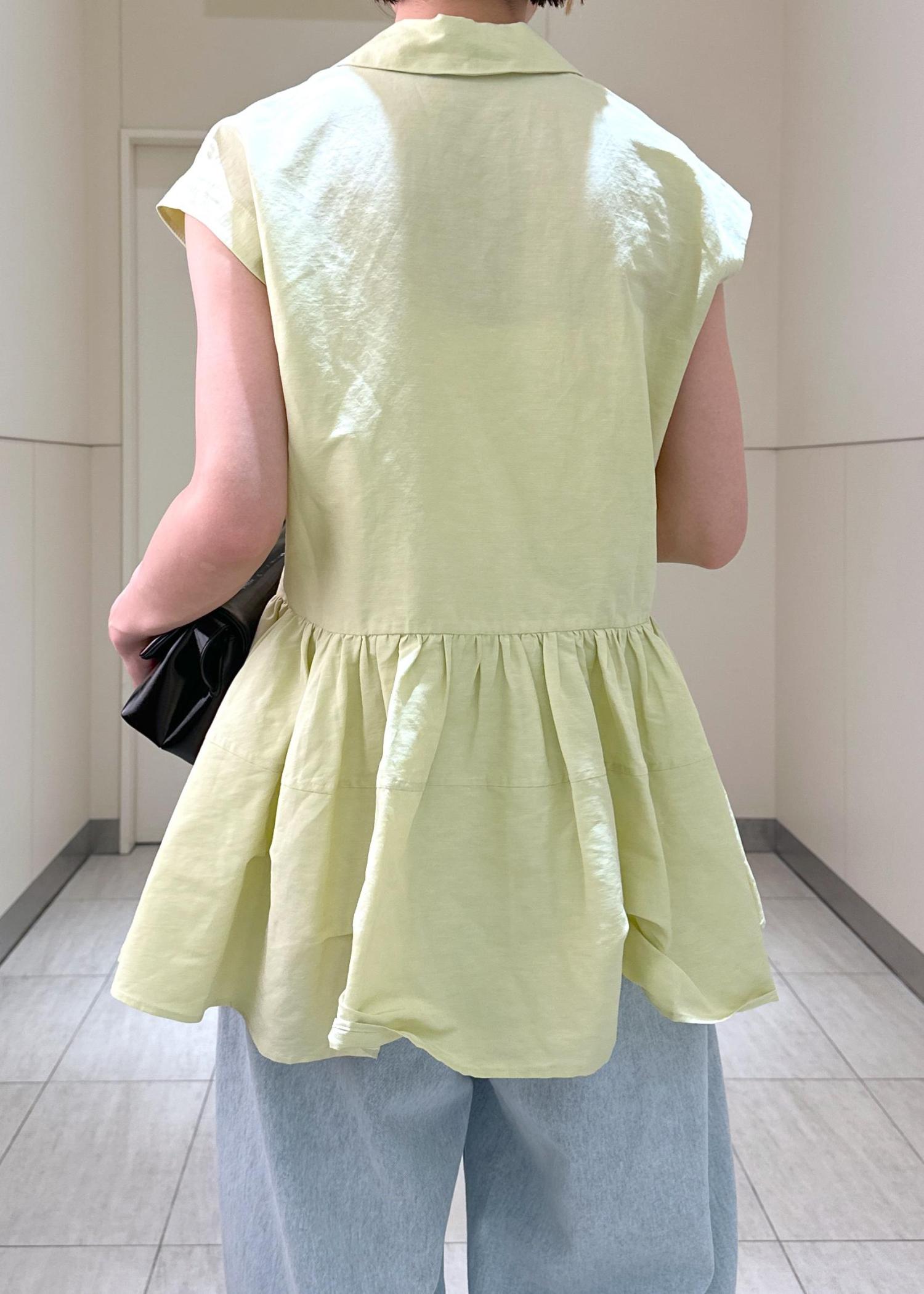アウトレットADAM ET ROPÉ FEMME【サステナブル】オープンカラーペプラムシャツライトグリーン / F¥6,380レビュー前を閉じてブラウスとして着ても開けてベストとして着ても可愛いです!ノースリーブですが、フレンチスリーブで気になる二の腕もカバーしてくれます。この夏、活躍すること間違いなしかと!♡