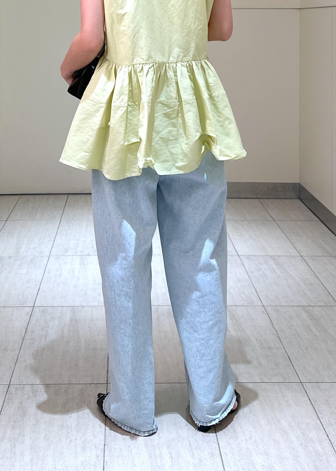 前を閉じてブラウスとして着ても、開けてベストとして着ても可愛いペプラムのデザイン。ノースリーブですが、フレンチスリーブで気になる二の腕もカバーしてくれます。この夏、活躍すること間違いなしかと!
