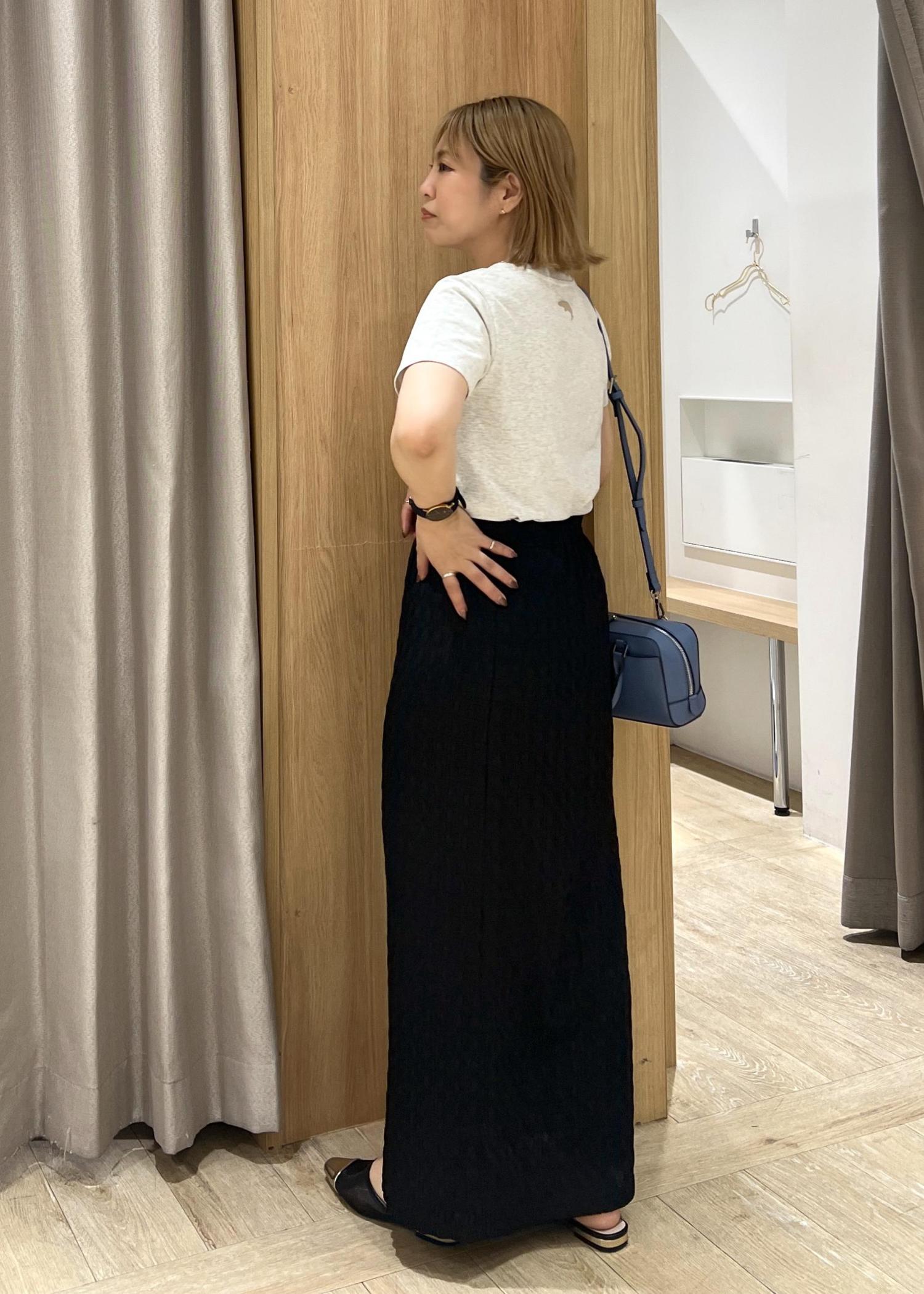 アウトレットVIS【新色追加】【接触冷感】膨れジャガードナロースカートブラック / F¥3,293レビュー身長152cmで踝が隠れる長めの丈感。