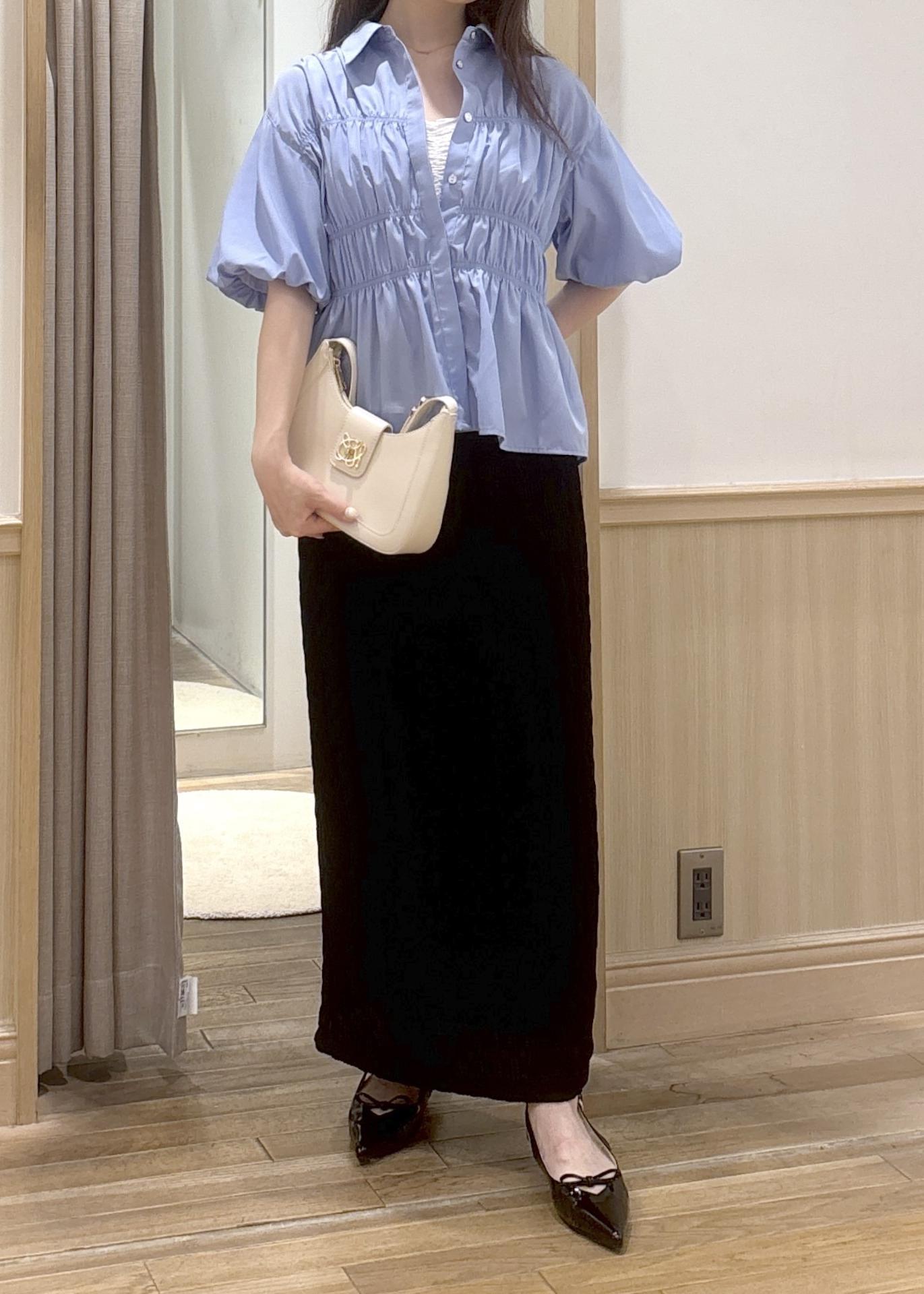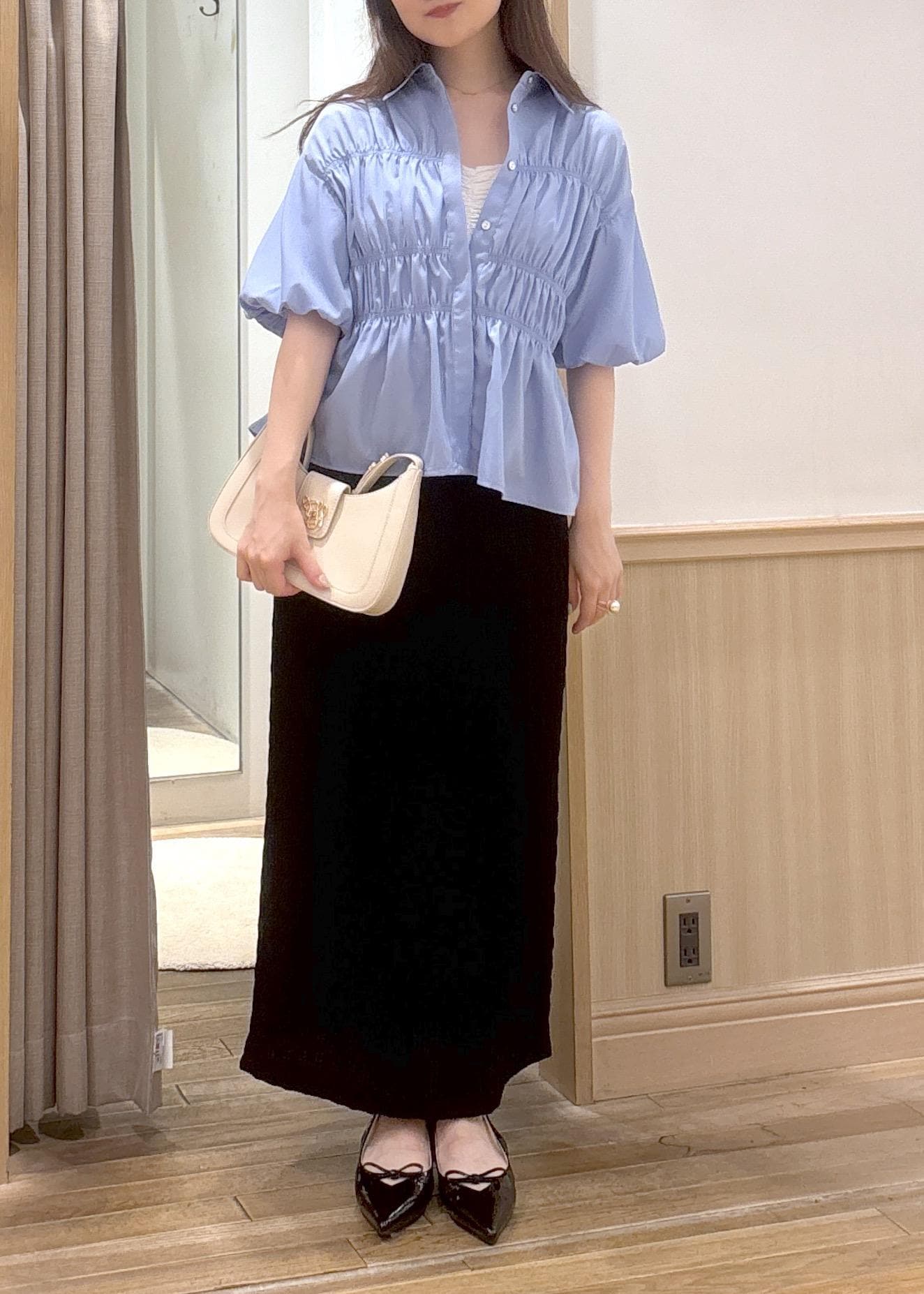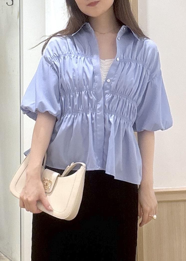 VIS【新色追加】【店頭人気】シャーリングバルーンシャツブルー / F¥5,489レビュー昨シーズンも大人気の1枚。着丈は腰より少し下くらいで、気になる腰周りはフワッとカバーしてくれます◎