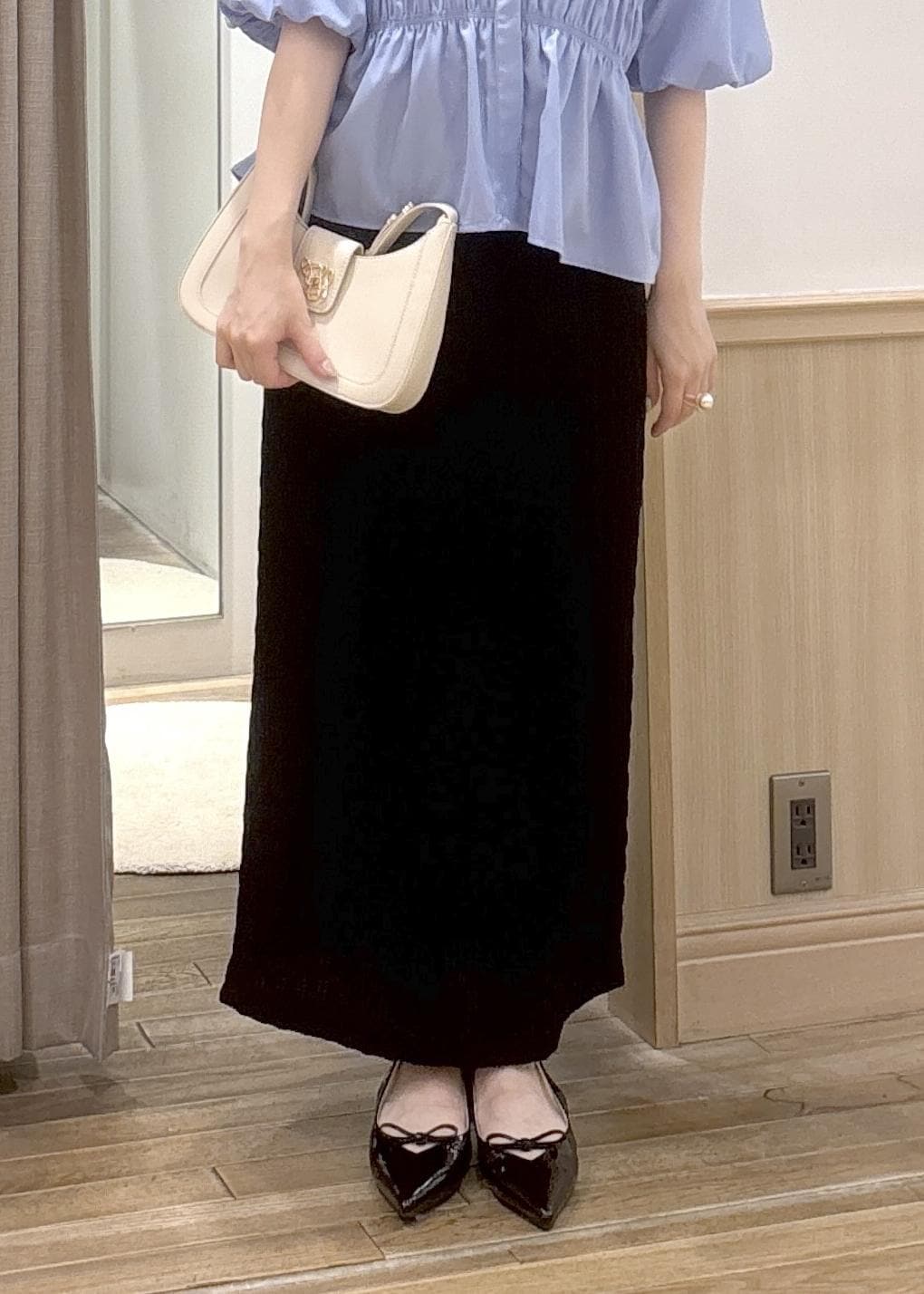 アウトレットVIS【新色追加】【接触冷感】膨れジャガードナロースカートブラック / F¥3,293レビュー158cmでちょうど足首位の丈感。ウエストはゴムが入っているので動きやすく締め付け感ないです◎