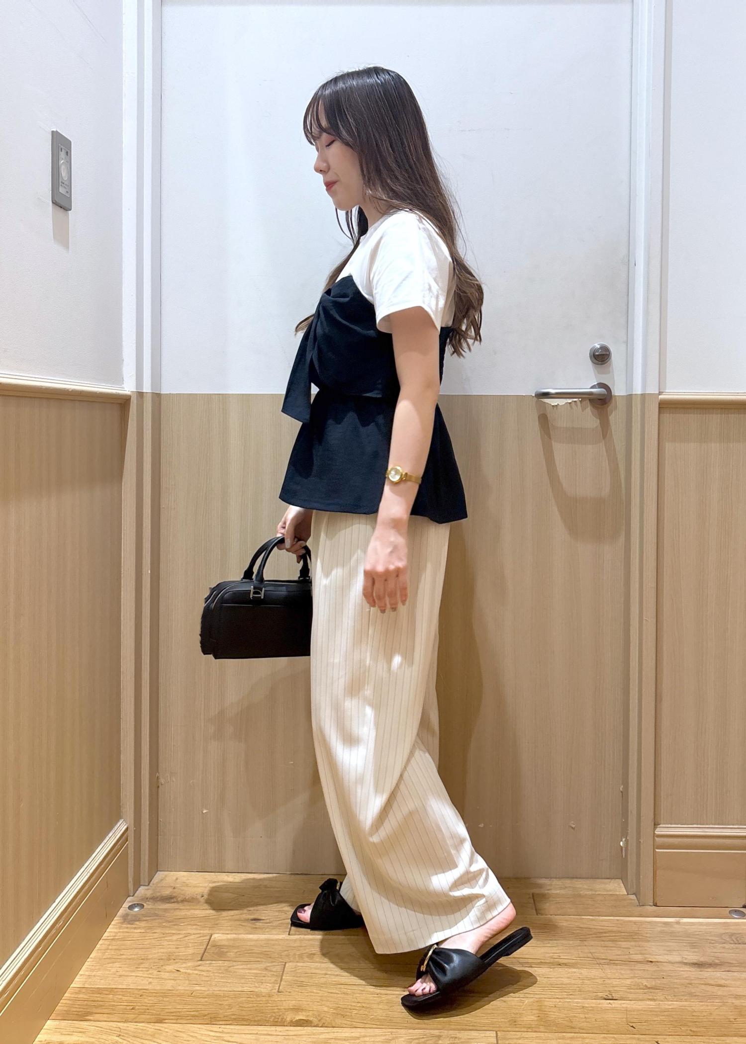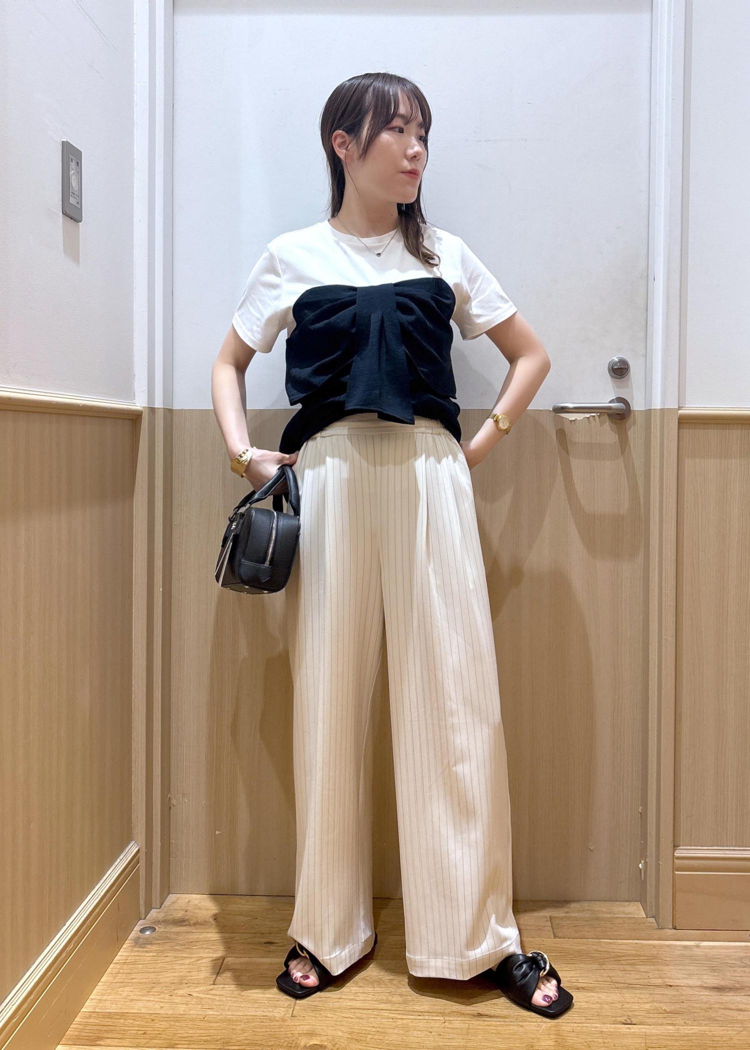 アウトレットVIS【接触冷感/UVケア】ピンストライプリラックスワイドパンツキナリ / S¥2,636レビュー肌あたりがサラッとしていて、少しひんやり感じるので夏でも履きやすいです。