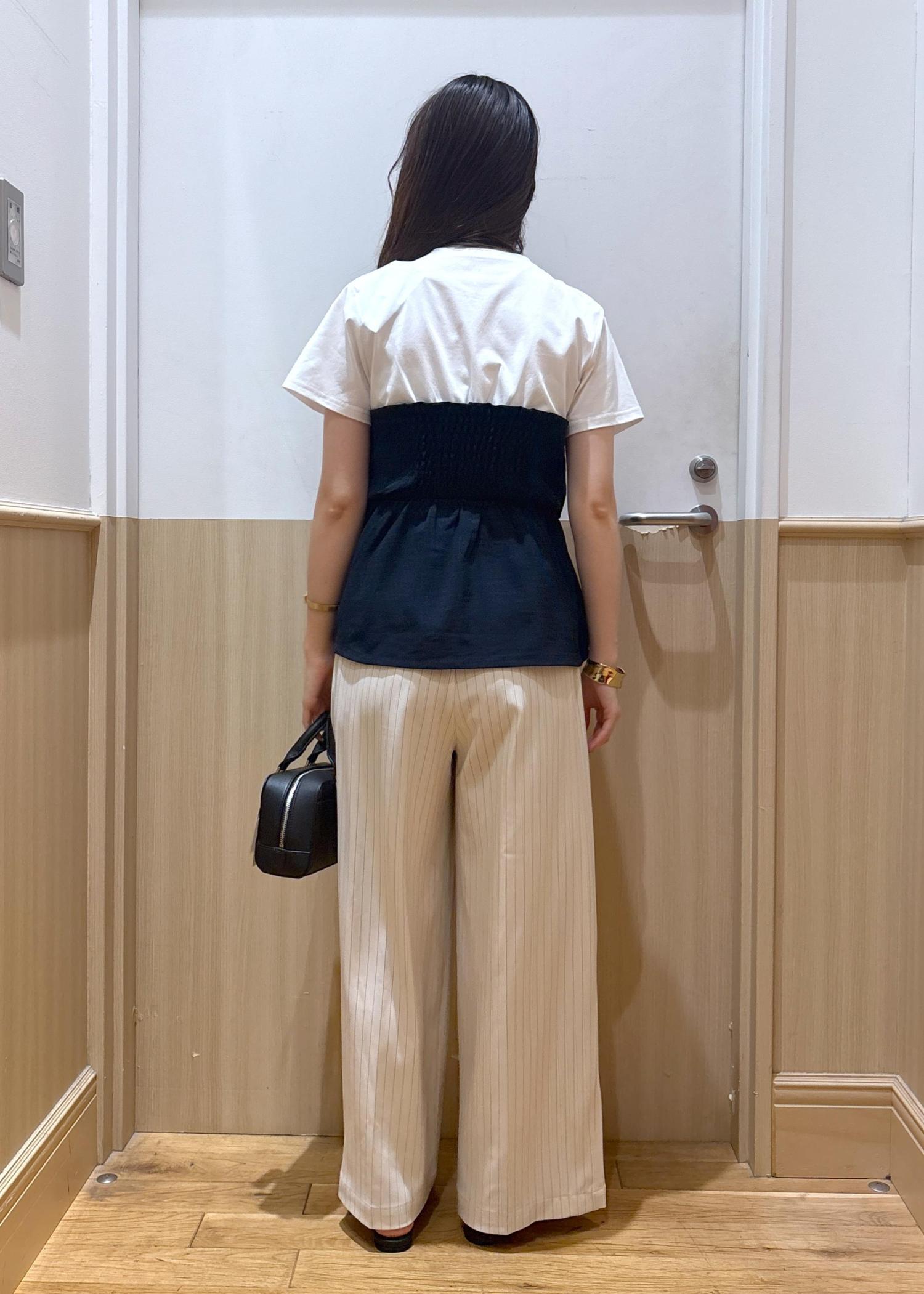 落ち感のある、ほどよいワイドのシルエットなので広がりすぎず◎