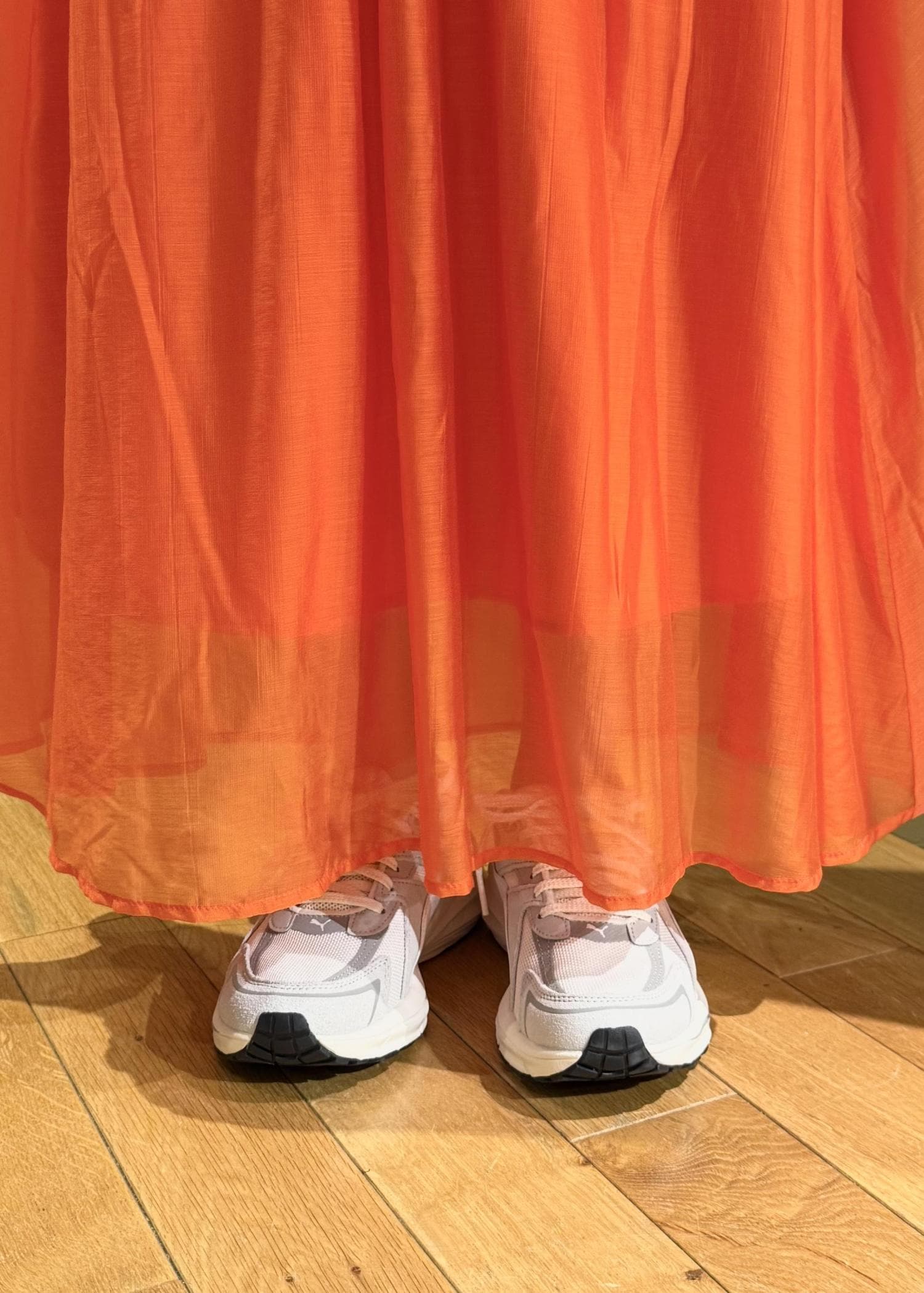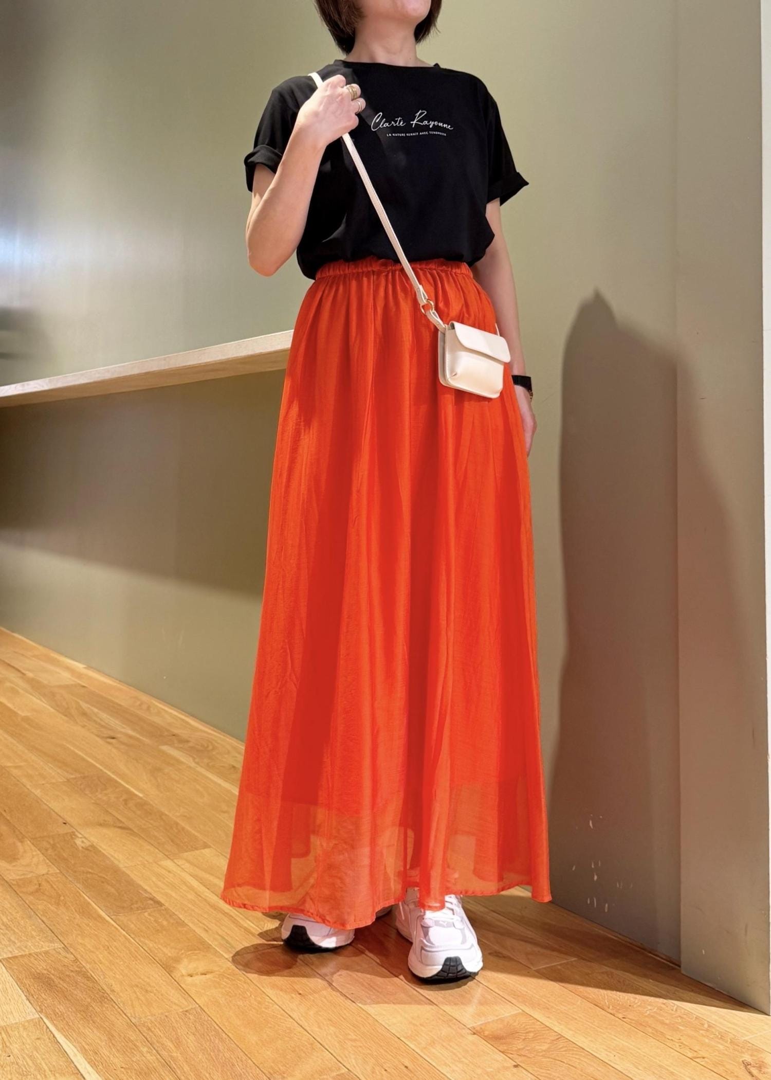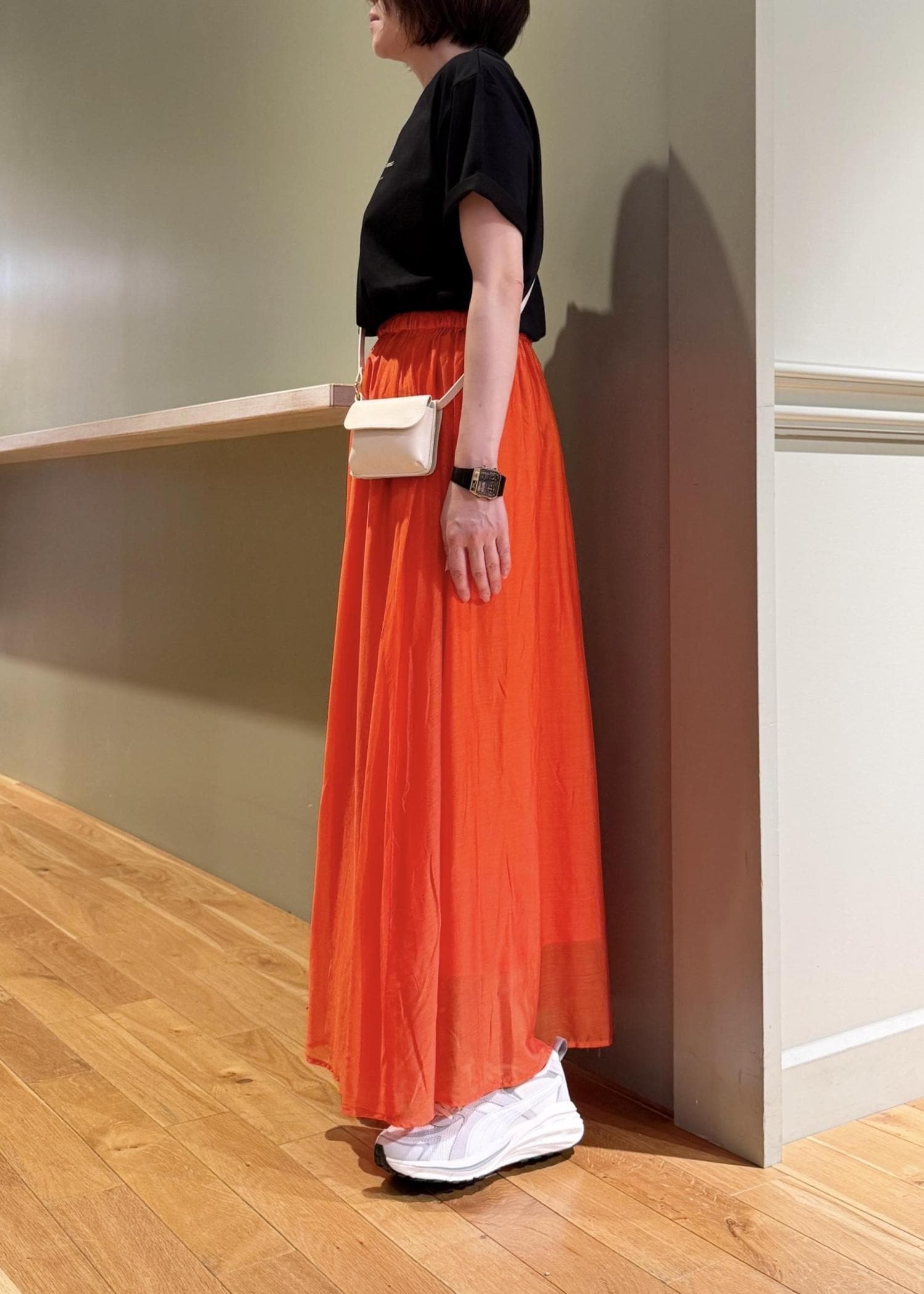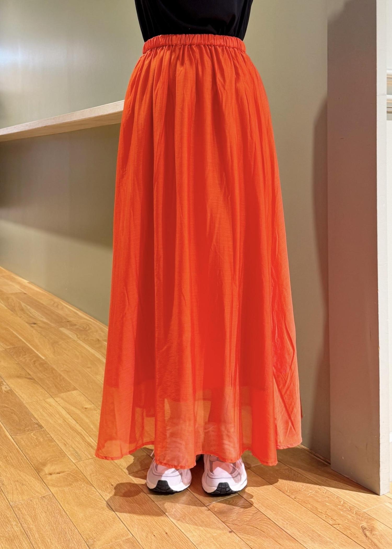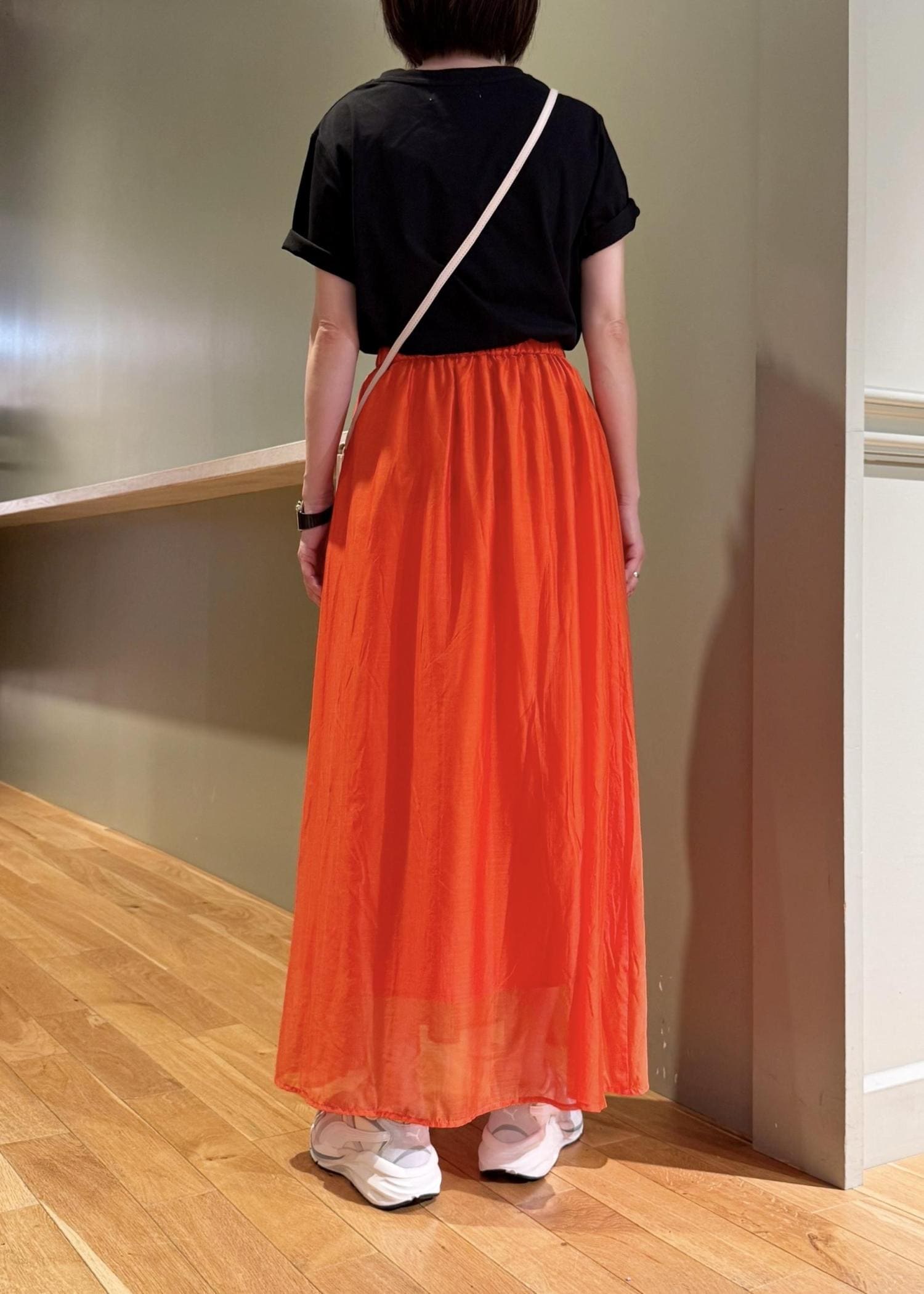 ROPÉ PICNICエアリーシアーギャザーロングスカートオレンジ / 38¥6,490レビュー色鮮やかなボリュームスカートです。