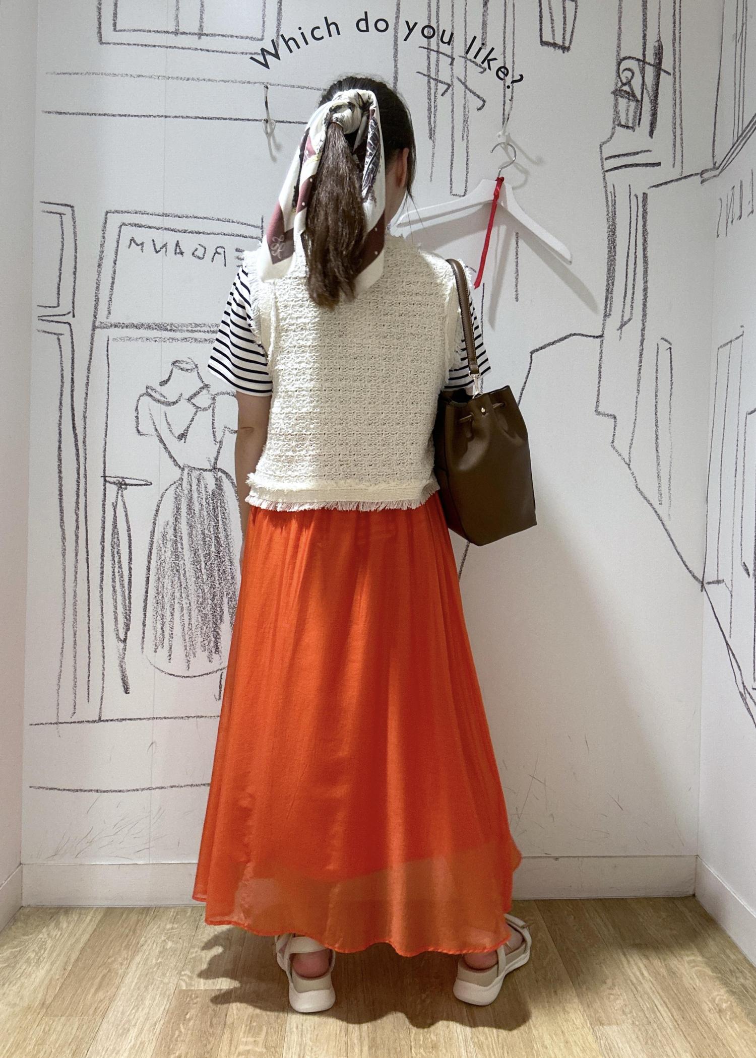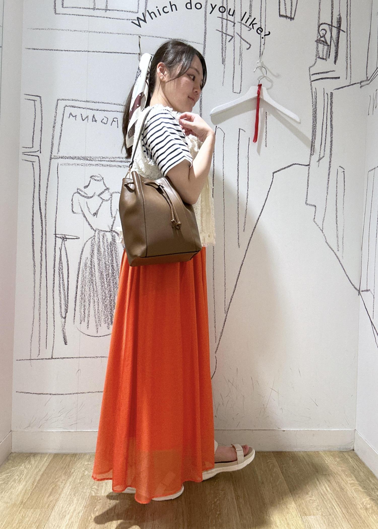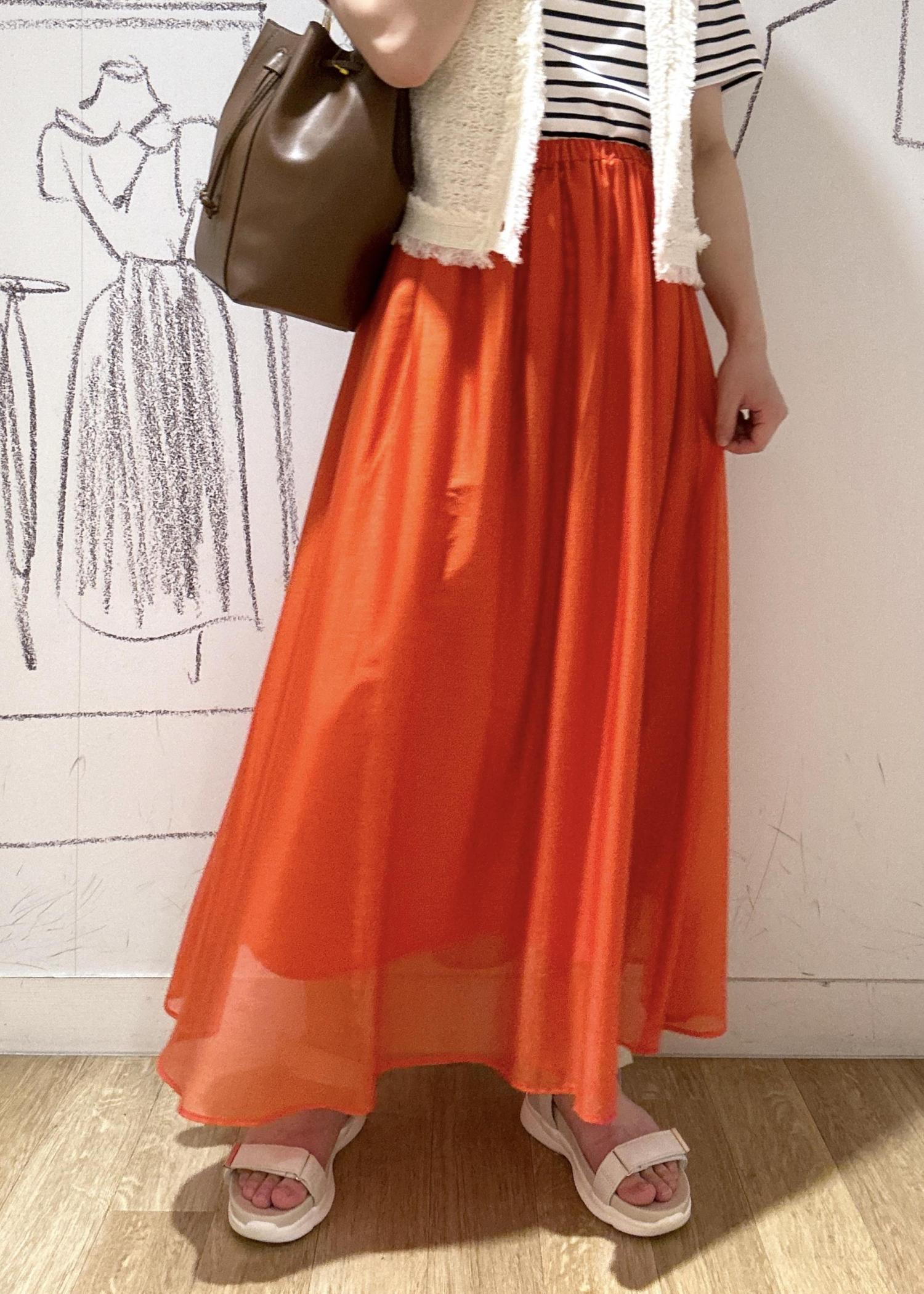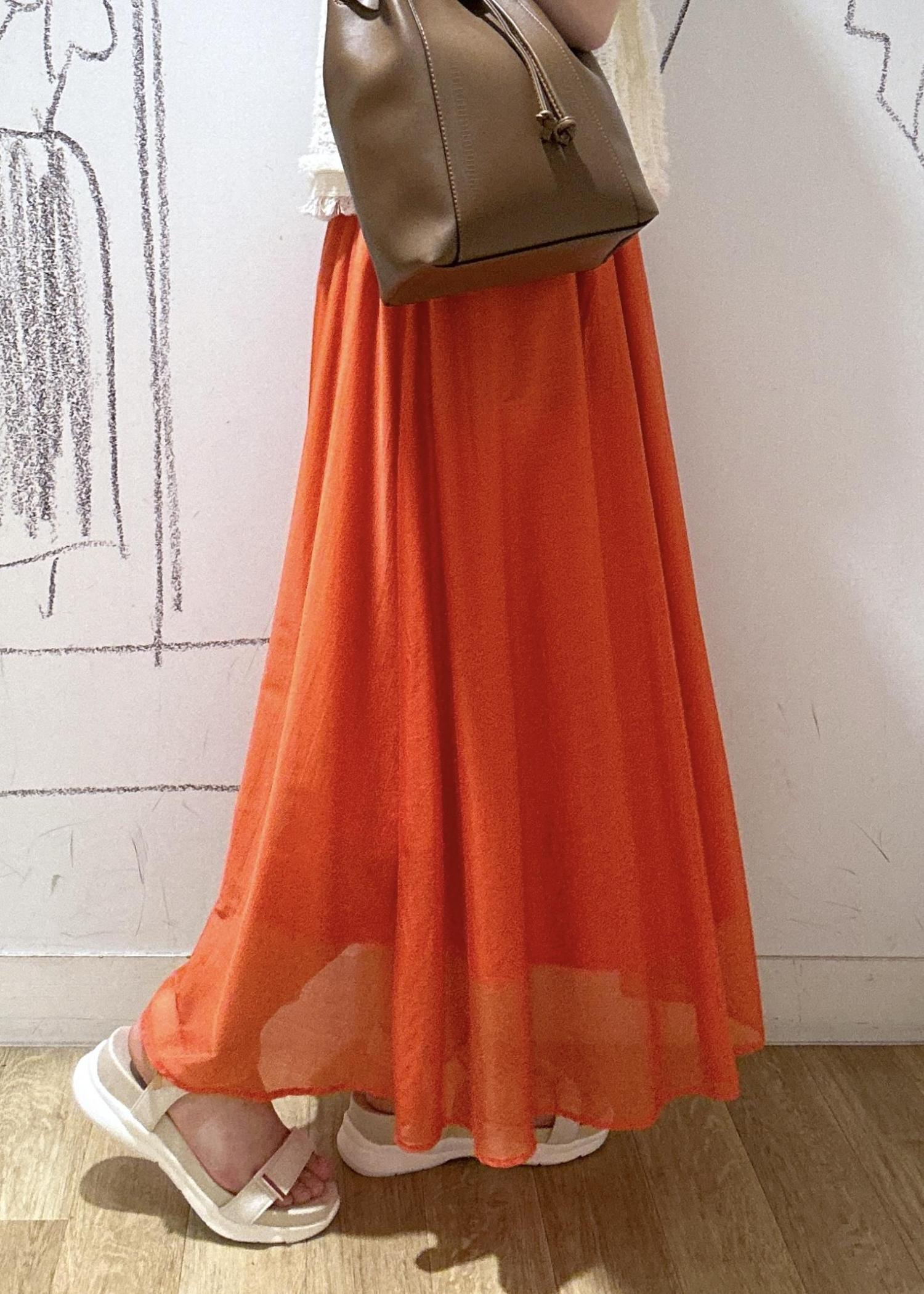 ROPÉ PICNICエアリーシアーギャザーロングスカートオレンジ / 38¥6,490レビューシアー素材で涼しげなスカート。