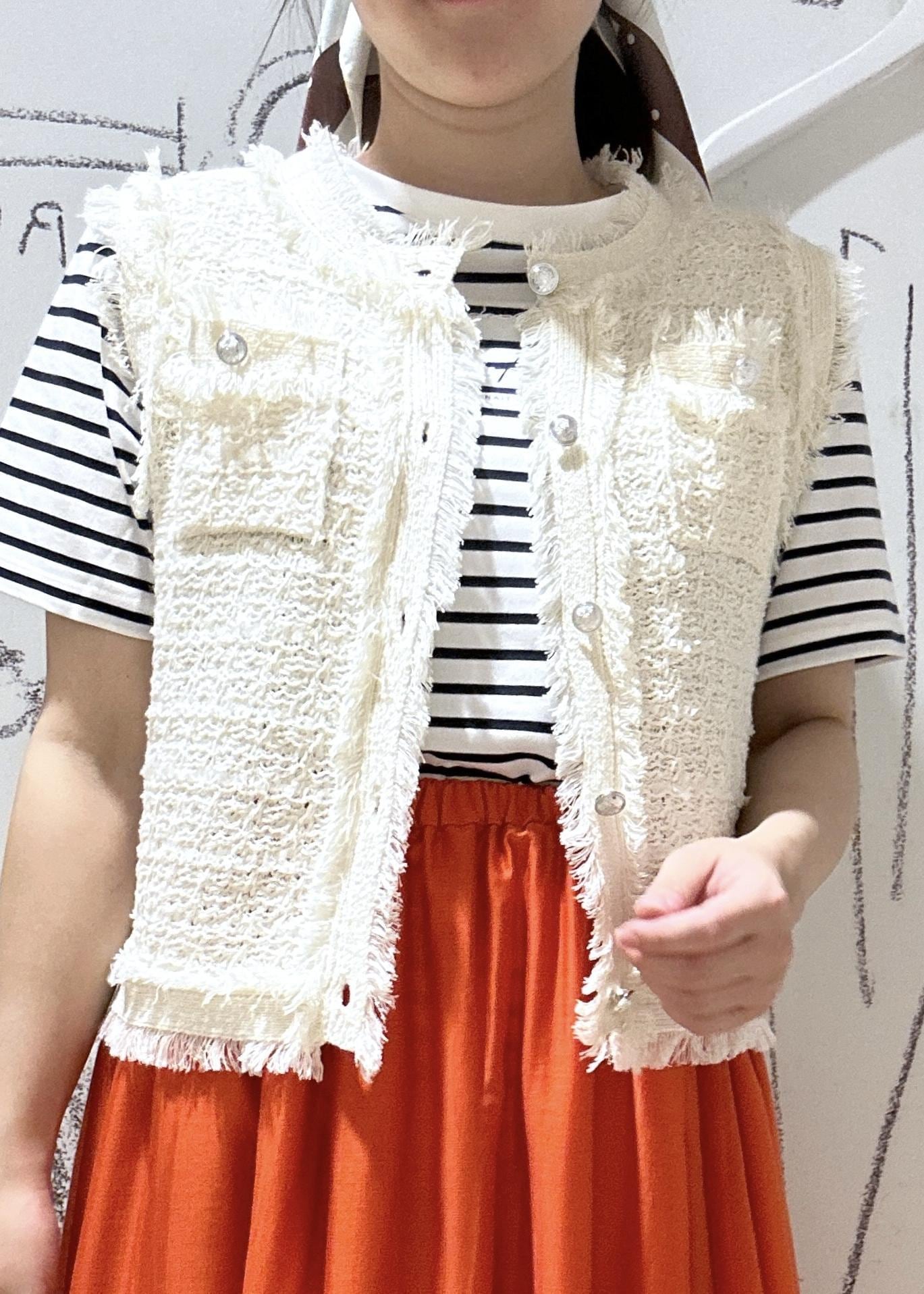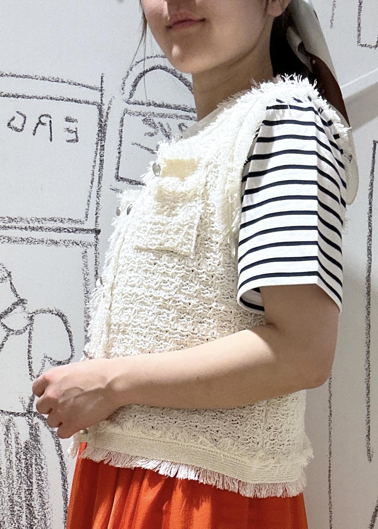 ROPÉ PICNIC【WEB限定カラー】【サマー・ツイード】着丈が選べるジレベスト/スリーブレスカーディガンキナリ / 38¥4,994レビュー短い丈で、腰にかかるくらいの長さ。
