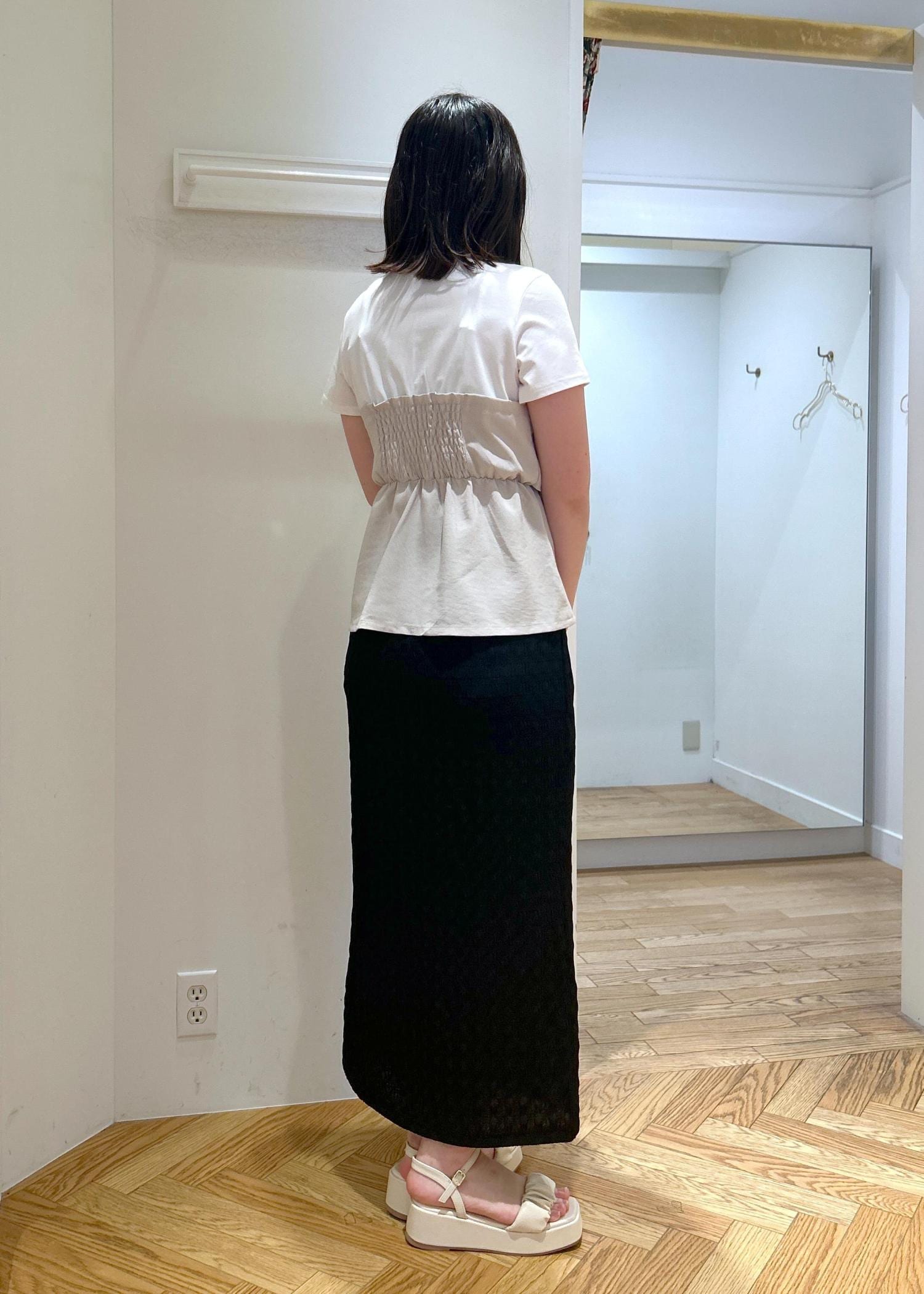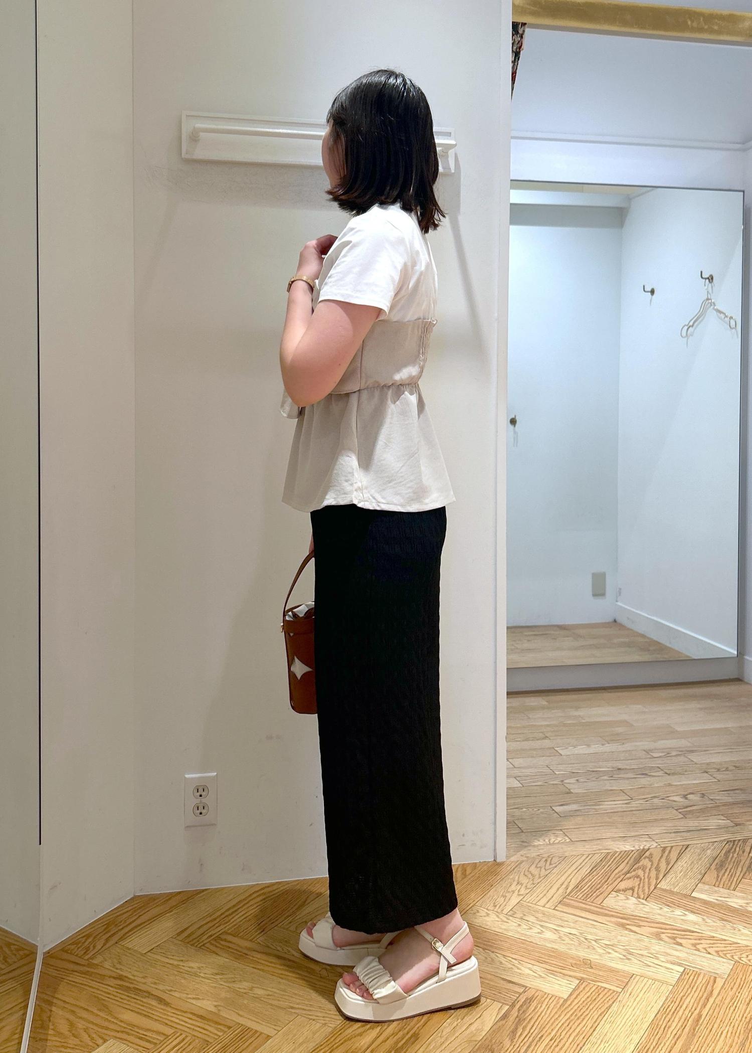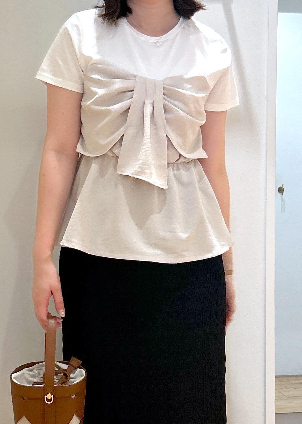 ねじりリボンTシャツ×Iラインスカートの細見えコーデです!