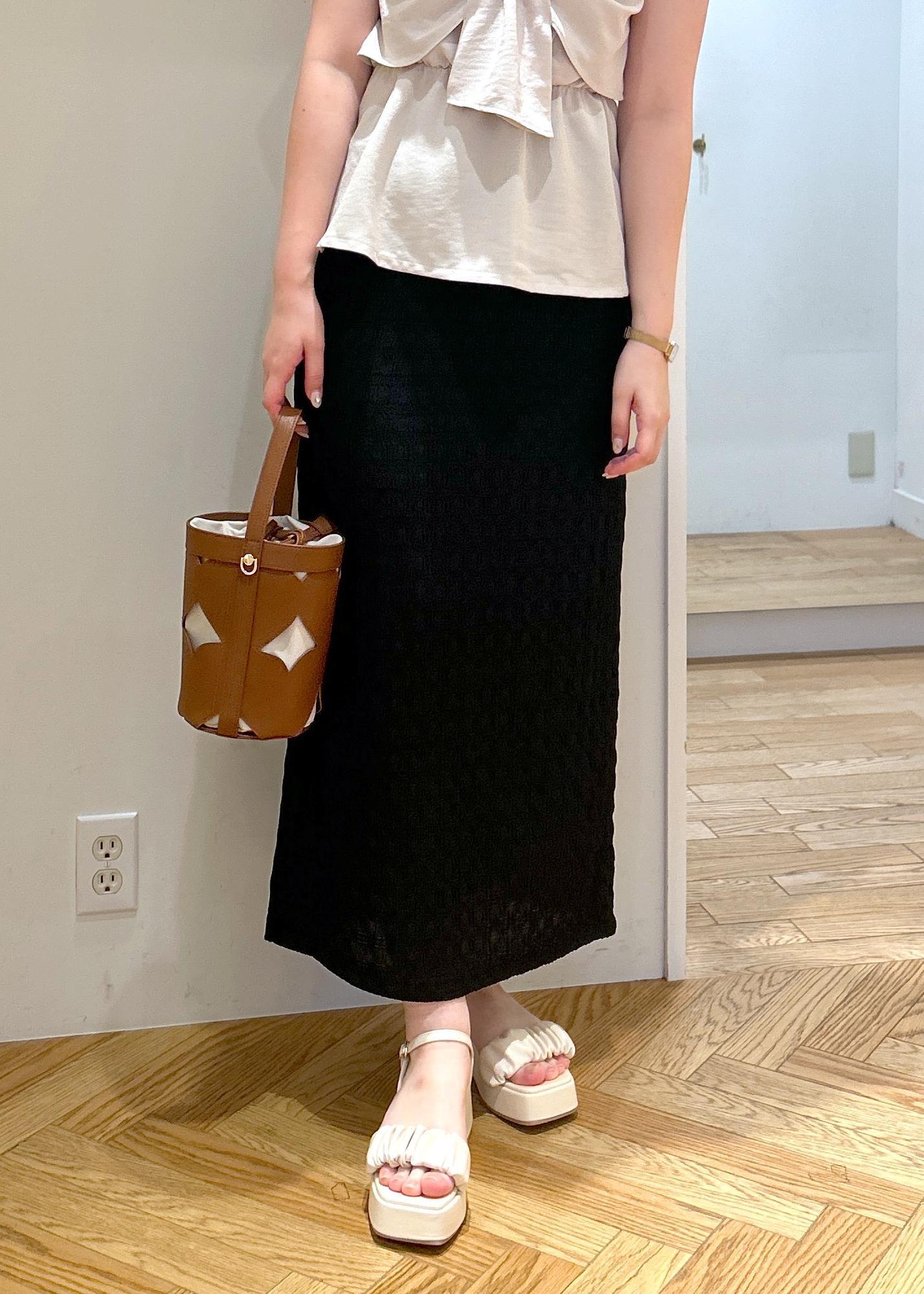 アウトレットVIS【新色追加】【接触冷感】膨れジャガードナロースカートブラック / F¥3,293レビューウエストがゴムで生地も柔らかく履き心地抜群です!