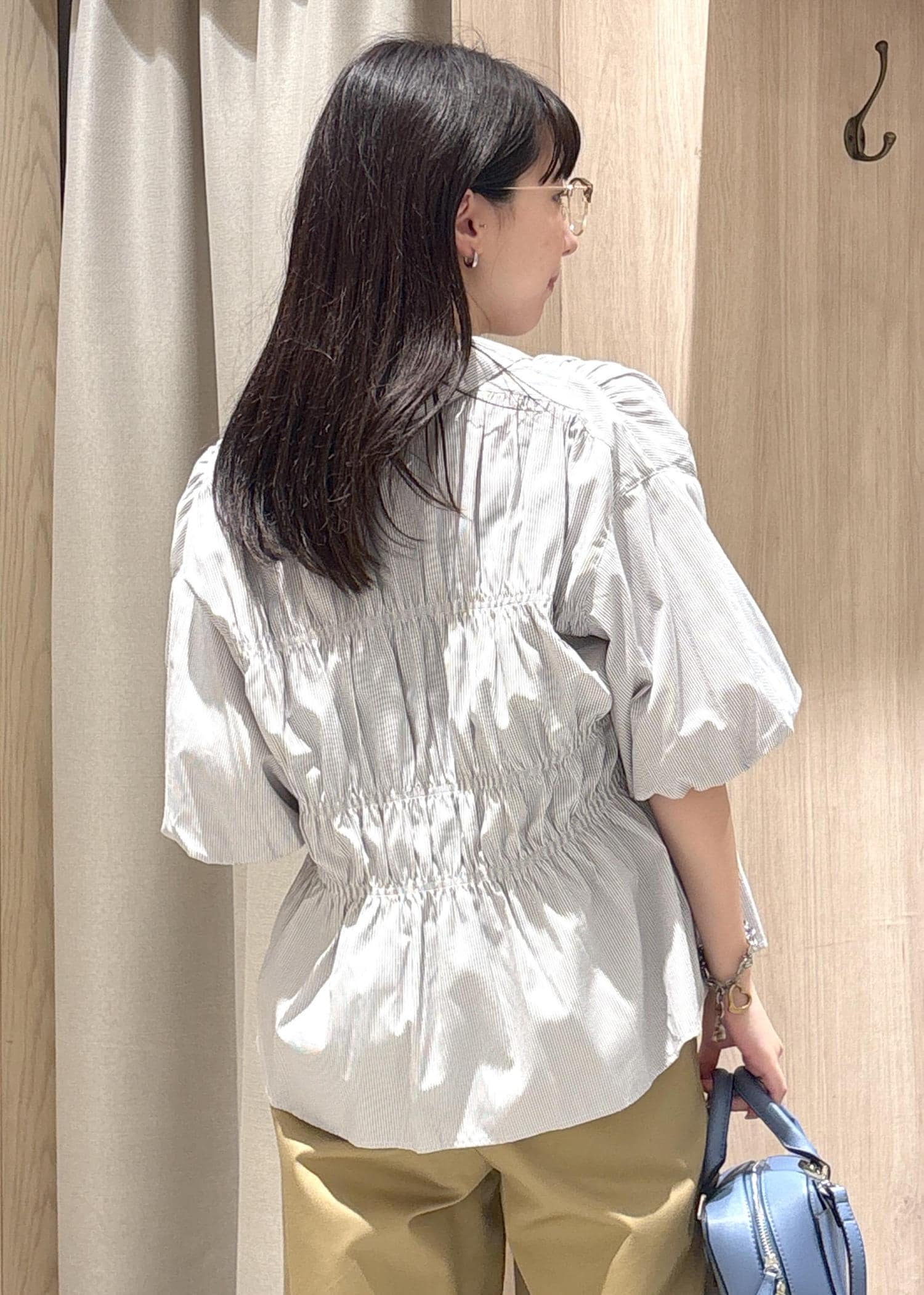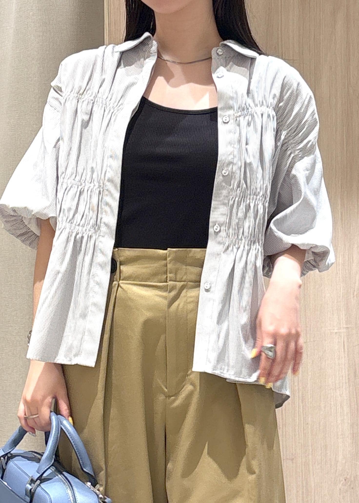VIS【新色追加】【店頭人気】シャーリングバルーンシャツグレー /¥5,489レビューシャーリングデザインですが窮屈感もなく、とても着やすいです!袖がバルーンの形になっているので、腕が細く見えます◎