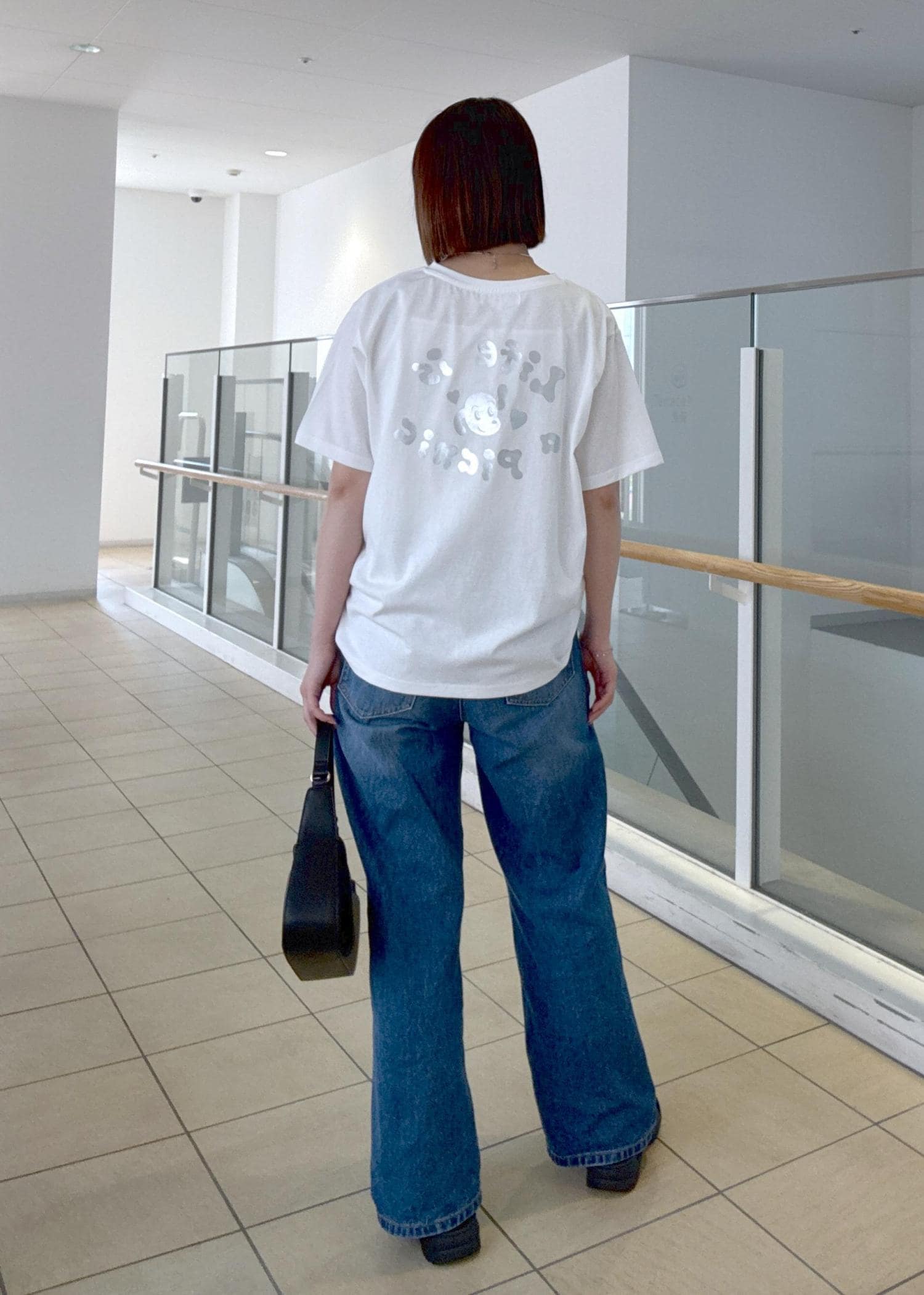 サイズ感はそこまで大きすぎないですが、程よいダボッと感が出てカジュアルコーデとして着るのがとても可愛いTシャツです◎