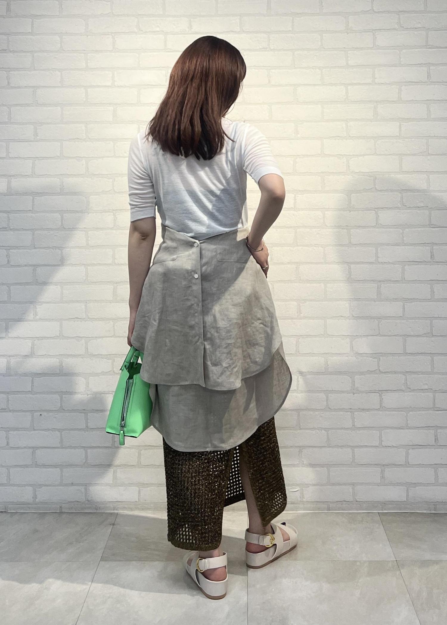 すぐ羽織れるようにリネンシャツは腰巻きにすれば、