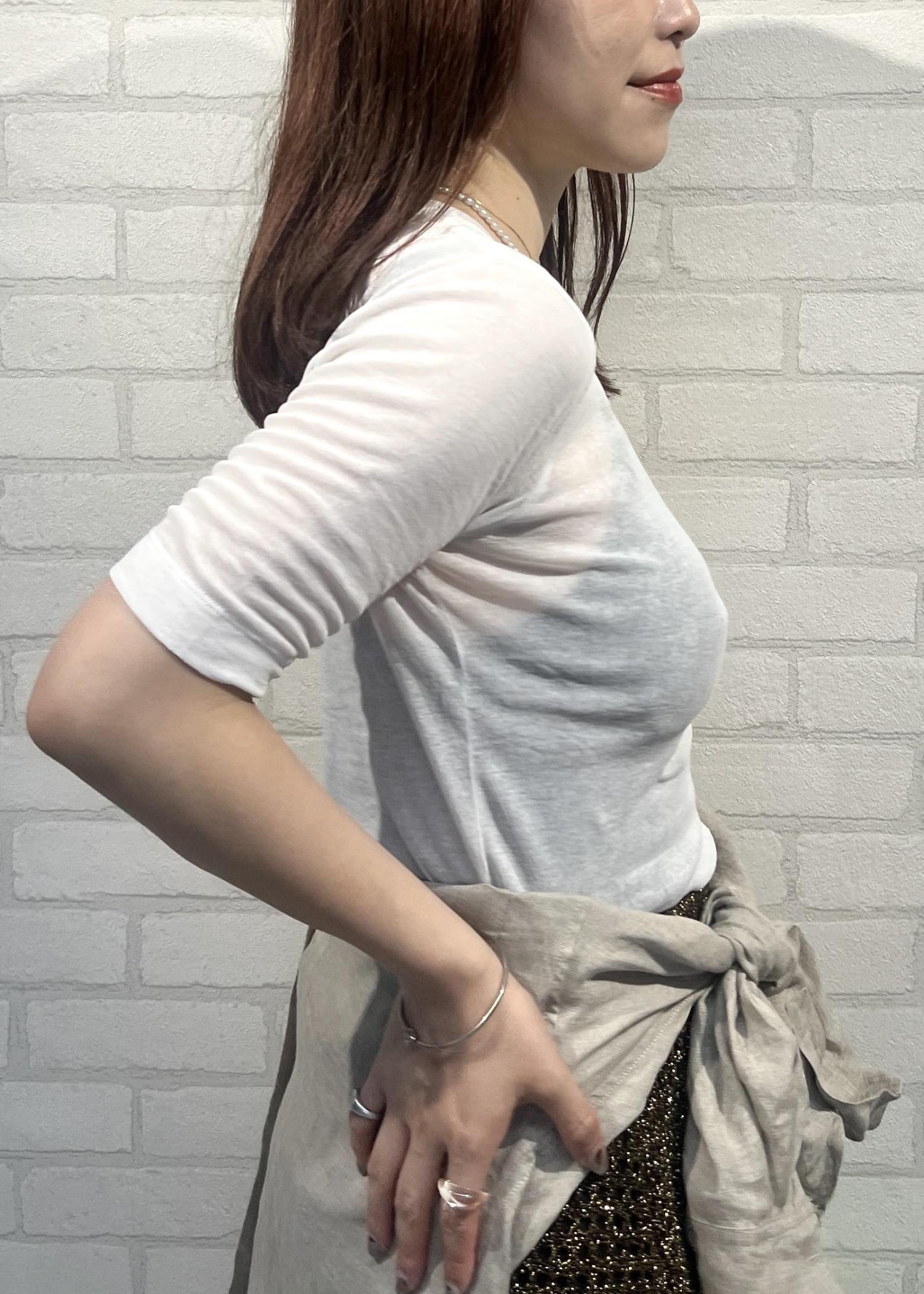 アウトレットROPÉシアーフライス5分袖プルオーバーホワイト / F¥7,700レビュー袖丈は肘上、着丈はお腹周りが隠れるくらい。