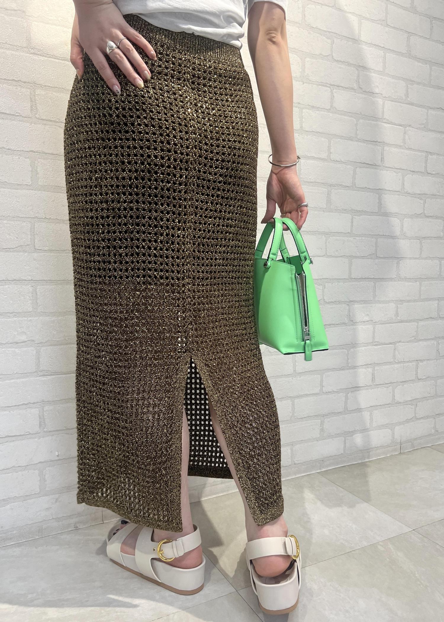 アウトレットROPÉラメメッシュスカート/セットアップ対応ゴールド / 36¥13,200レビューウエストゴムで36サイズでも伸びが良く、楽に着用できました。