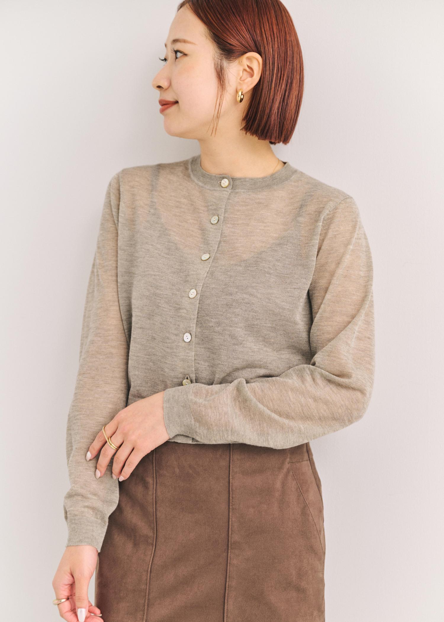 ROPÉ【洗える】LEVITAクルーネックシアーカーディガンベージュ系 / F¥13,860レビュー161cmフリーサイズ着用。