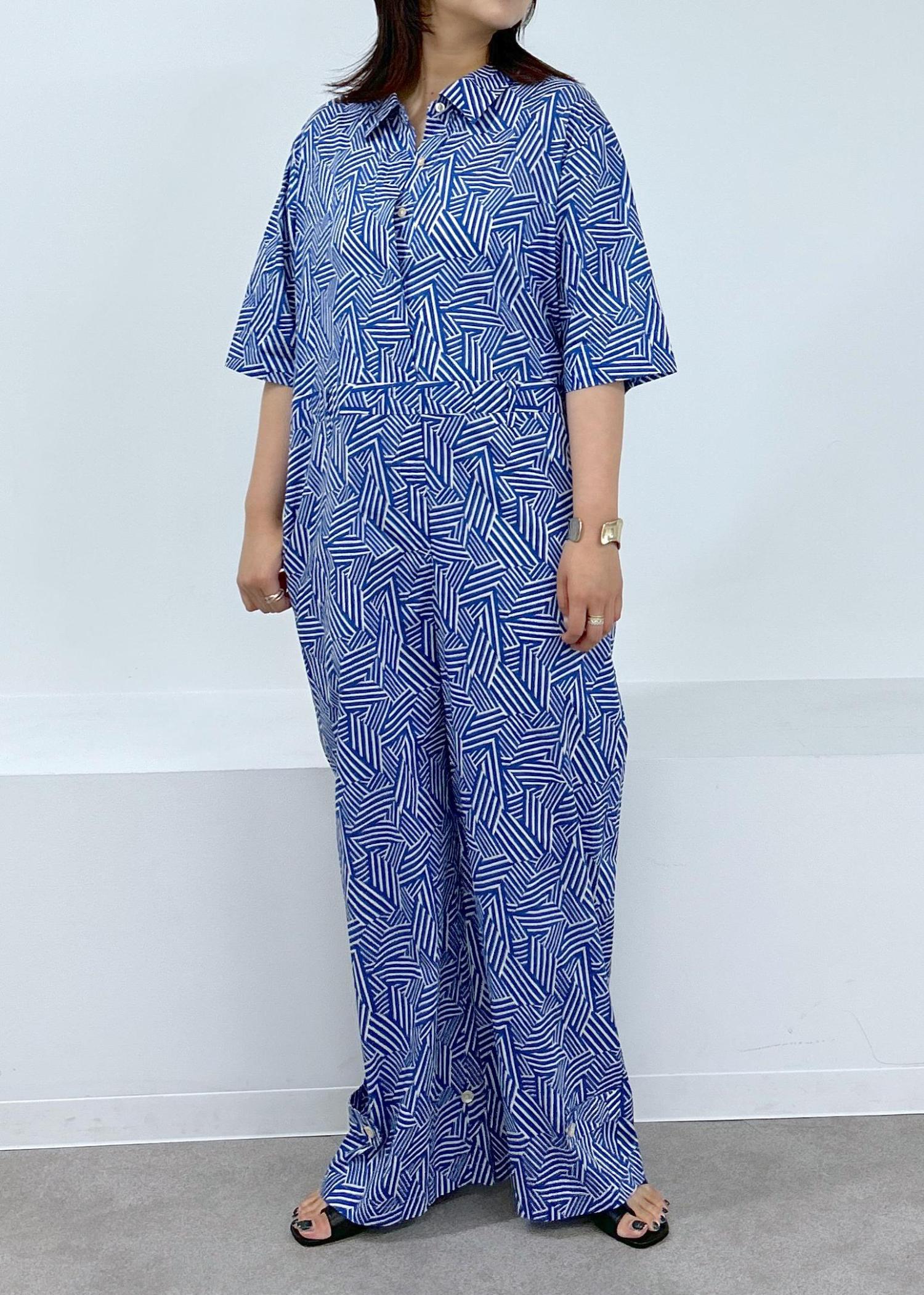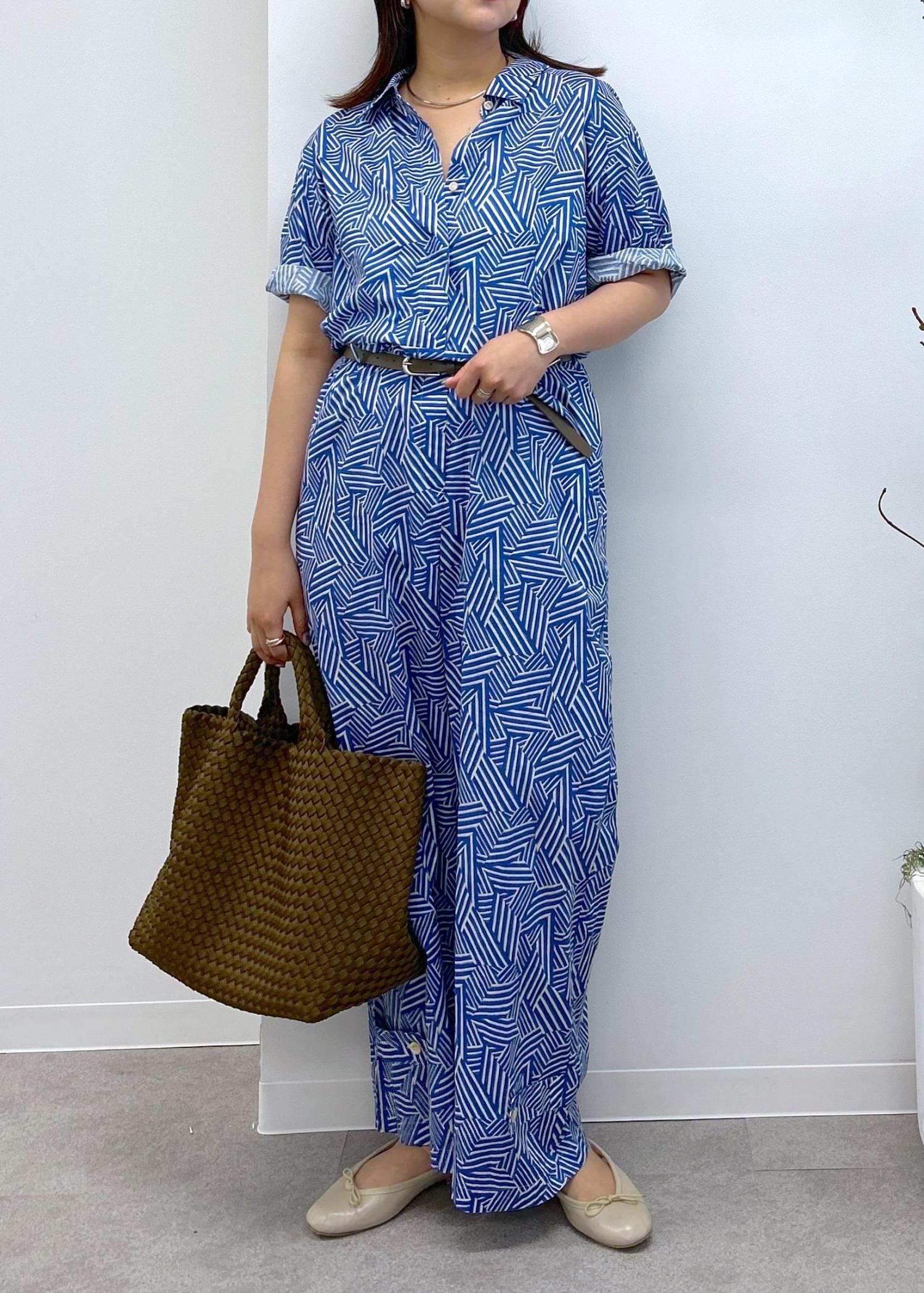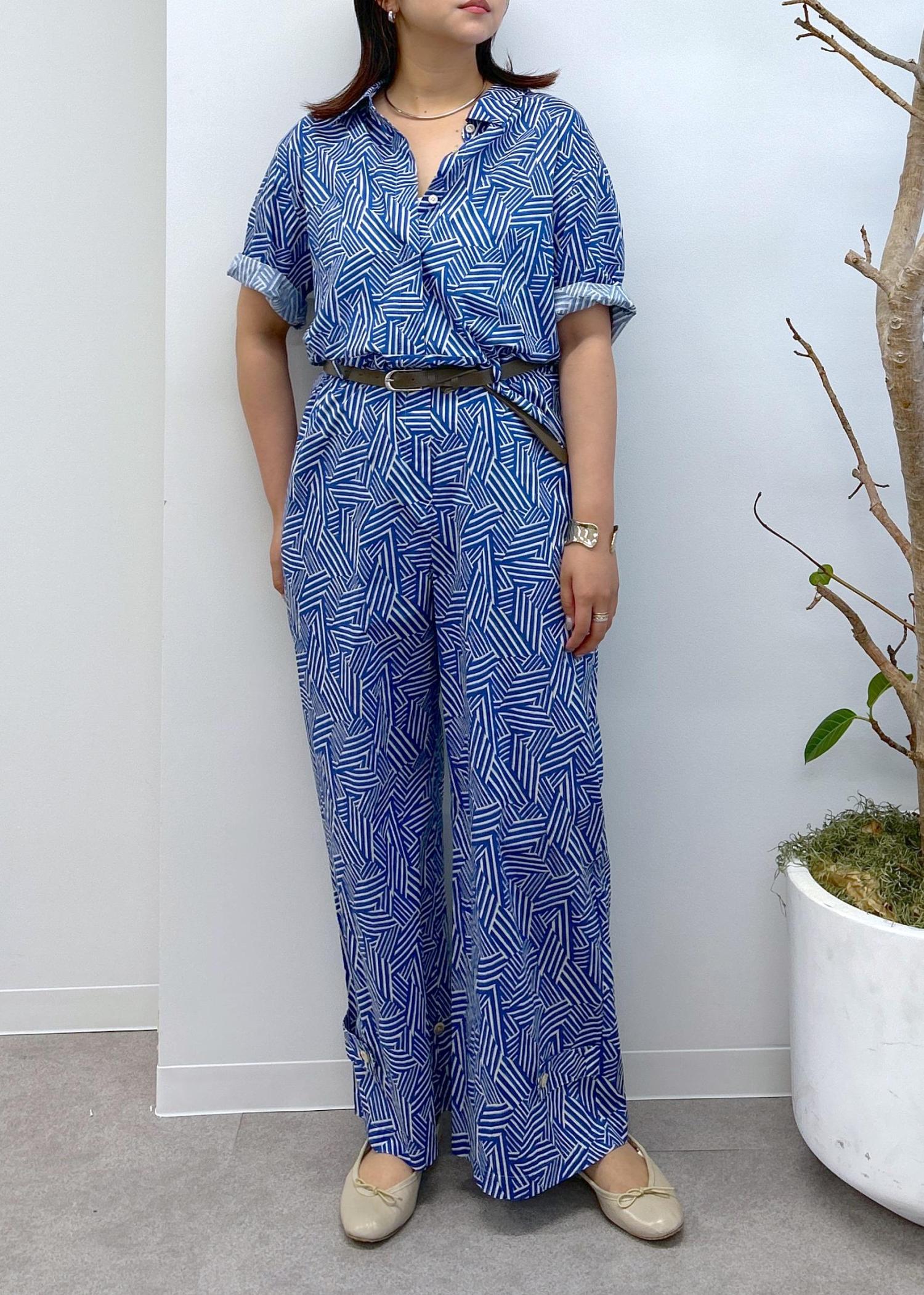 SALON adam et ropéリバティオールインワン / ロンパースブルー系 / F¥29,040レビュー着丈は長めで、158cmでギリギリ裾がつかないくらいの長さです。