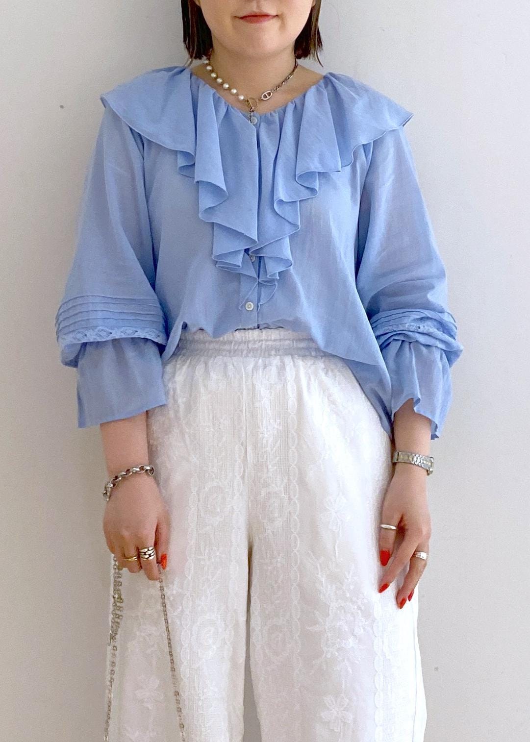 【接触冷感・通気性】お着軽シャツシリーズ/綿ボイルフリルブラウス