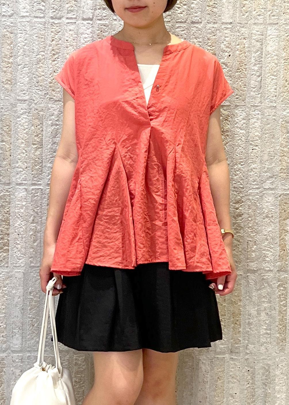 アウトレットVIS【防シワ/洗える】スキッパーフレアブラウスレッド系 / F¥3,293レビューお洗濯可能でシワになりにくい涼しげなブラウスです!