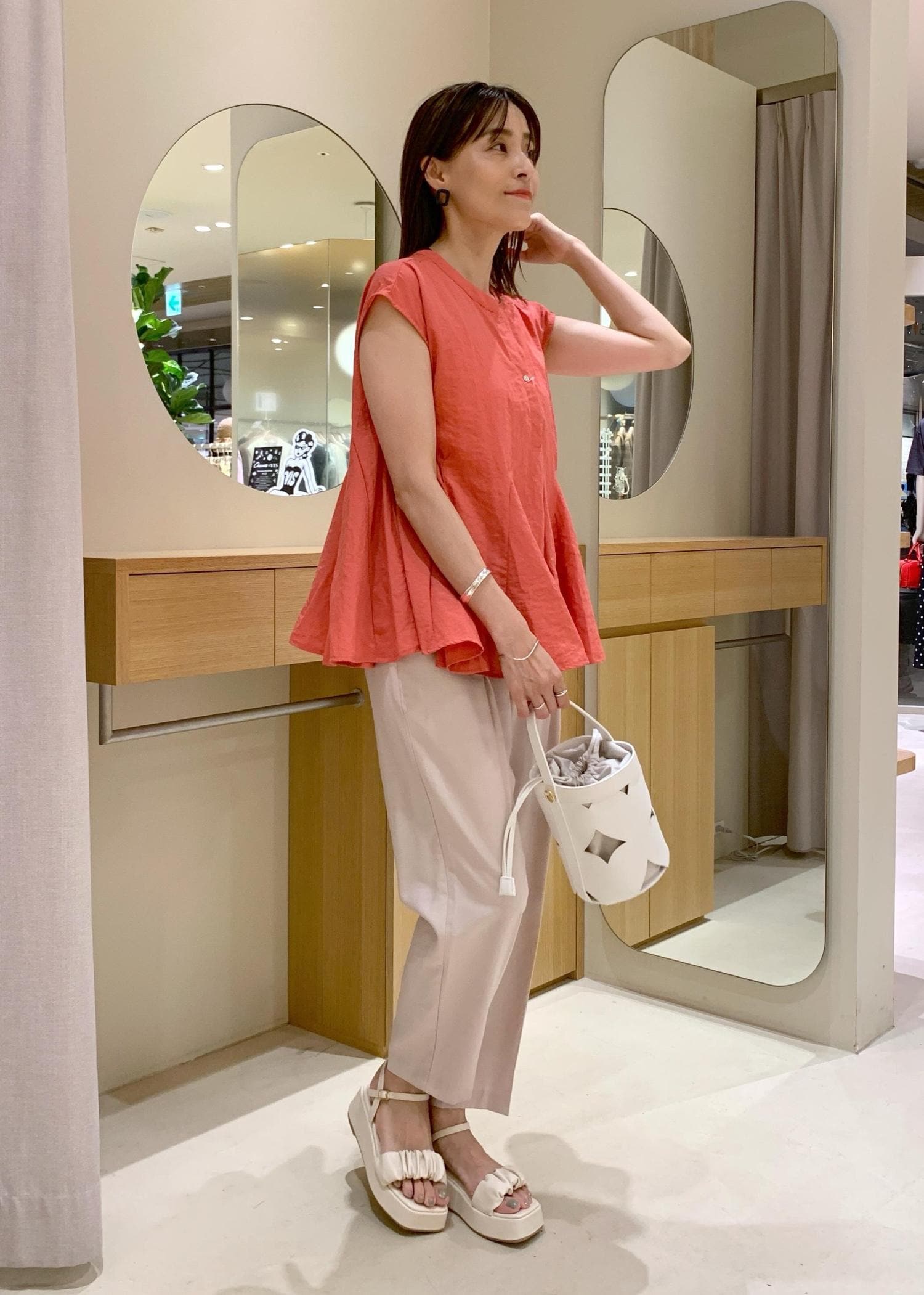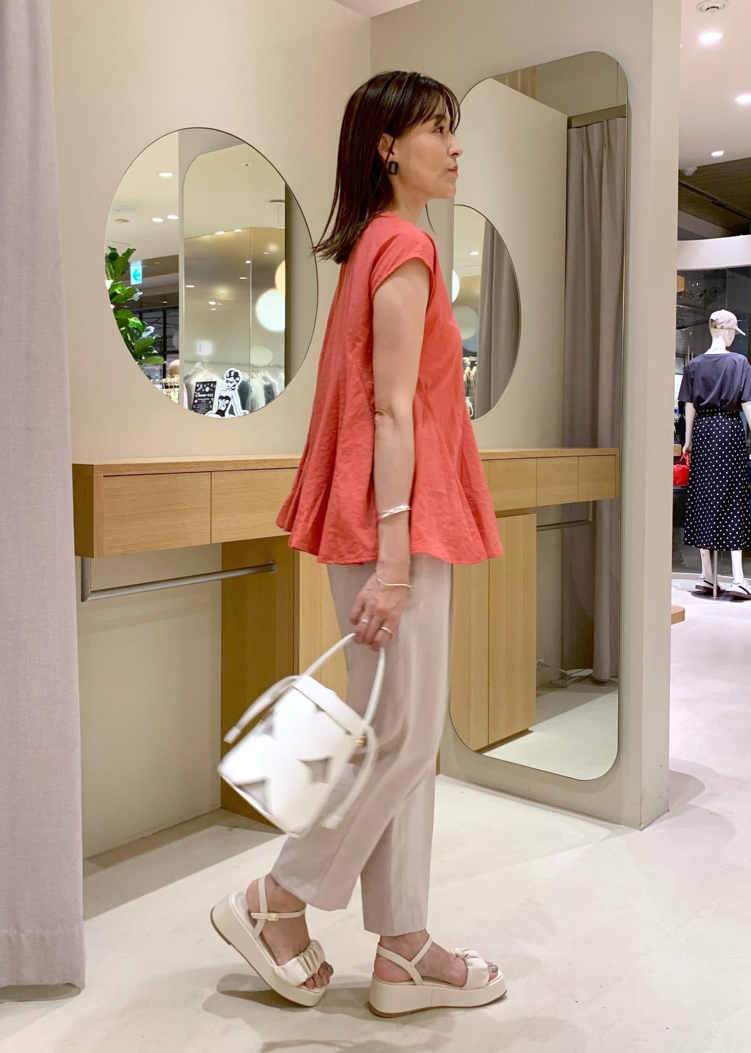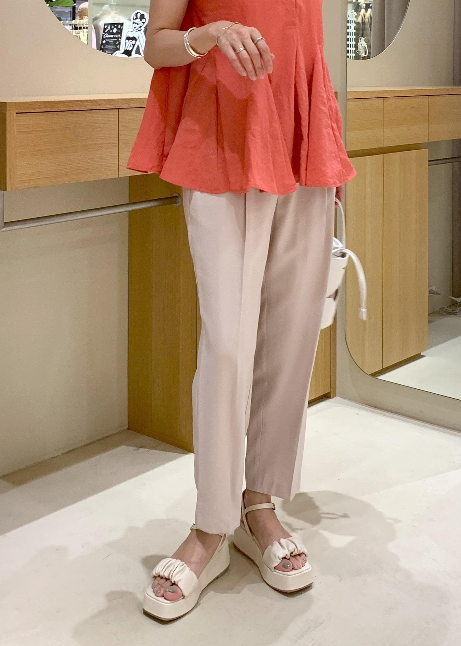 テーパード型でヒップ周りにゆとりがあり、膝下はスッキリ見えですので体型カバーにもピッタリですよ。