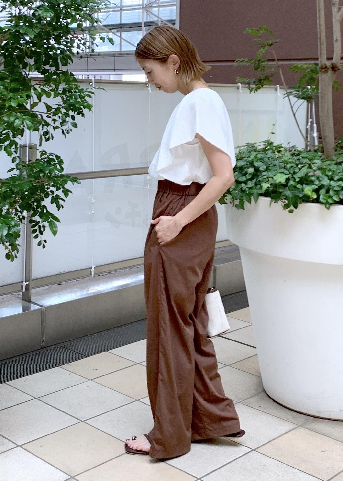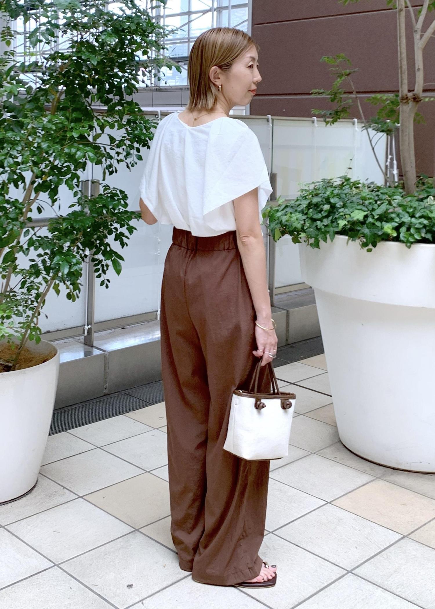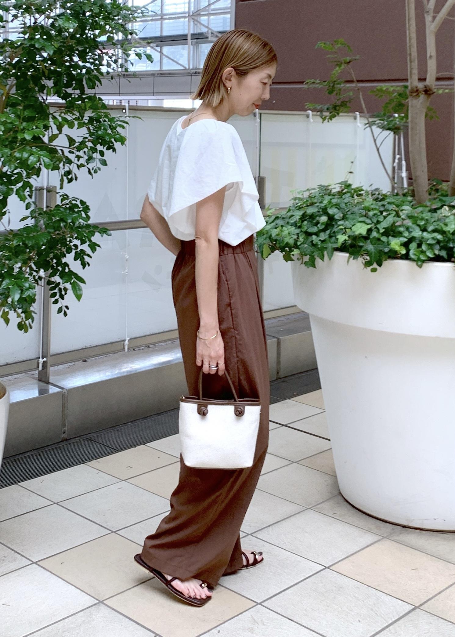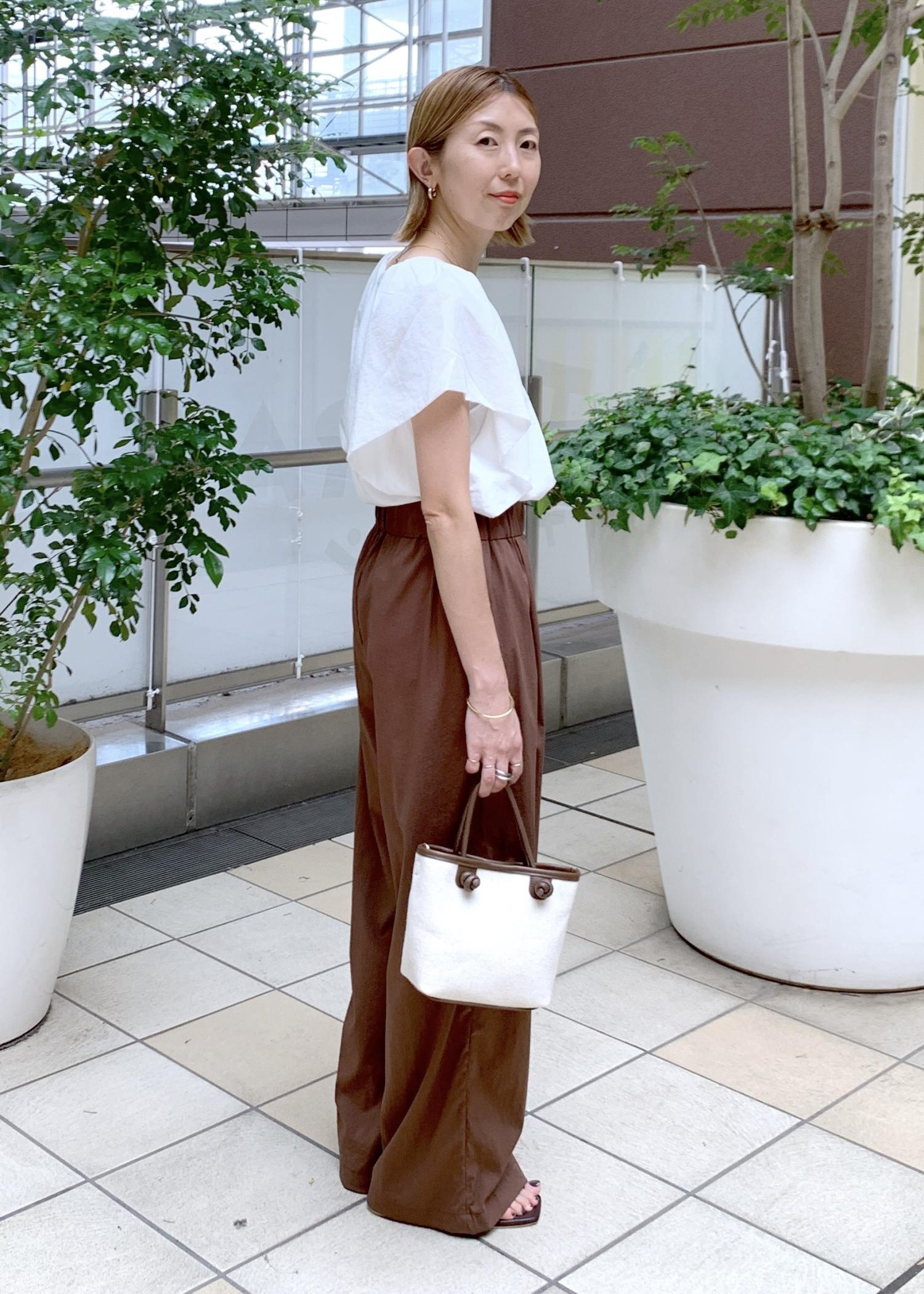 トレンド感のあるブラウンを合わせて大人カジュアルなスタイリングに◎