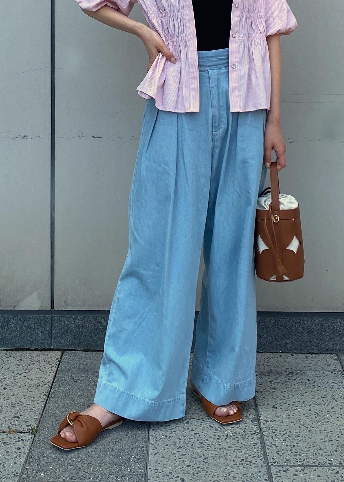 アウトレットVISタックデザインリラックスデニムパンツサックス / M¥3,460レビュー夏でも履いていただけるようなサラッとした生地感のデニムワイドパンツです!