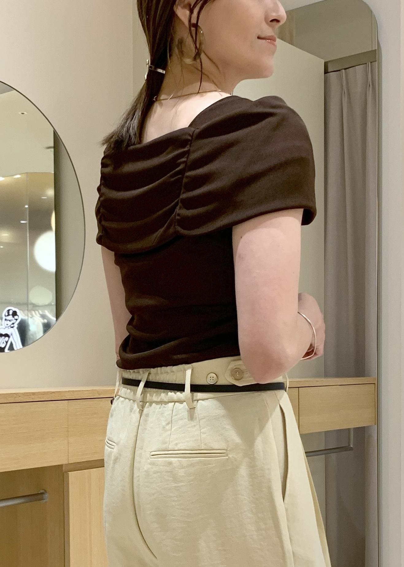 VISオフショルダーテレコカットソープルオーバーダークブラウン / F¥4,389レビュー着用時、デコルテラインがとってもきれいでした。