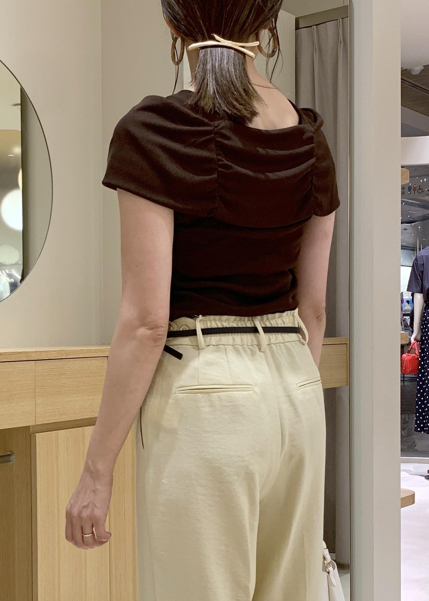 デコルテ美人になれるカットソーと接触冷感のパンツで、