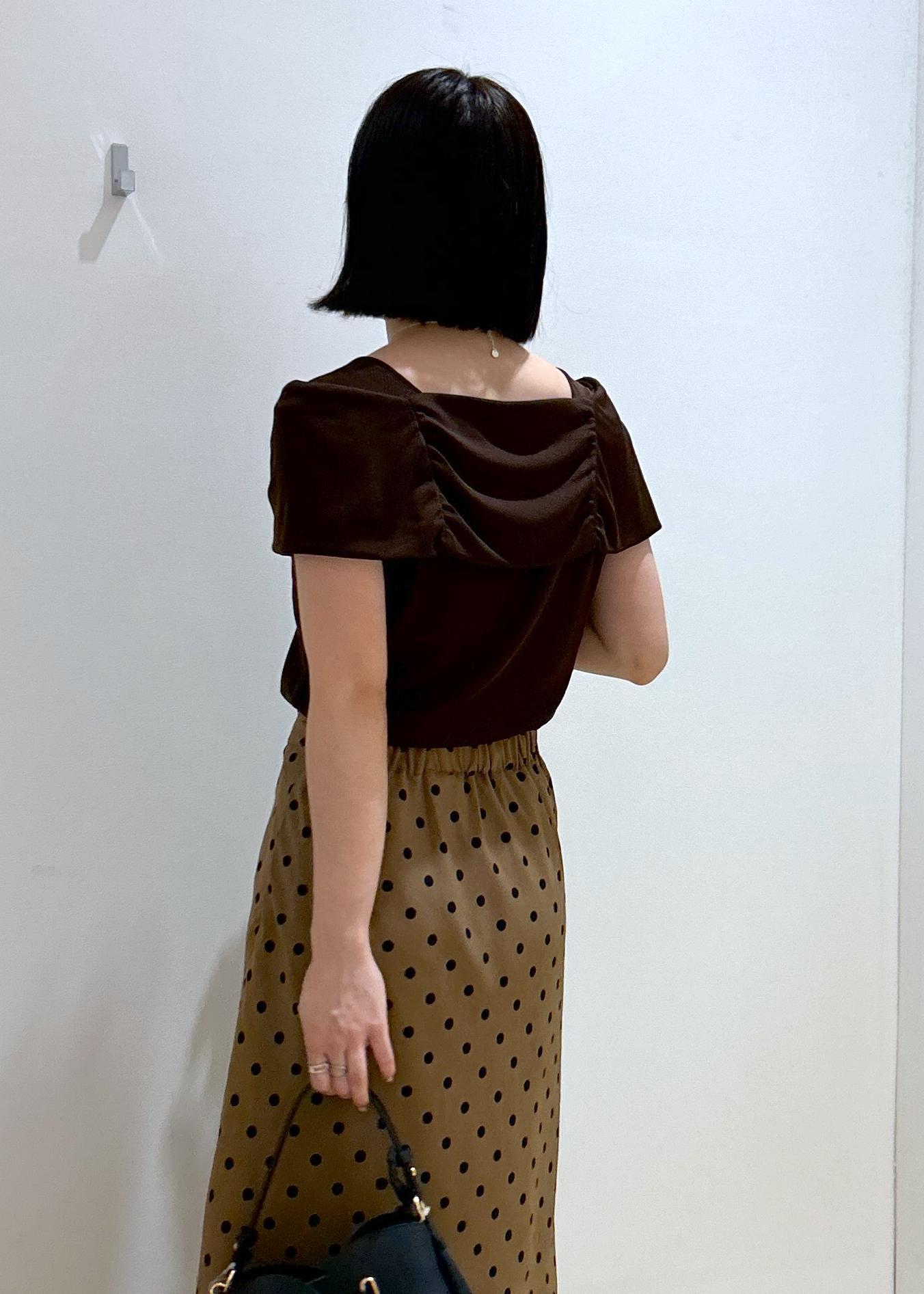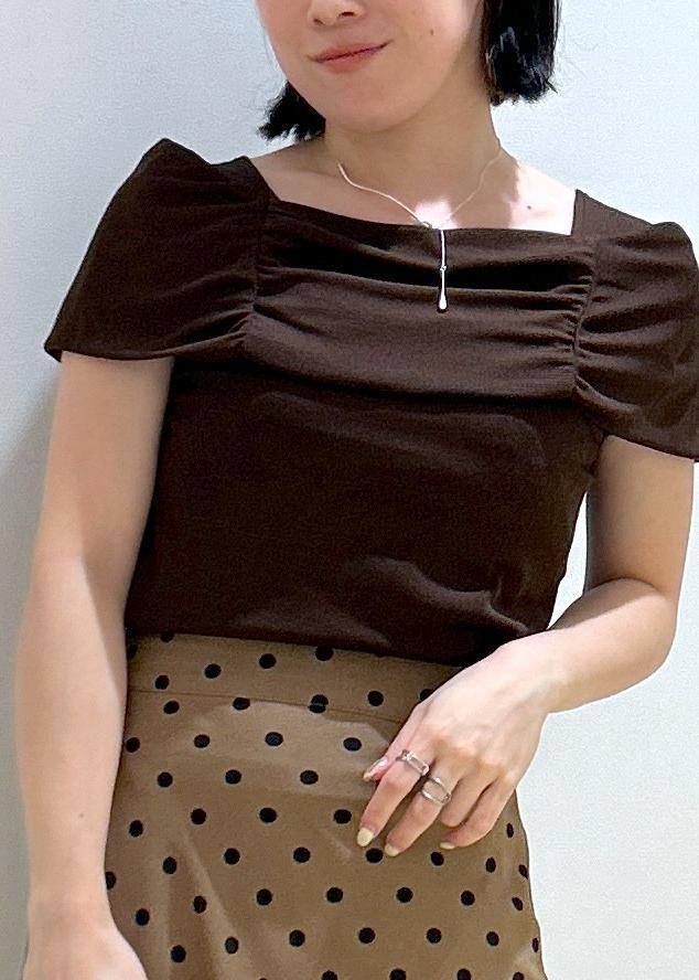 半袖にシャーリング部分が重ねてあるので1枚でもインナーが見える心配がありません。 -