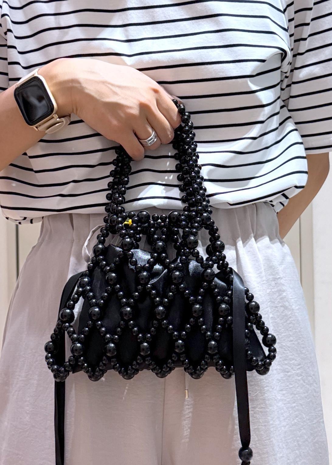 アウトレットROPÉ PICNIC PASSAGEポーチ付きビーズハンドバッグブラック / F¥2,250レビューパールモチーフがコーディネートのアクセントになります。