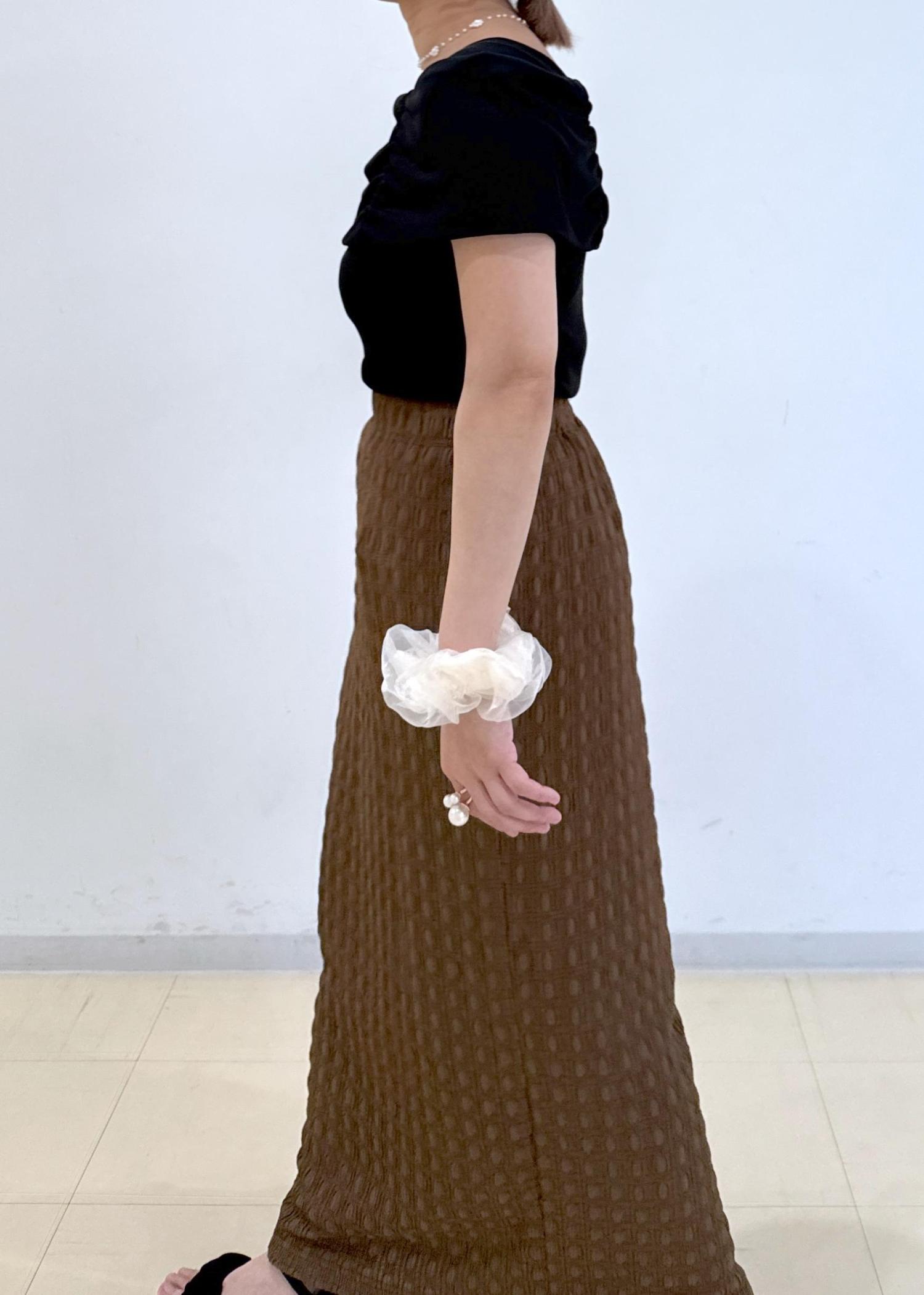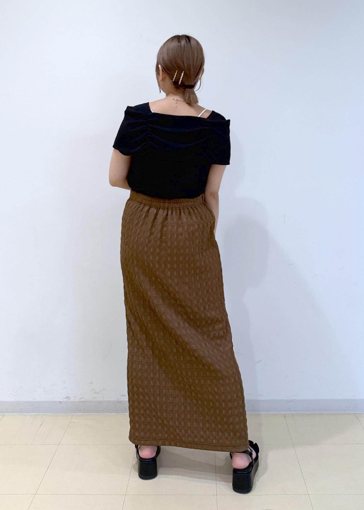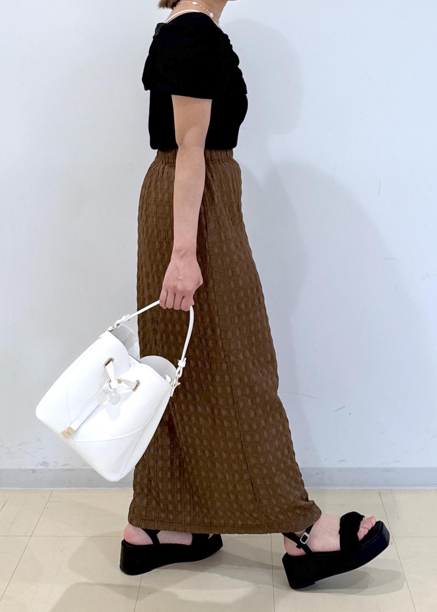 アウトレットVIS【新色追加】【接触冷感】膨れジャガードナロースカートブラウン / F¥3,842レビューストレッチが効いてるので楽に着用できます!