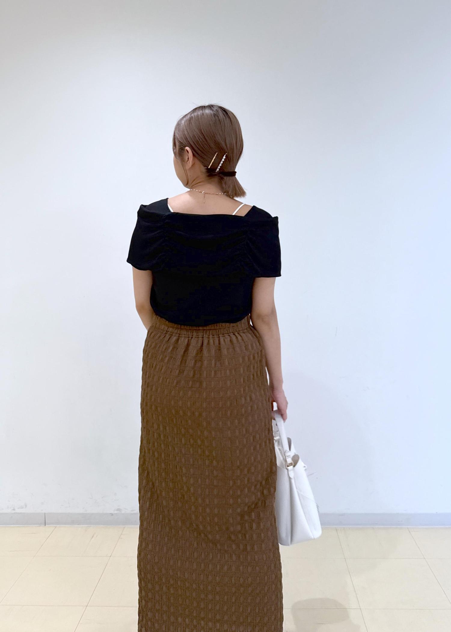 オフィショル風なので肩も隠れ、鎖骨が見えるくらいの開き具合なので首元もスッキリ見えます◎ -
