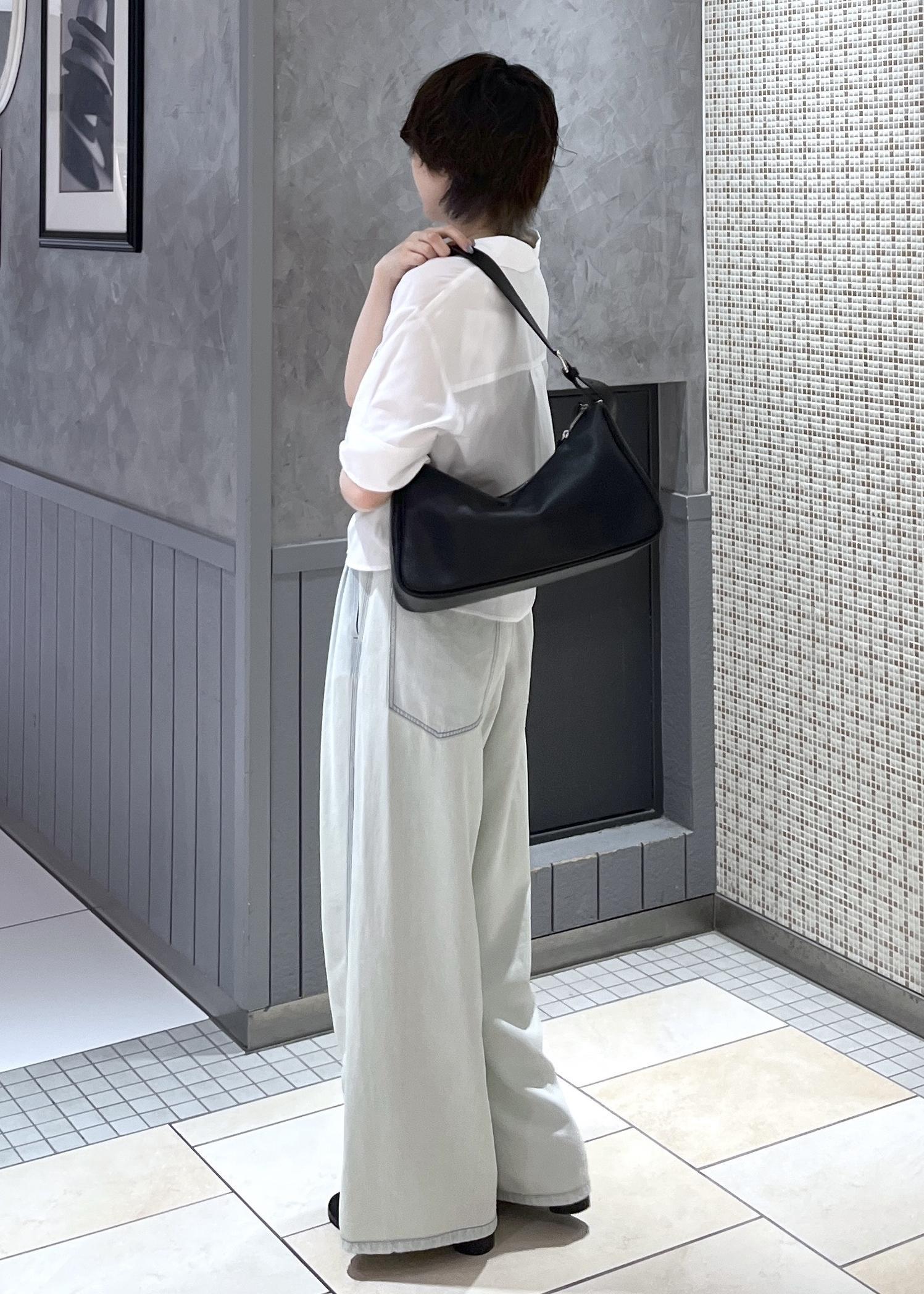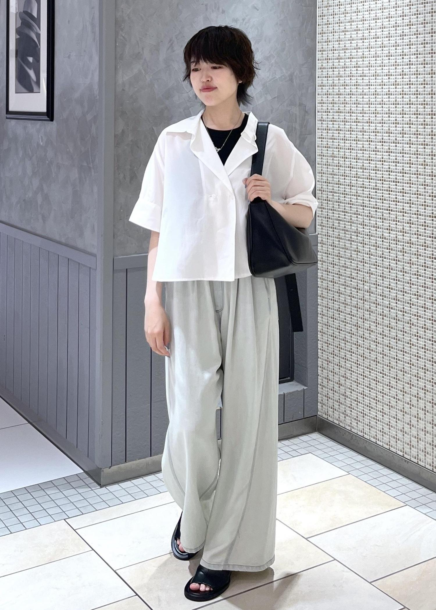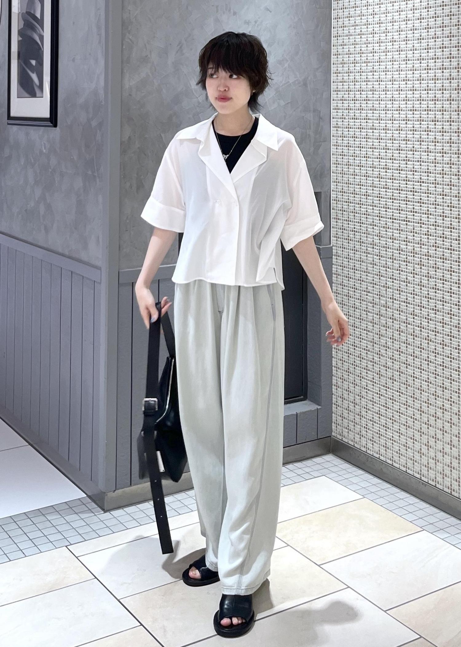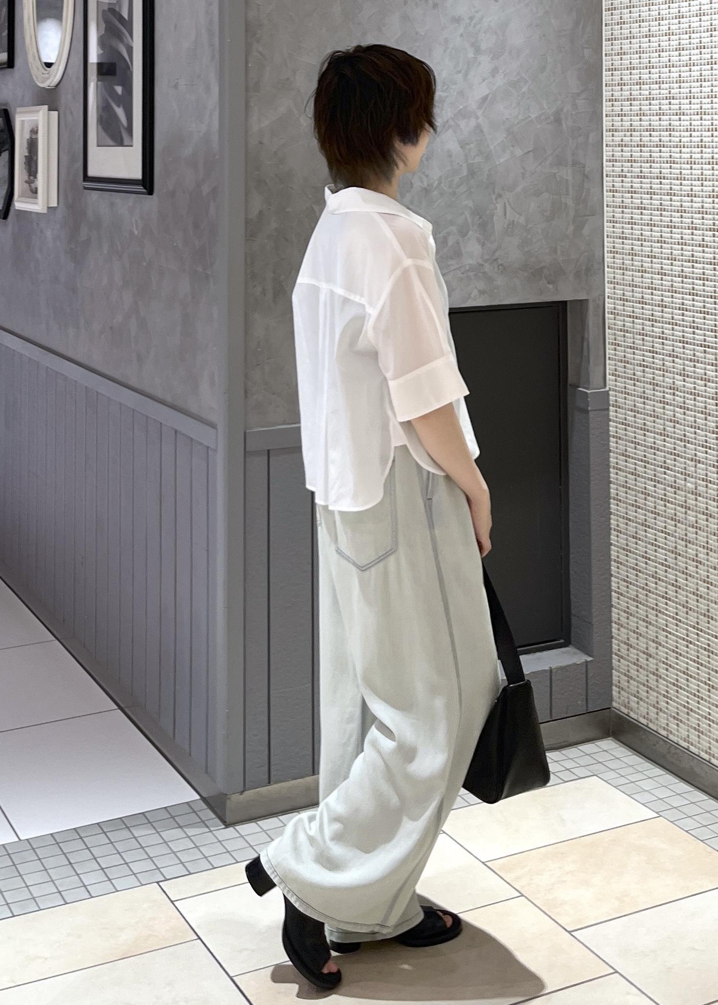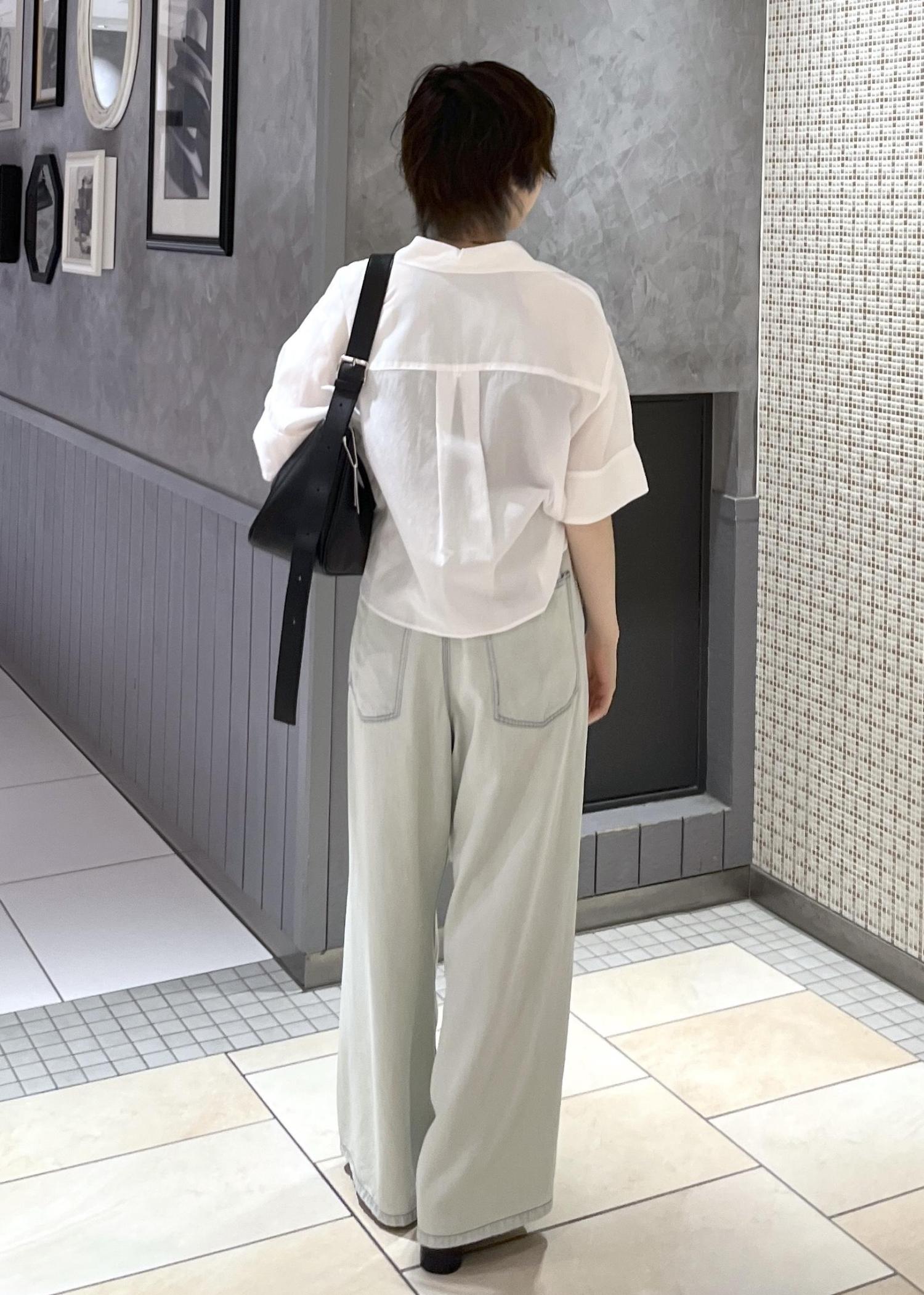 今回はきれいめカジュアルなスタイリングを新作のシャツで組んでみました。シャツですが綿が入っているので、デニムなどカジュアルなパンツとも相性抜群⭐︎ 暑い季節はサラッとしたい!ということでライトデニムを着用しています♩
