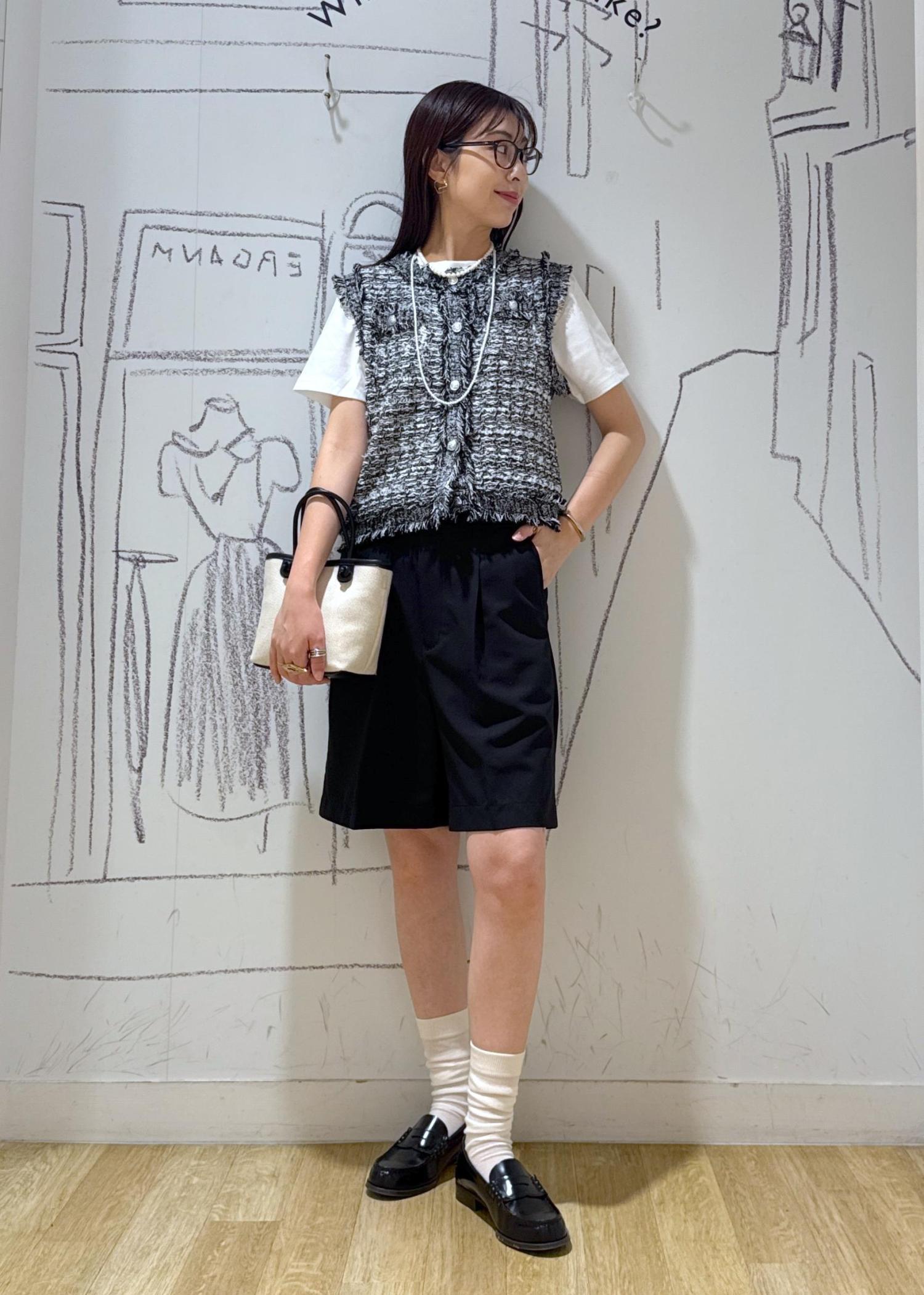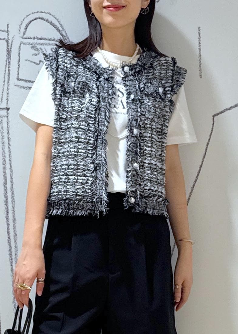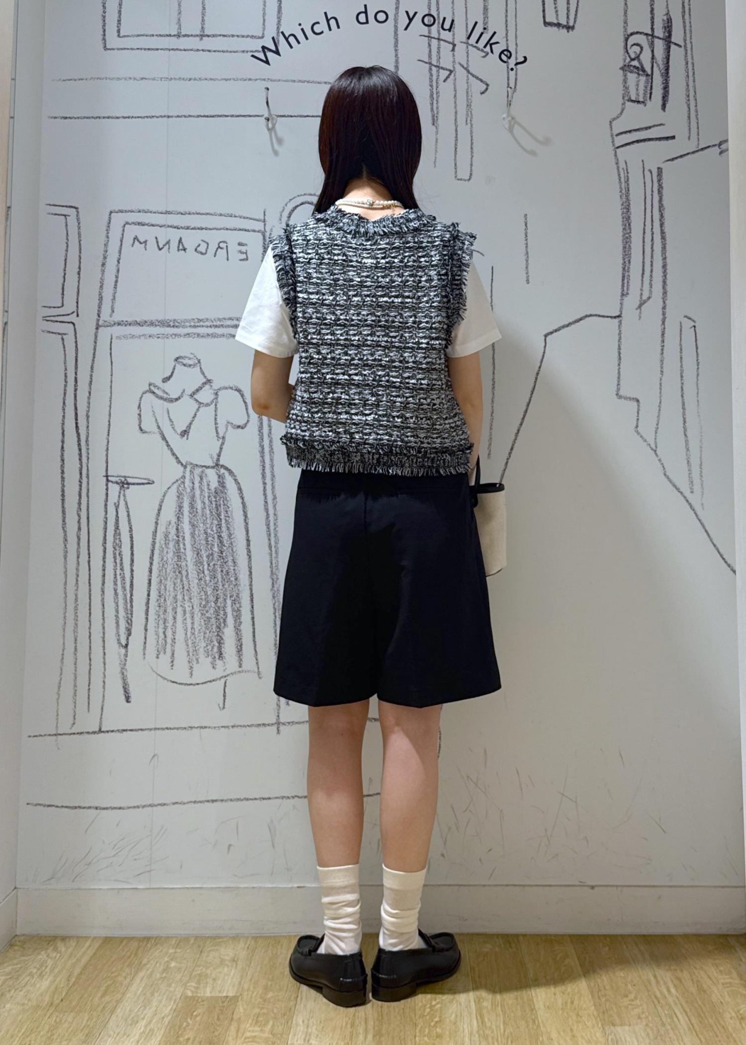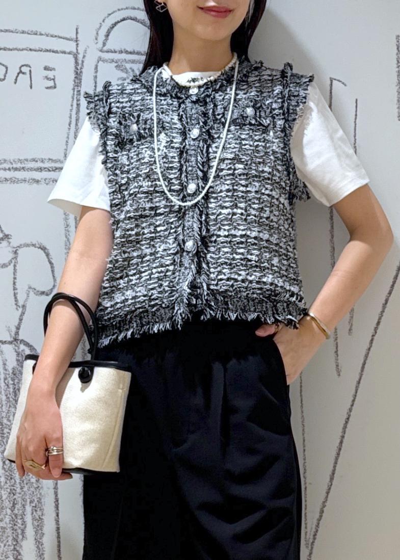 ROPÉ PICNIC【WEB限定カラー】【サマー・ツイード】着丈が選べるジレベスト/スリーブレスカーディガンブラック系 / 38¥4,994レビュー38サイズはコンパクトな着丈なのでボリュームのあるボトムスとの相性が良いです。ちなみに38Tは腰回りをカバーしてくれる着丈ですが長過ぎないのでこちらもバランスが取りやすいです。肩は覆うデザインなので1枚着として着ても上品さがあります。ゆとりがあるので楽な着心地です。