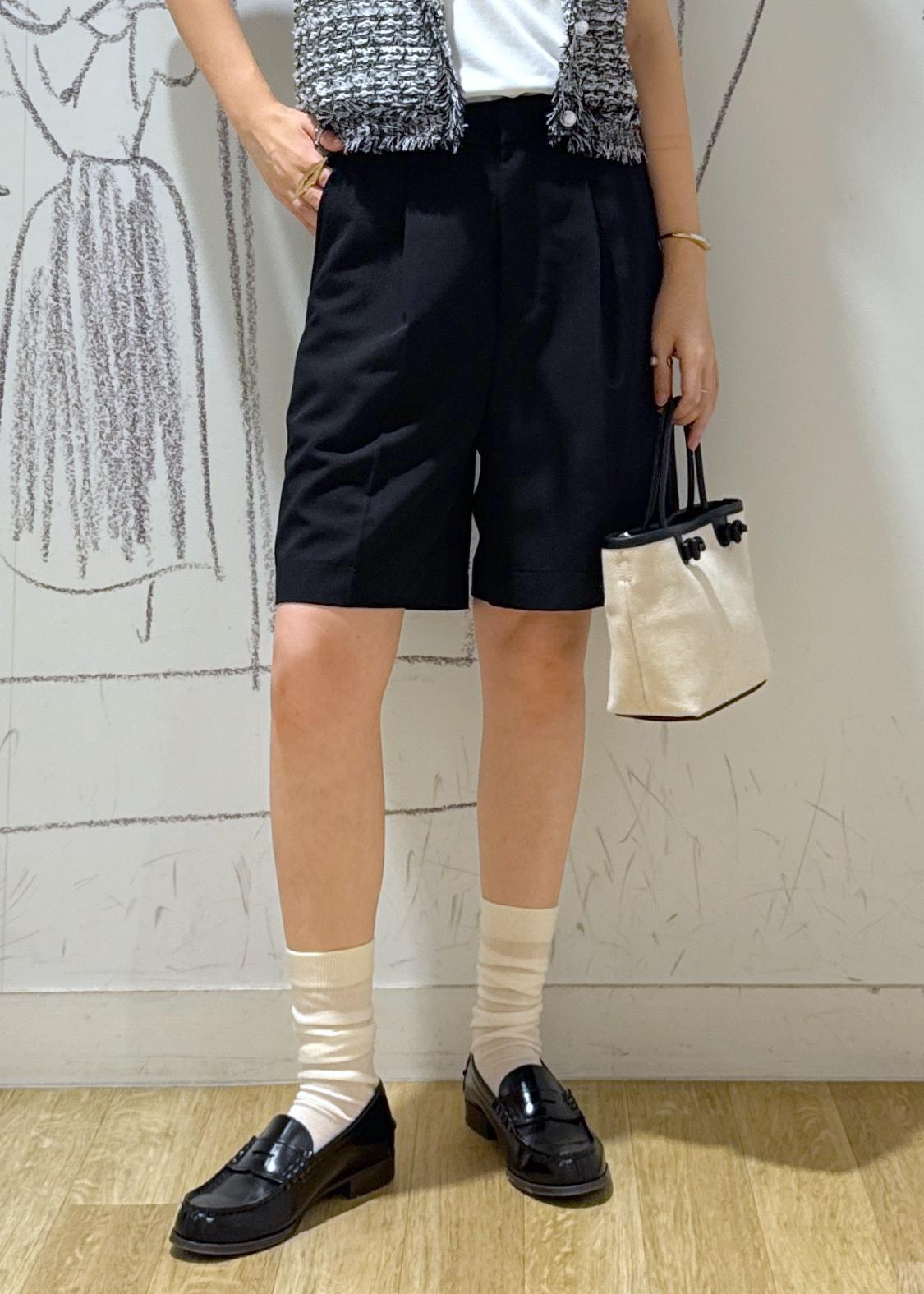 ROPÉ PICNICハーフタックパンツブラック / 38¥4,499レビュー着丈が短くなってしまうのが気になったので買うなら38サイズにします。膝上10㎝くらいですが筒幅があることやタック入りなど太もも周りを上品にカバーしてくれるので大人の女性も履き易い1枚です。