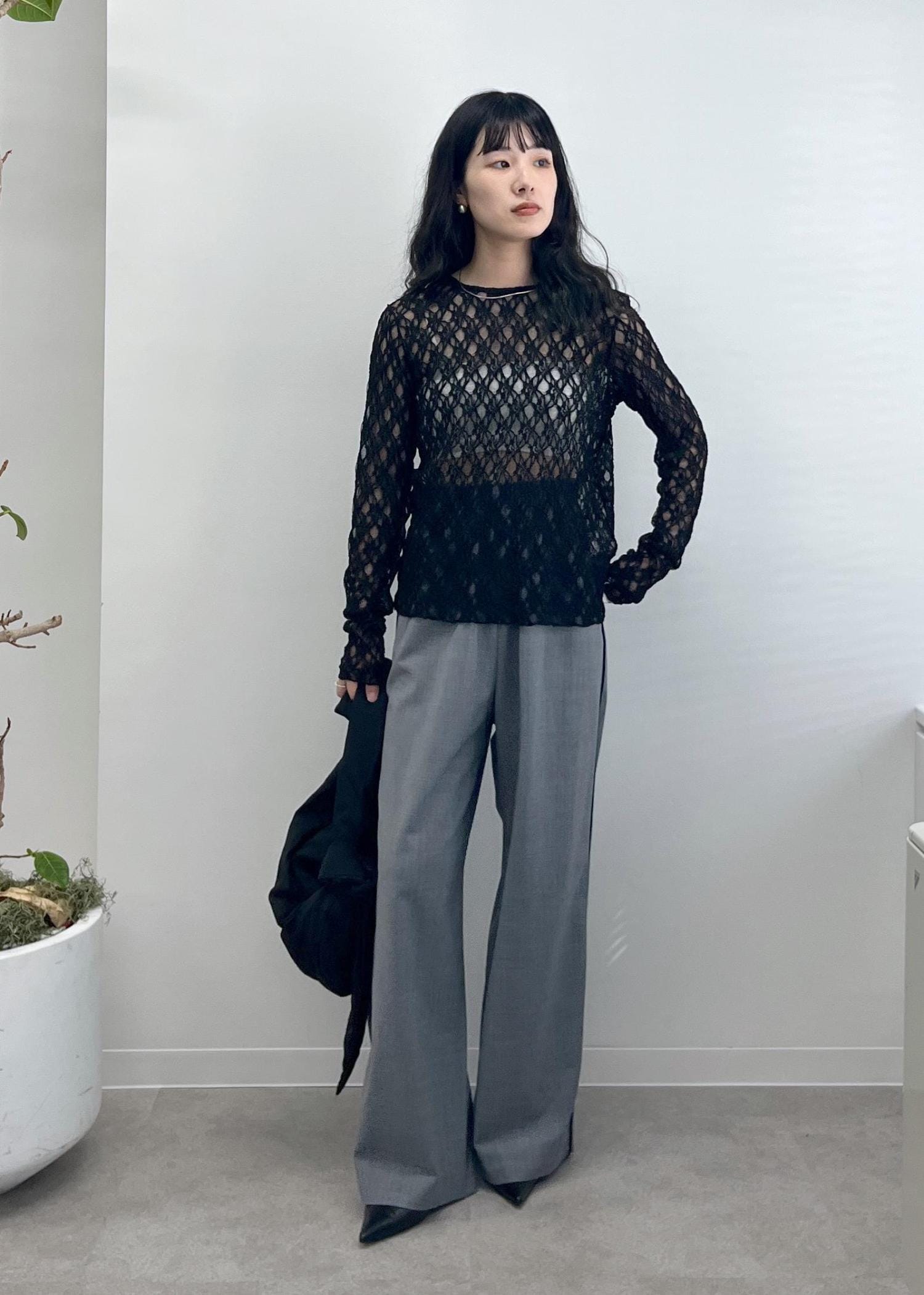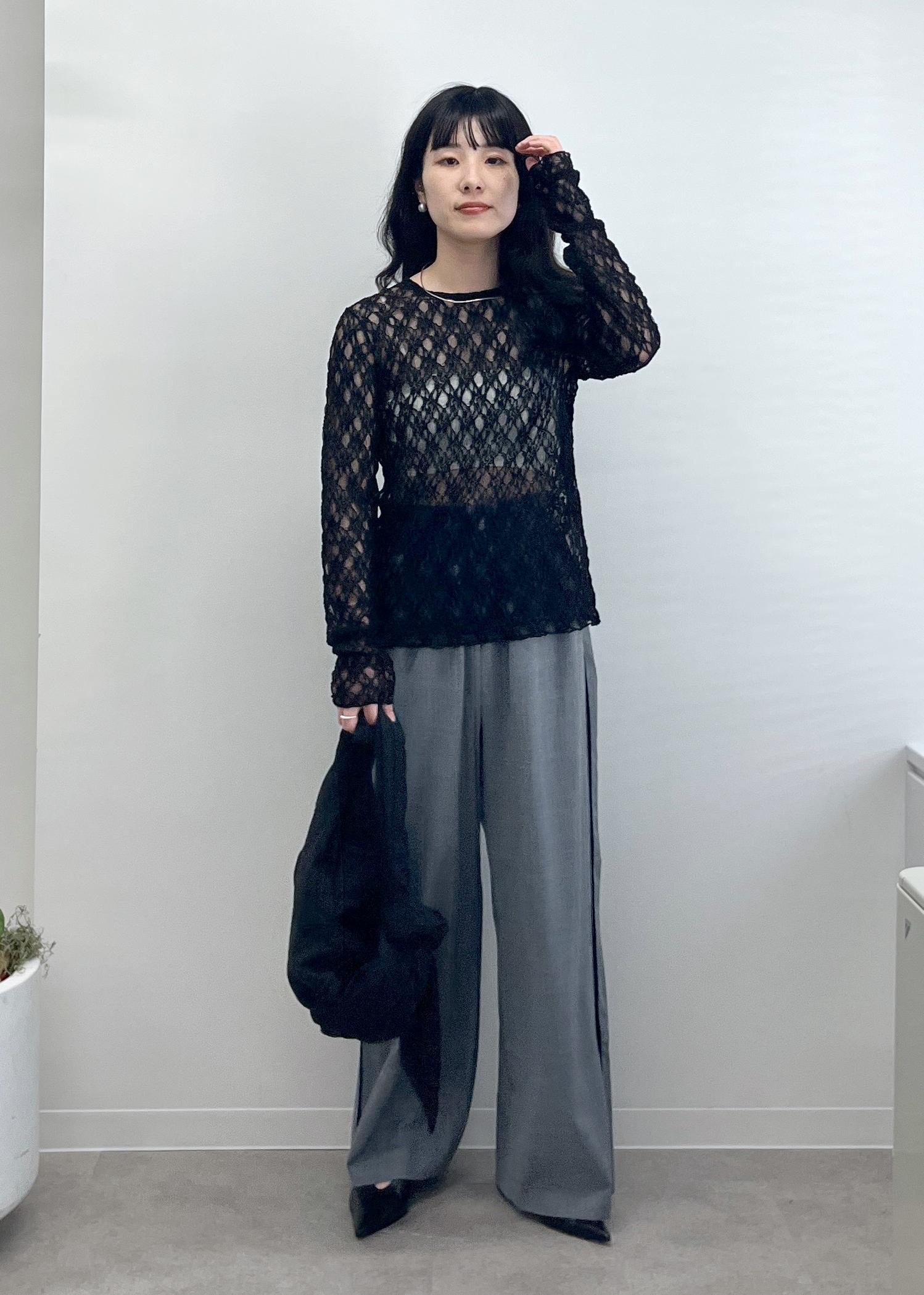 肌触りも良く伸縮性あるレース素材。ヘルシーな肌見せもできる上品なフラワーレースで一枚でもインナーとしても使えます◎