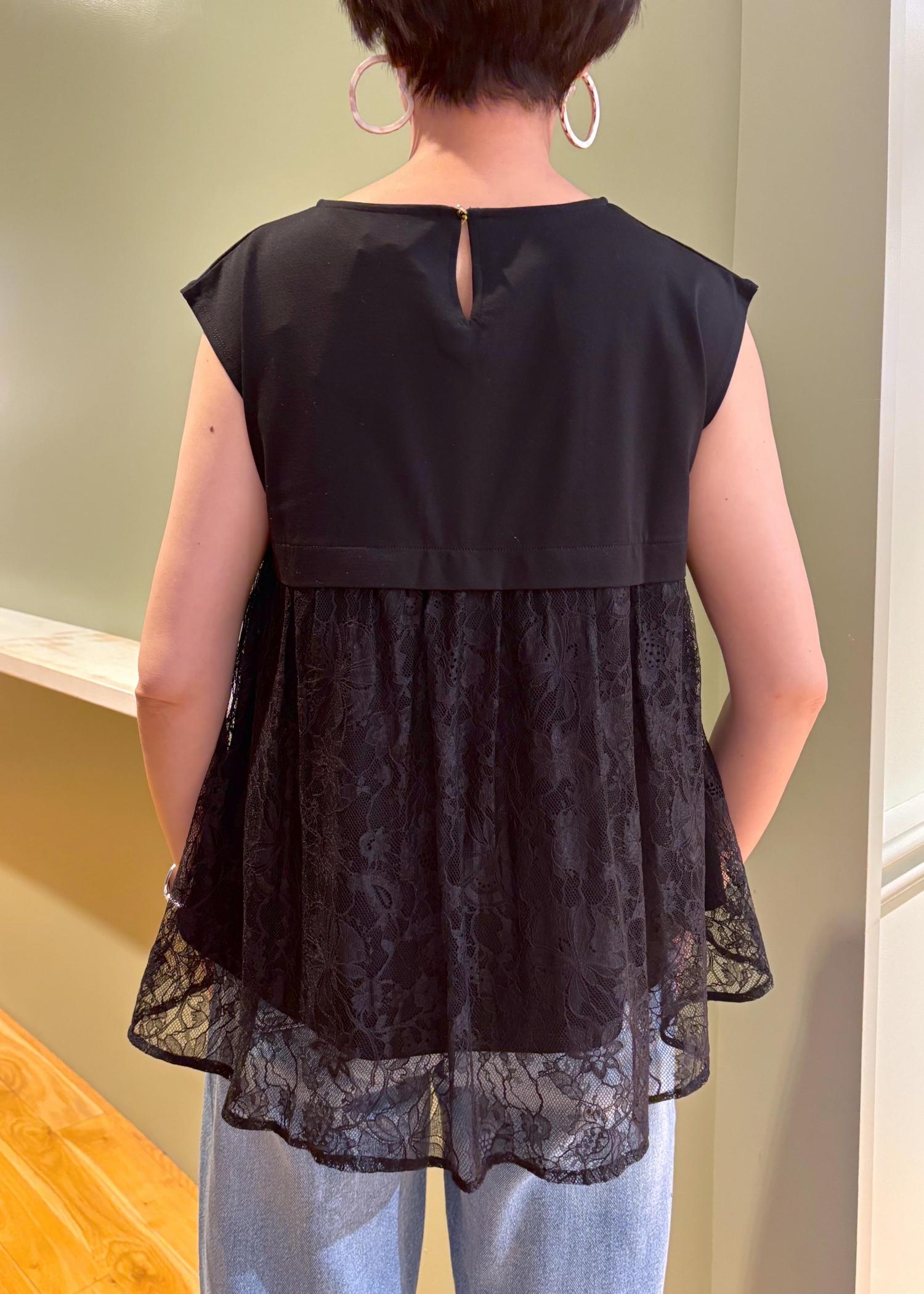ROPÉ PICNIC【UVカット・接触冷感】レースドッキングカットトップスブラック / 38¥4,499レビュー後ろ身頃にレースをドッキングした一枚で華やぎのあるカットトップスです。フレンチスリーブで程よく二の腕をカバーでき、UVカット(紫外線遮蔽率90%以上)、ひんやりとした肌触りの接触冷感素材で暑い時期でも涼しく着れます。ゆったりAラインシルエットでパンツとの合わせが◎