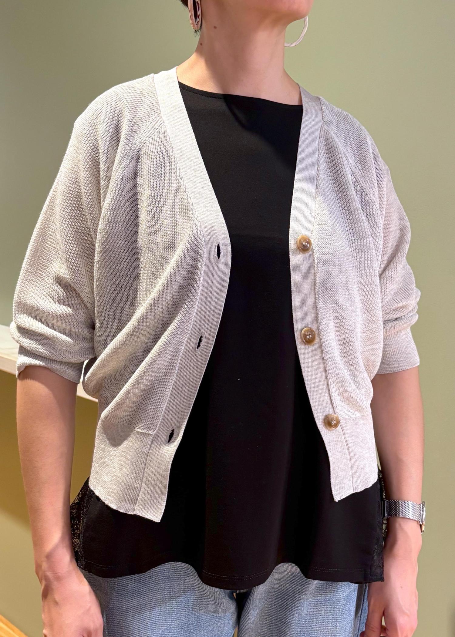 アウトレットROPÉ PICNICLEVITA片畔ニットカーディガンオフホワイト / 38¥5,995レビューさりげないきらめき糸で、少しシャリみがある素材のニットカーディガンです。ゆったりした見頃で丈が短めなので、ワイドパンツやフレアースカートとの相性抜群です。冷房対策にも◎