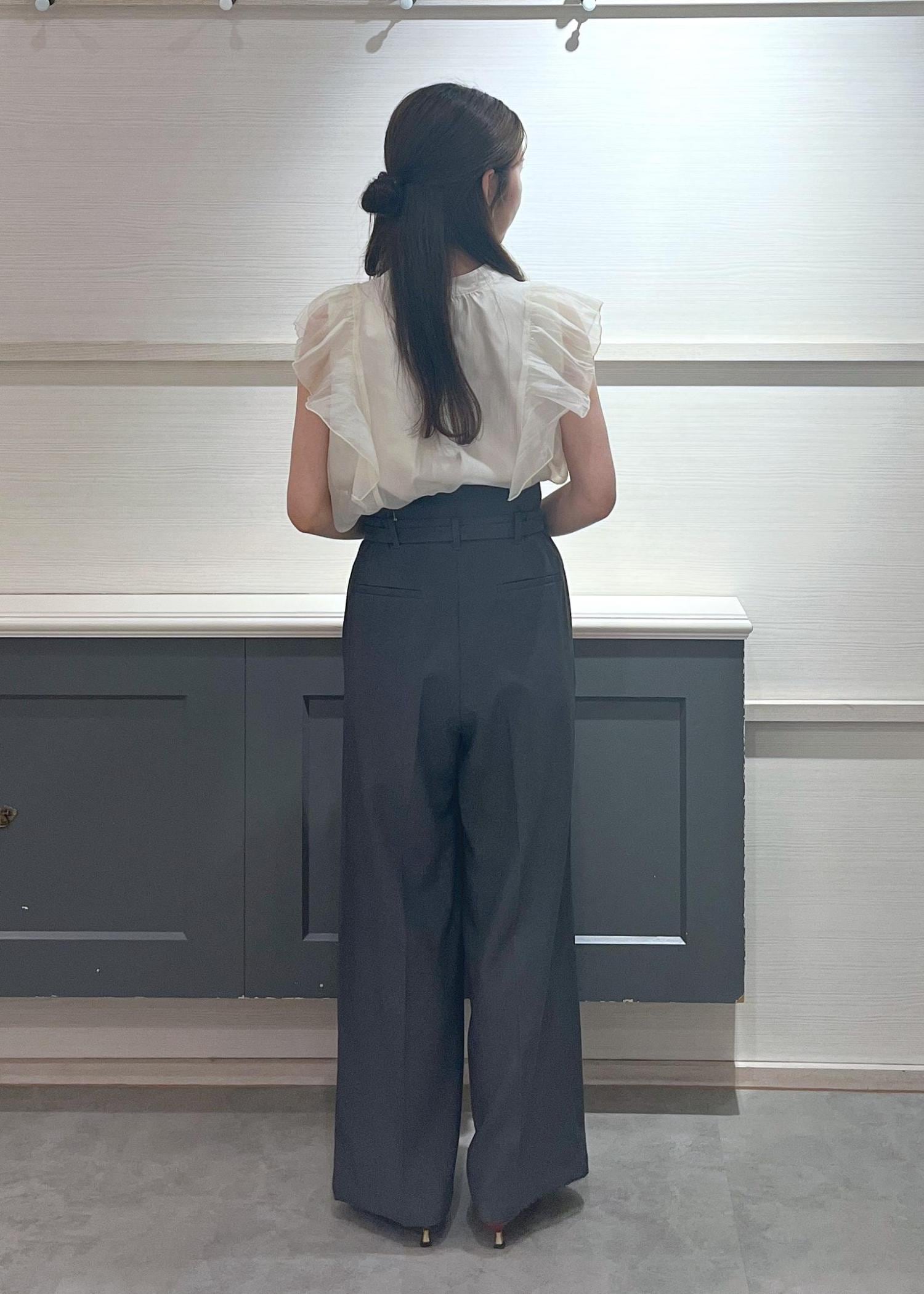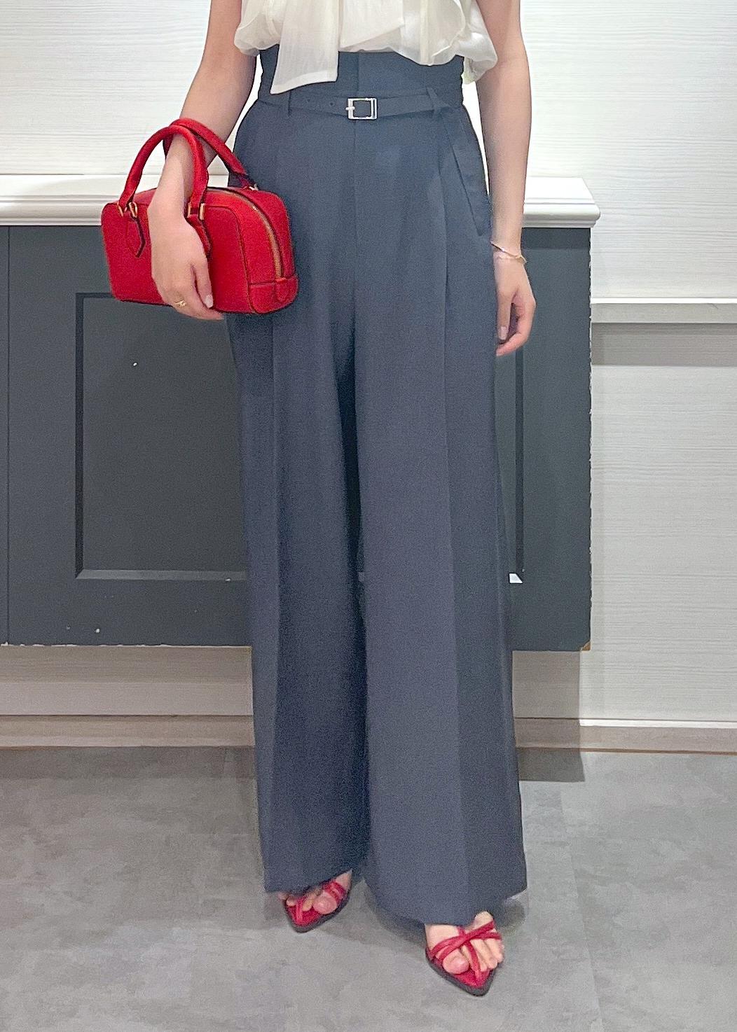 VIS【新色追加】【防シワ/接触冷感】ベルトディテールタックワイドスラックスパンツチャコール / S¥6,589レビュー156cm、Sサイズ着用でウエストも丈感もピッタリでした◎
