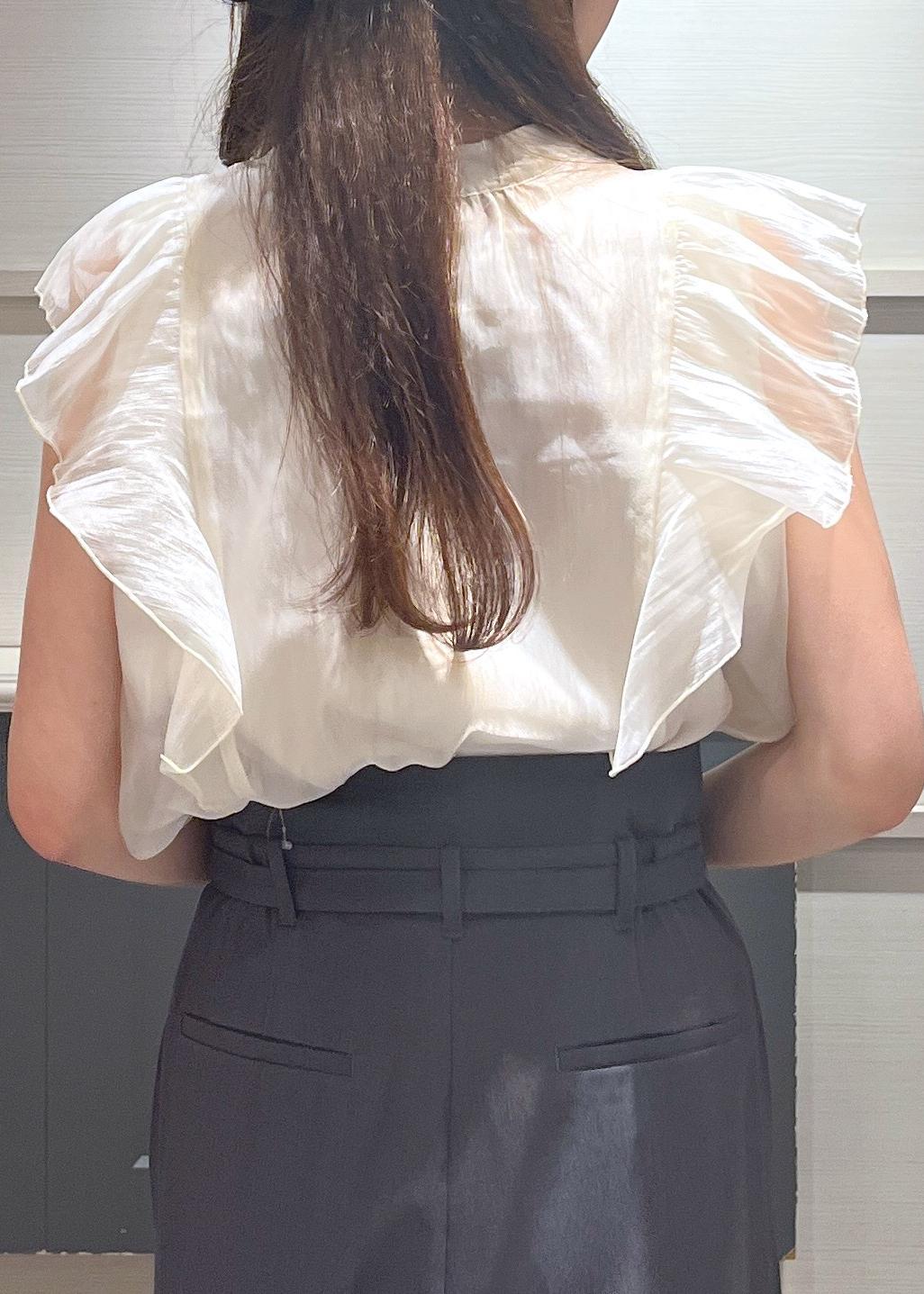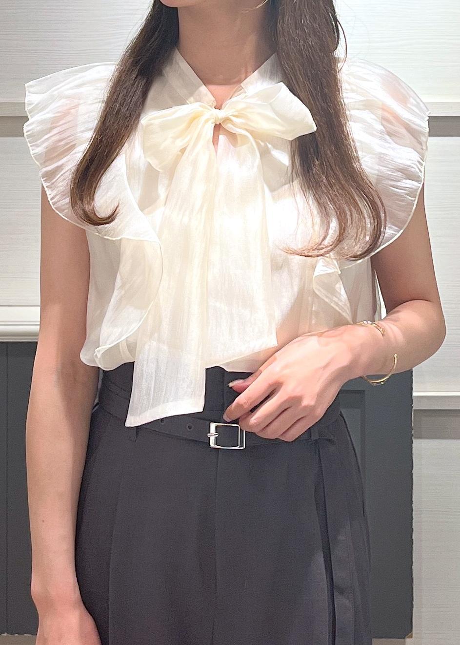 VIS【店頭人気】主役級!華やぎシアーシャイニーボウタイフリルブラウス【前後2WAY】【洗える】キナリ / F¥5,489レビュー156cmでヒップにかかる丈感です◎