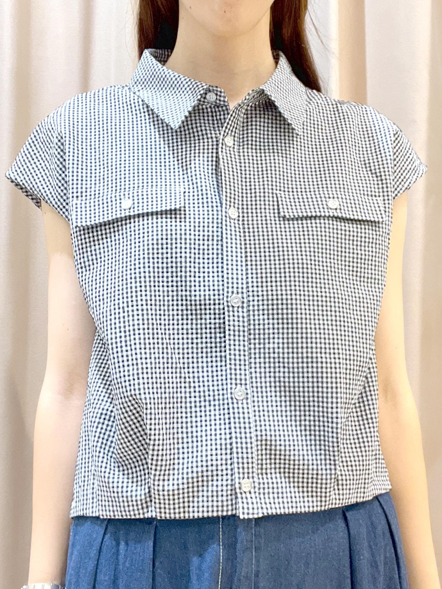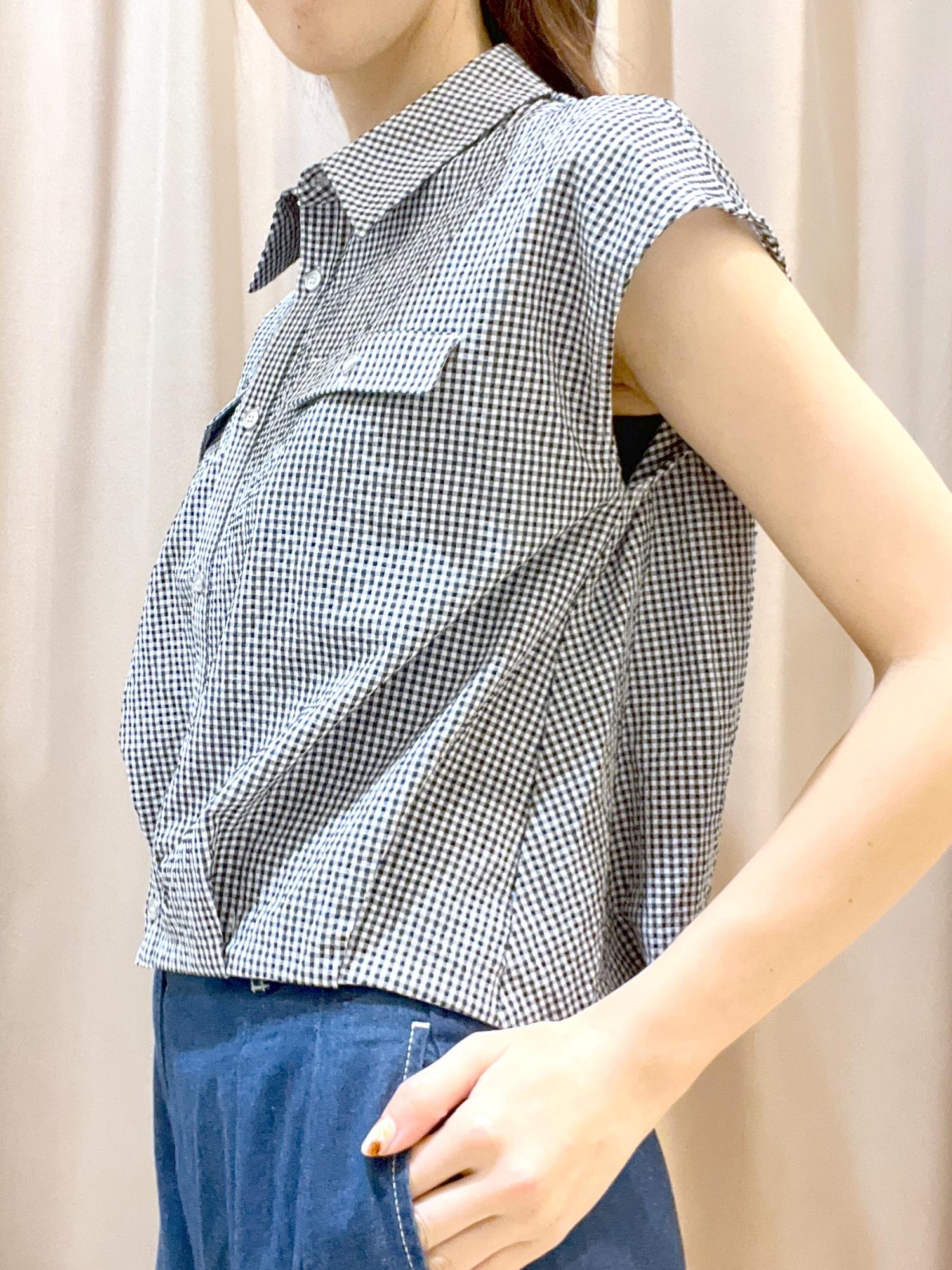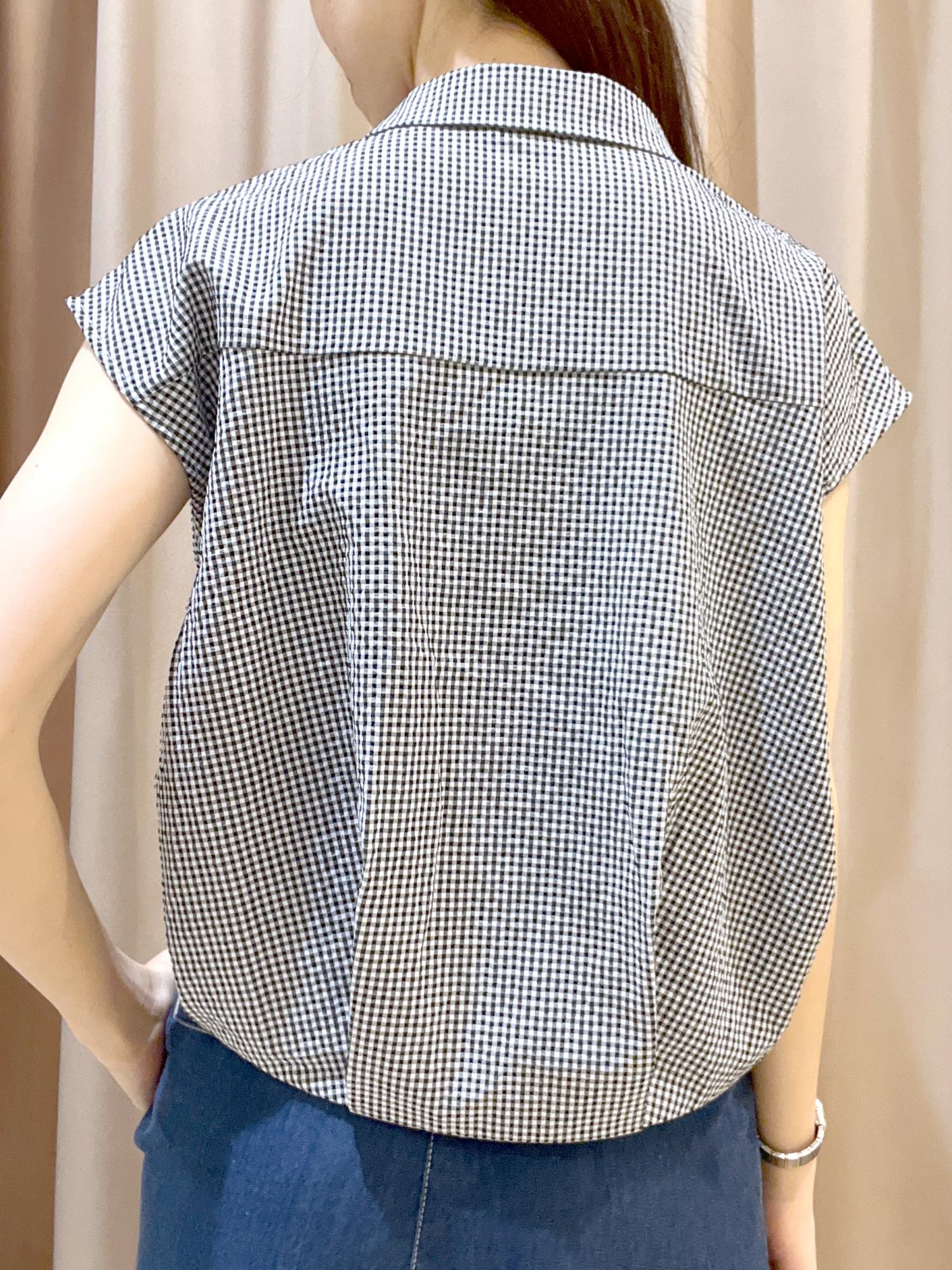 ショート丈で後見頃にタックデザインがあり、ボトムスにインせず、おしゃれに決まります。