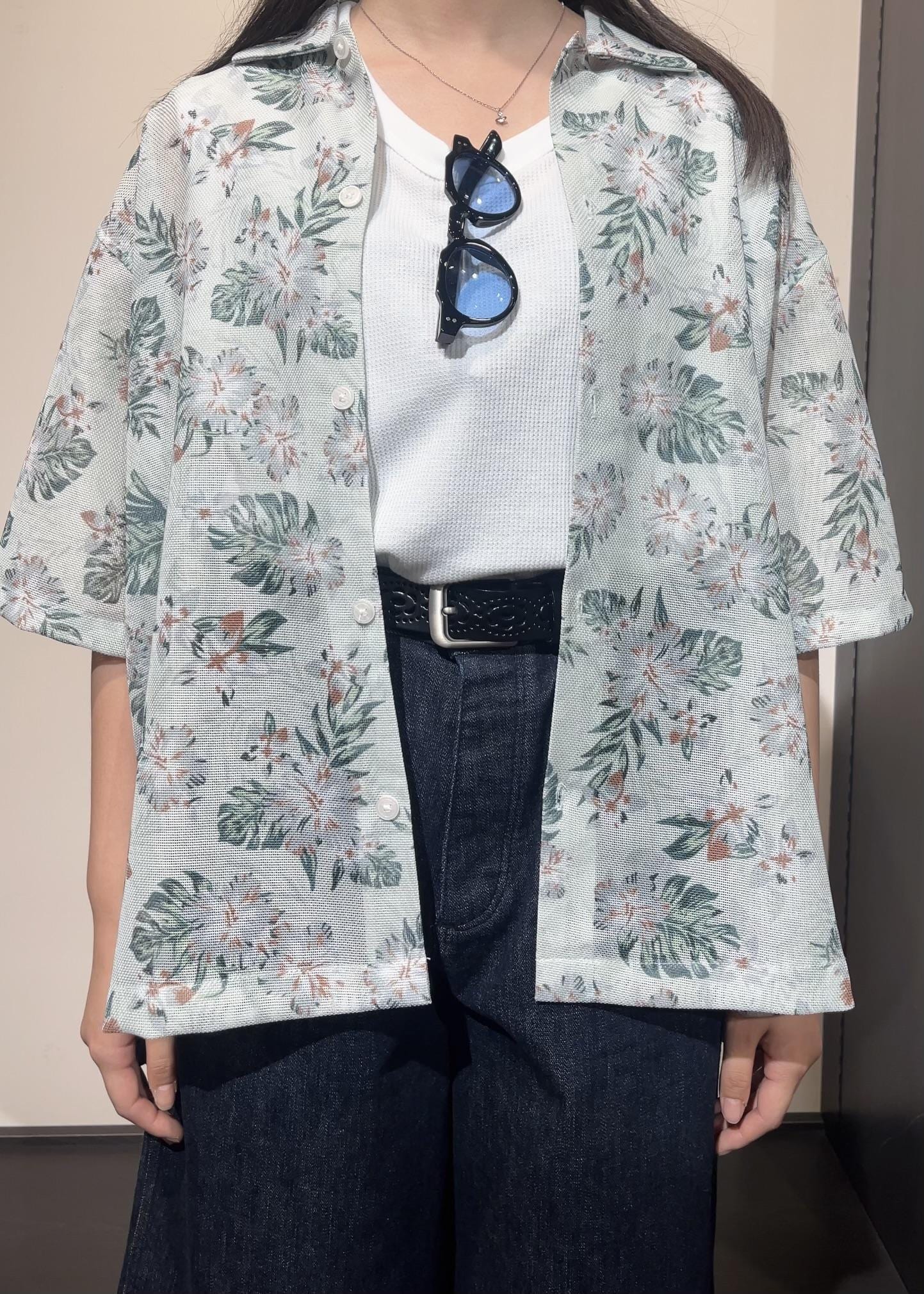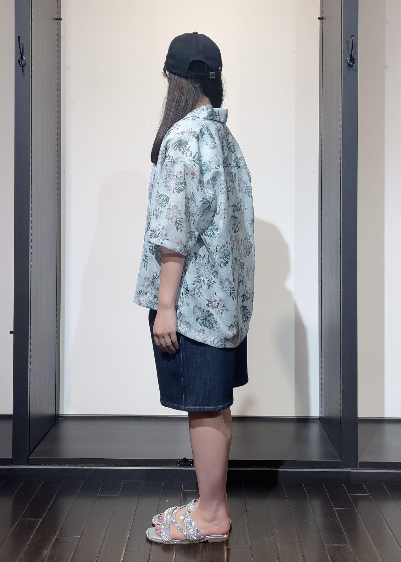 トップスが柄シャツなのでパンツがシンプルでもオシャレに着こなせてるように見えます!生地感も色も暑くなるこれからの季節にぴったりな商品になっております!