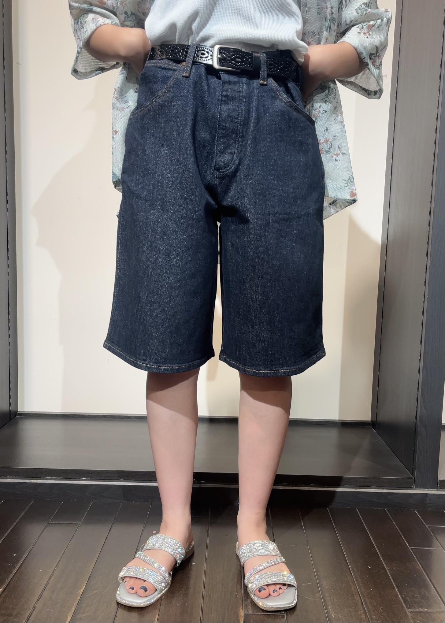 ・深めの股上とワイドな腿廻りが特徴のバギーショーツデニム
