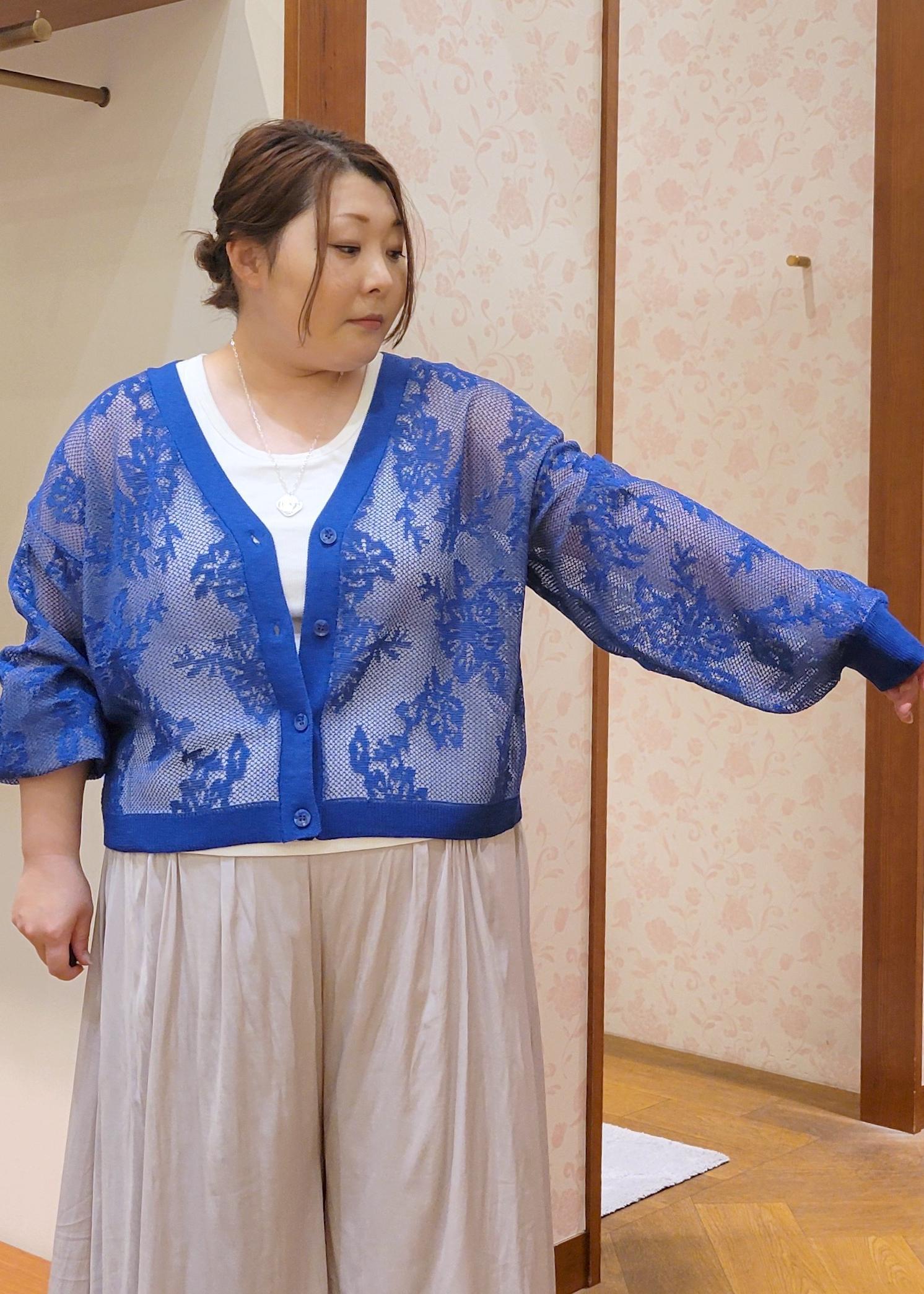 ROPÉ PICNIC透かし編み花柄Vネックカーディガンブルー系 / 38¥5,489レビュー全体的にゆったりしたシルエットで着やすく、ボリューム袖なのも体型カバーになります。透け感のあるカーディガンなので暑い日でも涼しく着れます。