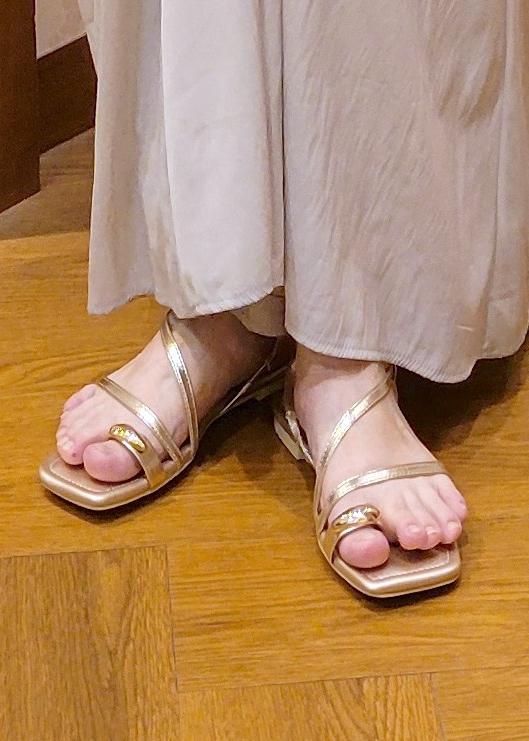 アウトレットROPÉ PICNIC PASSAGEメタルサムリングサンダルゴールド / L¥4,391レビューぺたんこなのでラクに履けるサンダルです。Lサイズで丁度いいサイズ感でした。