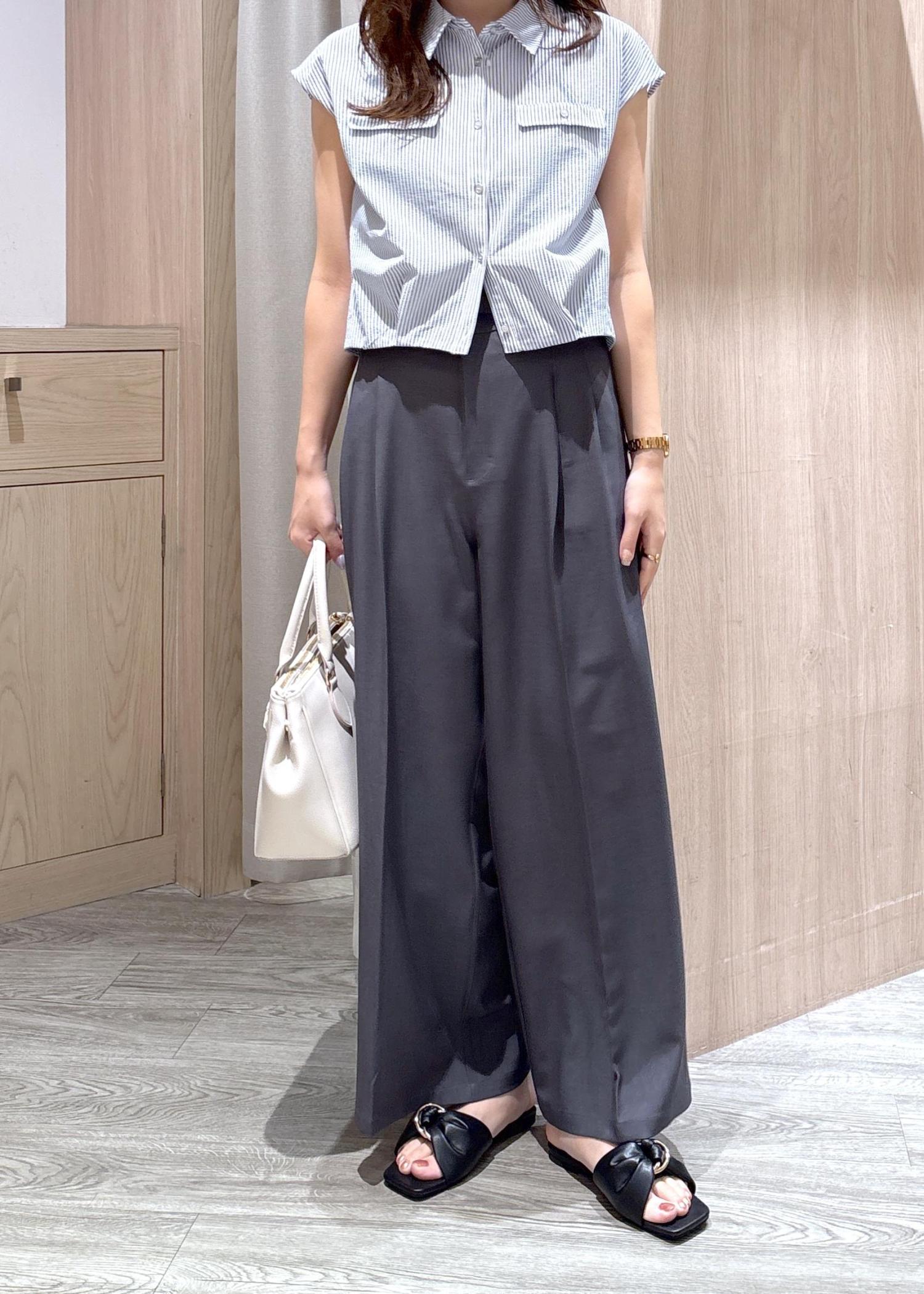 VIS【新色追加】【防シワ/接触冷感】ベルトディテールタックワイドスラックスパンツチャコール / M¥6,589レビュー168センチで足首あたりの丈感です。