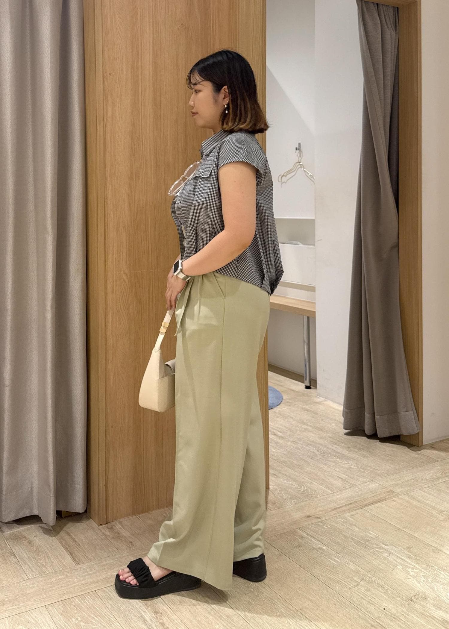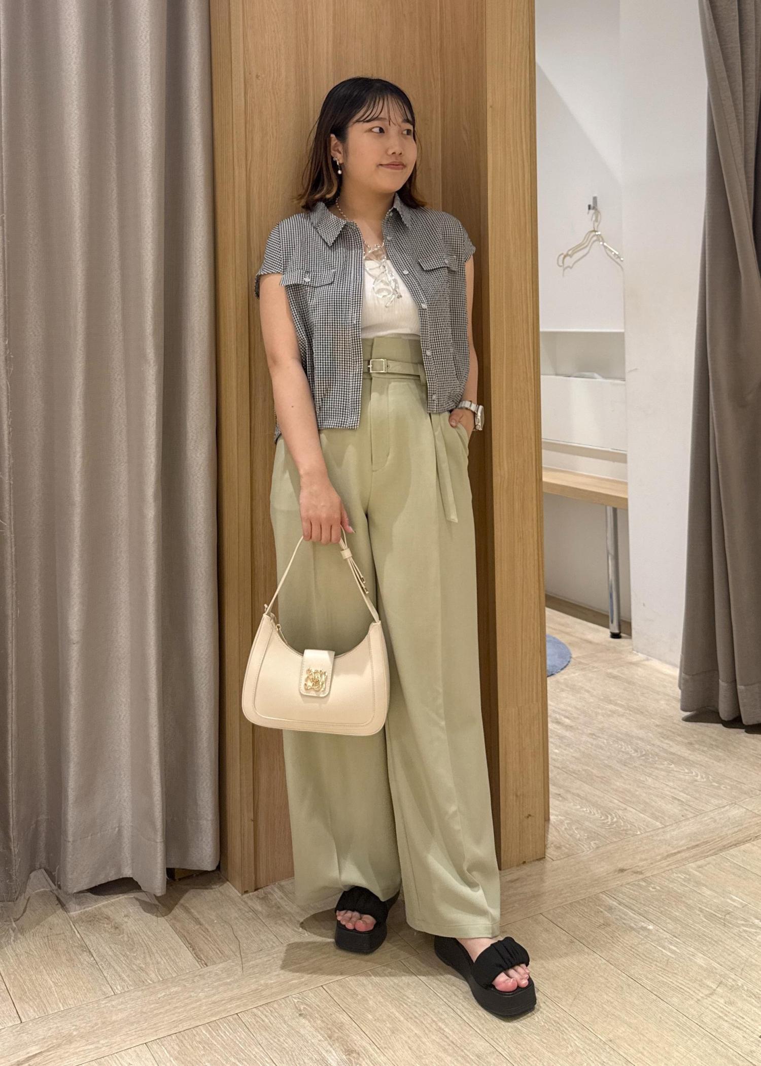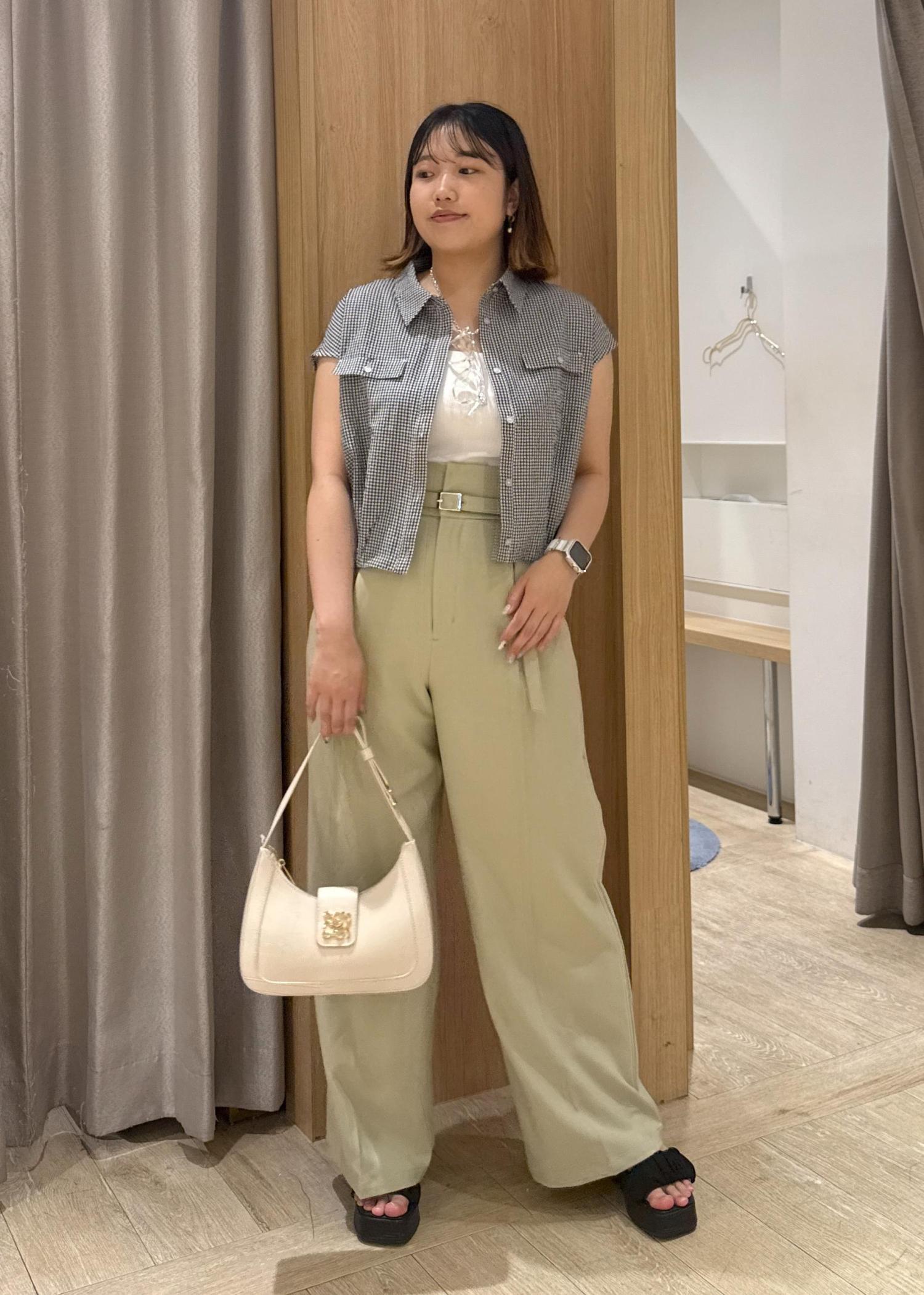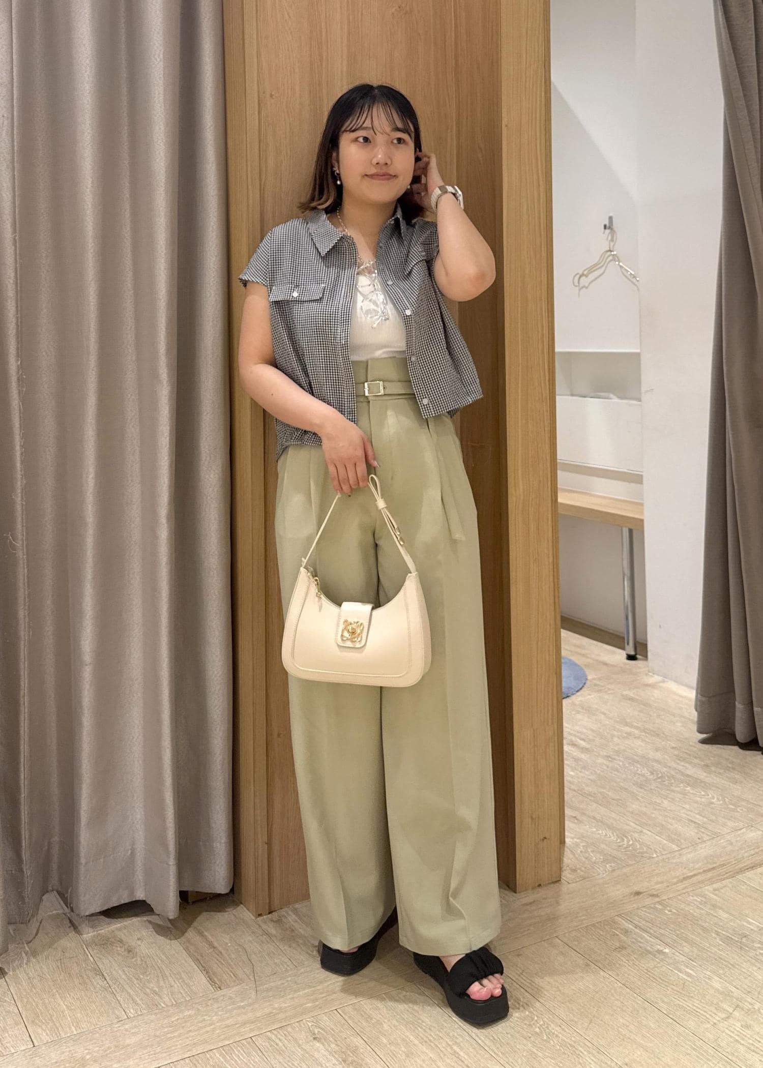VIS【新色追加】【防シワ/接触冷感】ベルトディテールタックワイドスラックスパンツライトグリーン / M¥6,589レビュー153cmの私ですが、Mサイズでちょうどよかったですです。